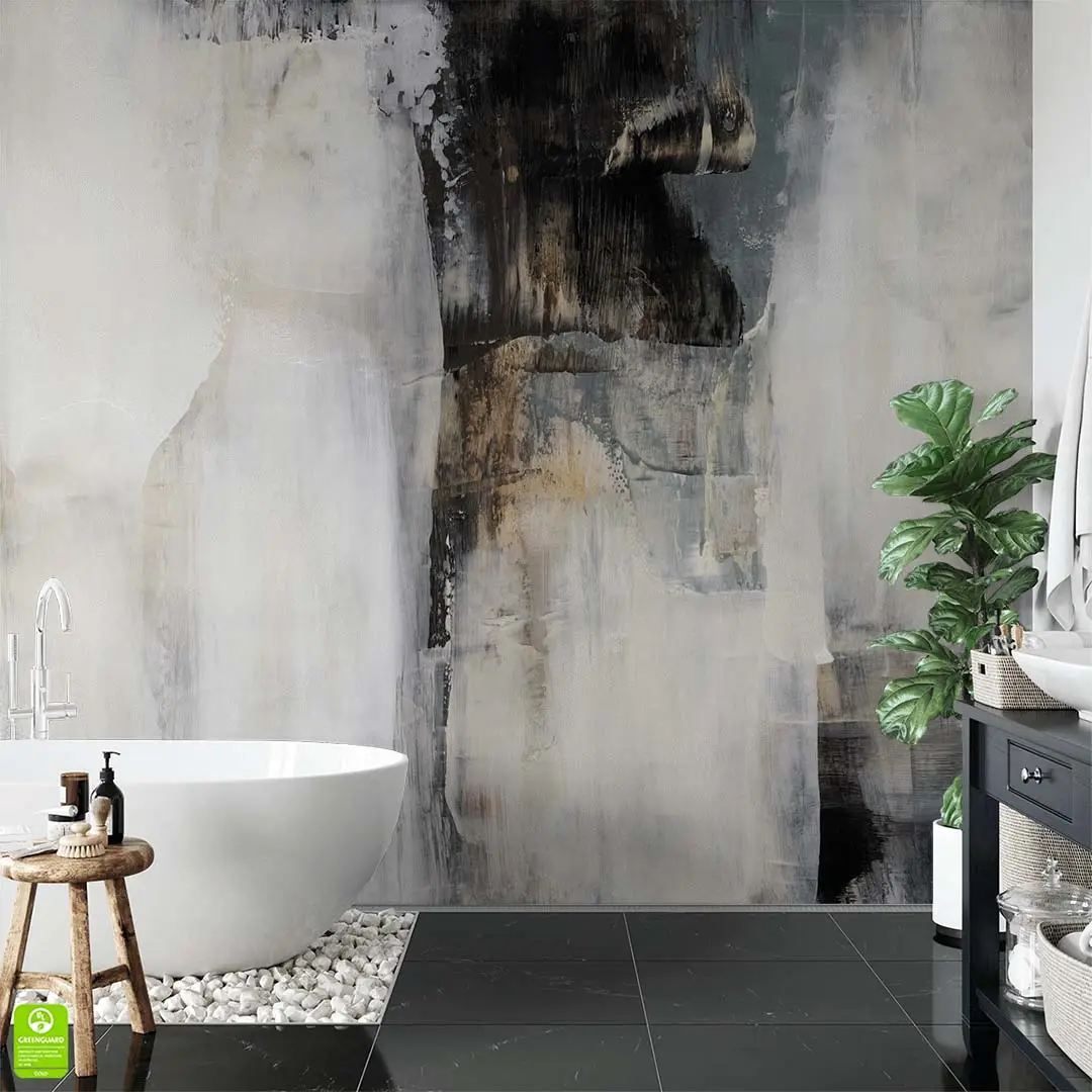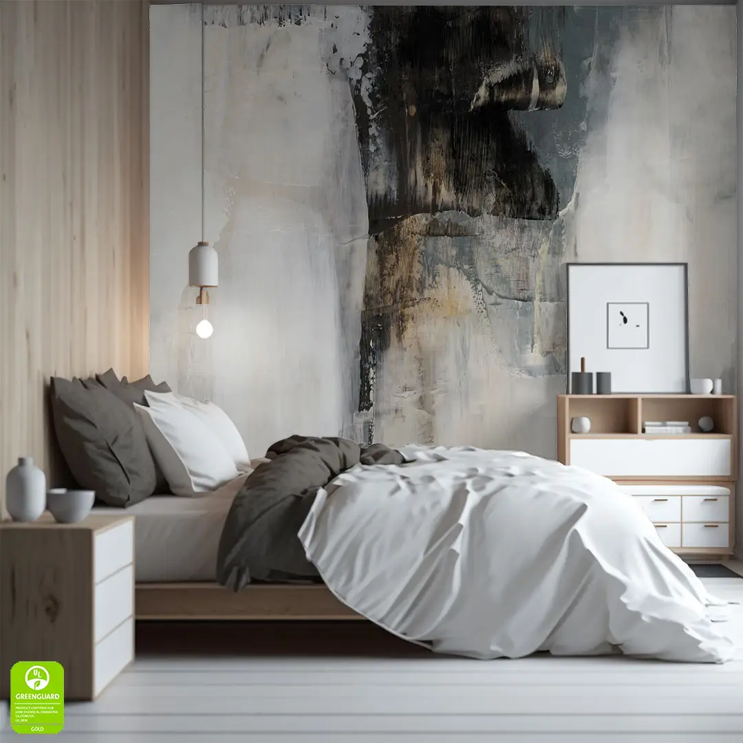 W kolorystyce dominują chłodne szarości, biel oraz głęboka czerń, z delikatnymi, cieplejszymi akcentami w tle. Dzięki neutralnym barwom, fototapeta świetnie komponuje się z nowoczesnym wyposażeniem, nie przytłaczając przy tym wnętrza. Jest to idealny motyw do salonu czy sypialni w stylu loftowym. Wybierz tę dekorację, jeśli chcesz uzyskać efekt nowoczesnej, surowej elegancji w swoim domu!