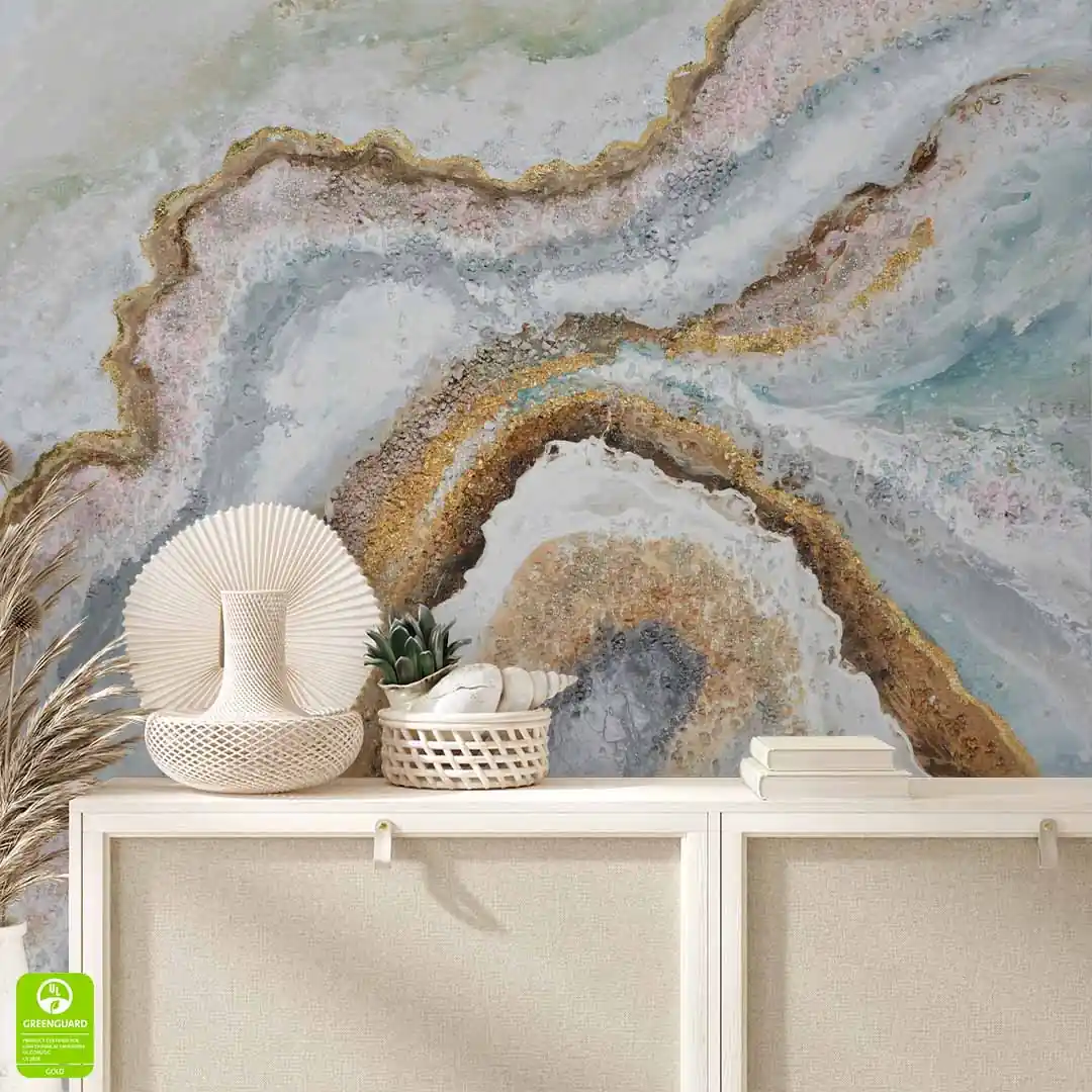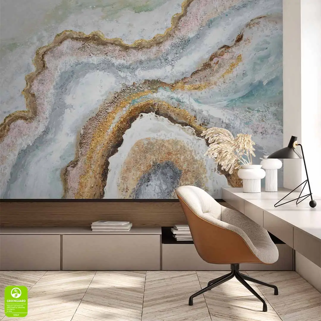Fototapeta - Abstrakcyjne kolorowe fale to ciekawa propozycja dla osób szukających niebanalnego wzoru do swojego wnętrza. Motyw przedstawia artystyczne, abstrakcyjne elementy przypominające delikatne fale w przeróżnych odcieniach beżu, brązu i różnych odcieniach szarości. Dostrzec również można drobinki koloru złotego, zielonego czy różowego. Pomimo zastosowania tak wielu barw motyw zaprezentowany jest raczej w stonowanych barwach. Będzie jednak z całą pewnością stanowił zdecydowaną ozdobę wnętrza. Dzięki temu może stać się główną atrakcją w salonie, sypialni, jadalni czy nawet przedpokoju. Ze względu na swoją formę motyw może bardzo dobrze prezentować się poziomo lub też pionowo.