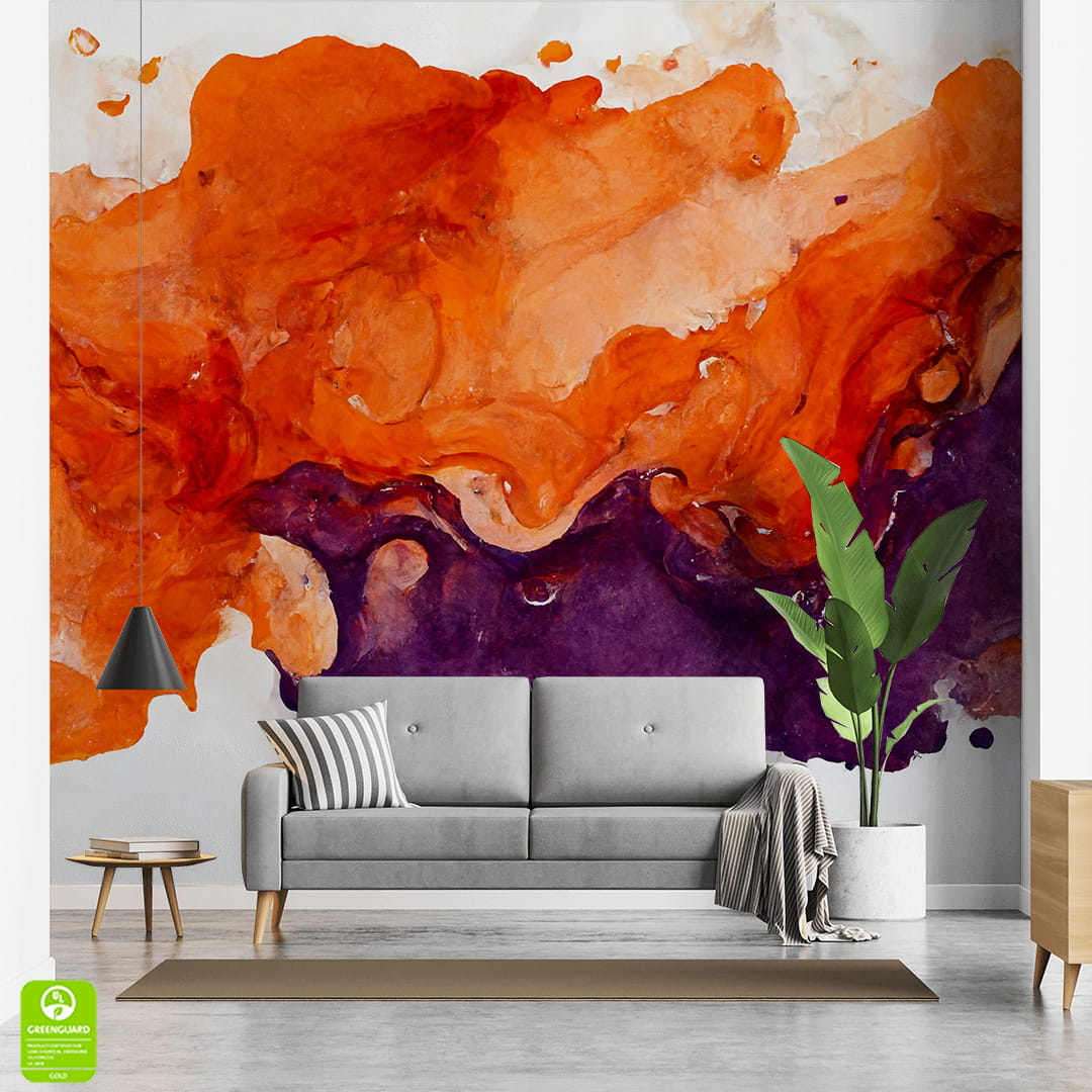 Fototapeta na wymiar: Akwarela Pomarańczowo-Fioletowa – Dynamiczna Abstrakcja na Wymiar, Nowoczesny Mural do Salonu, Styl Nowoczesny