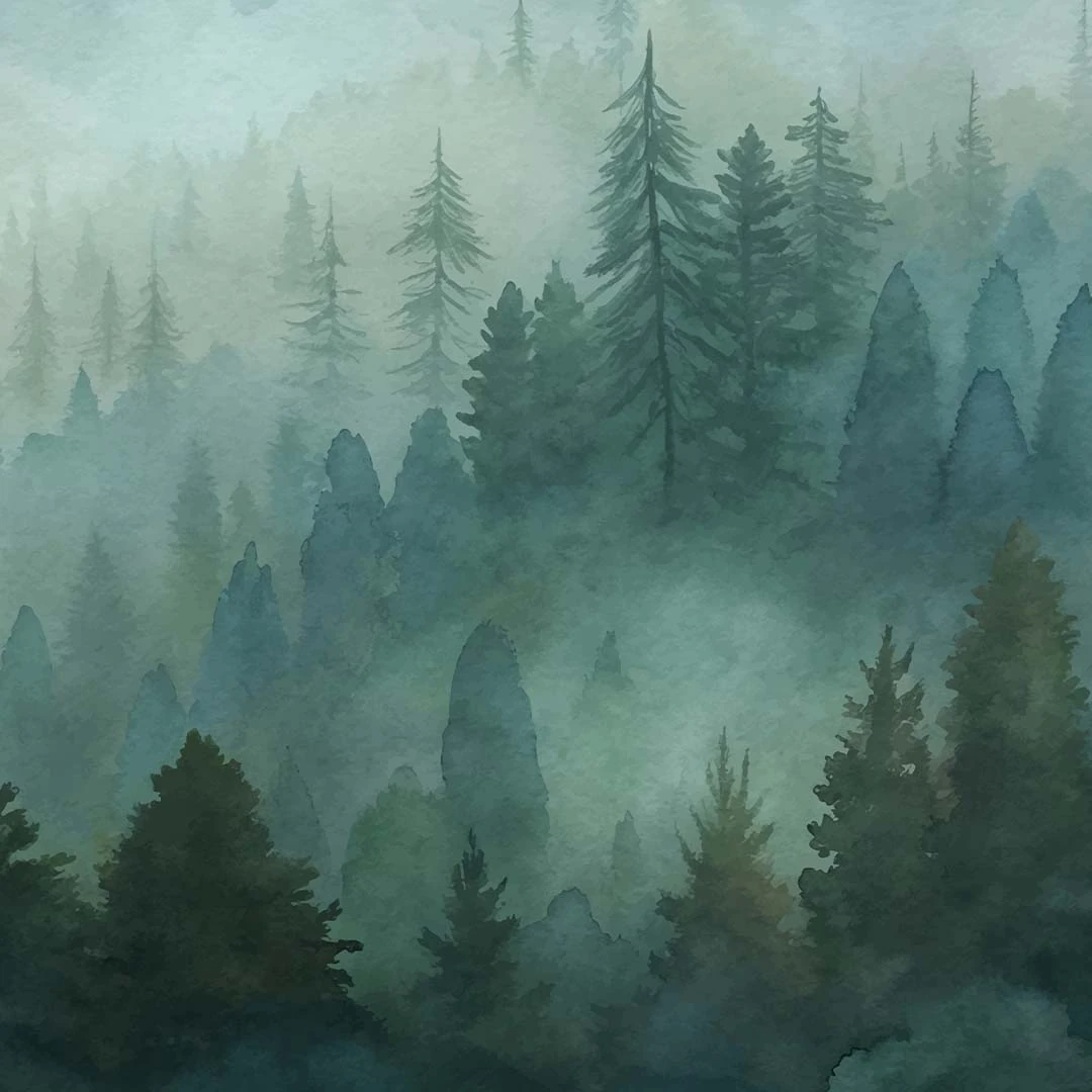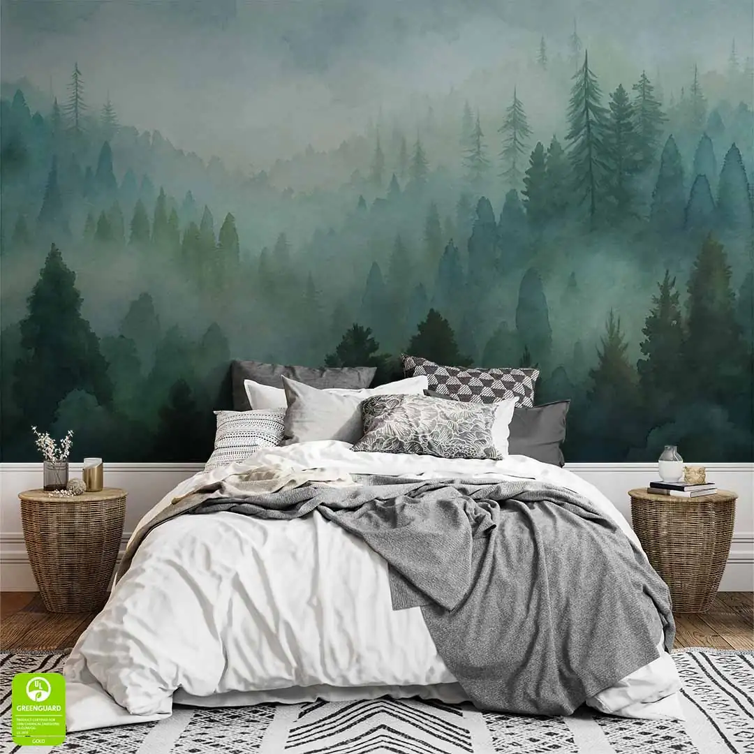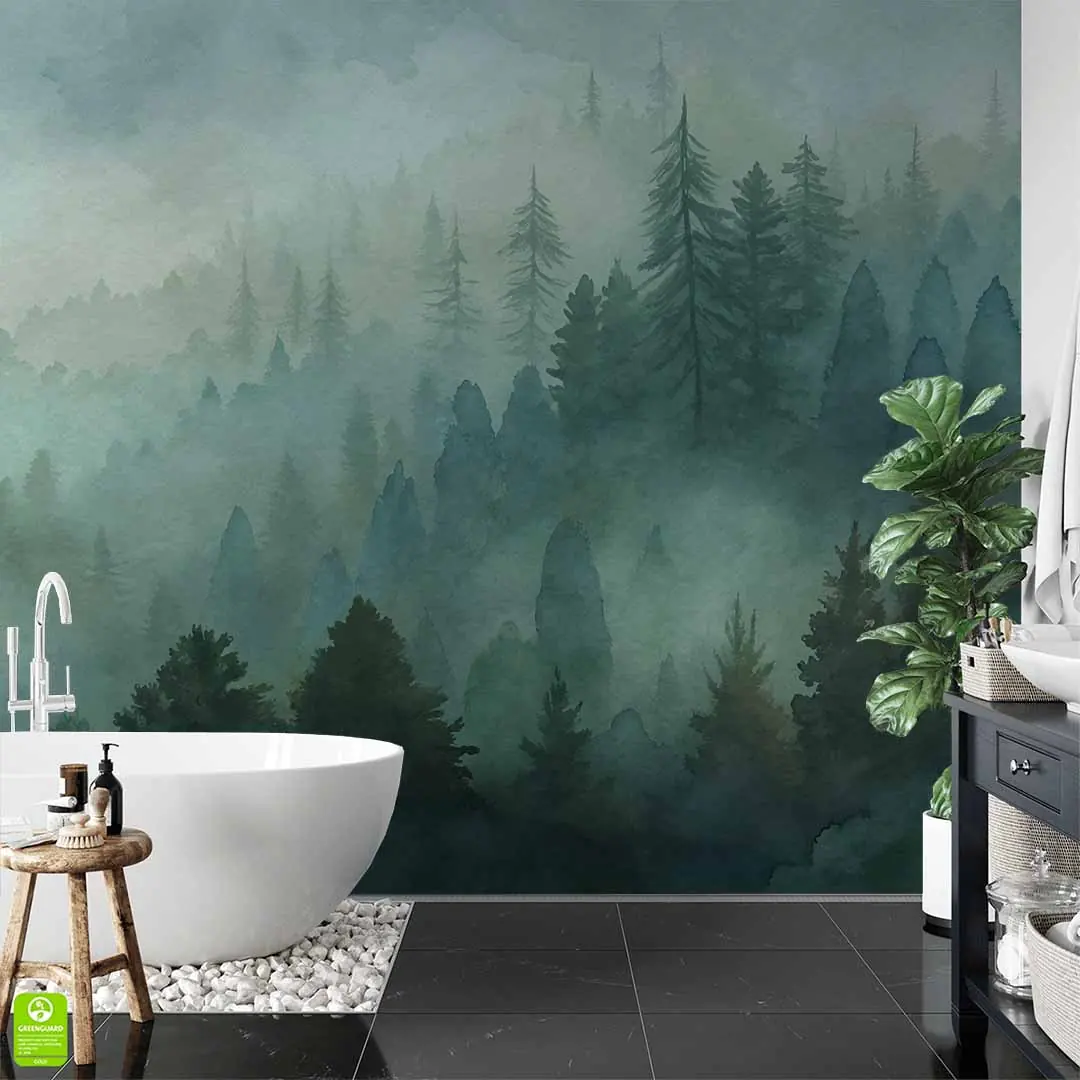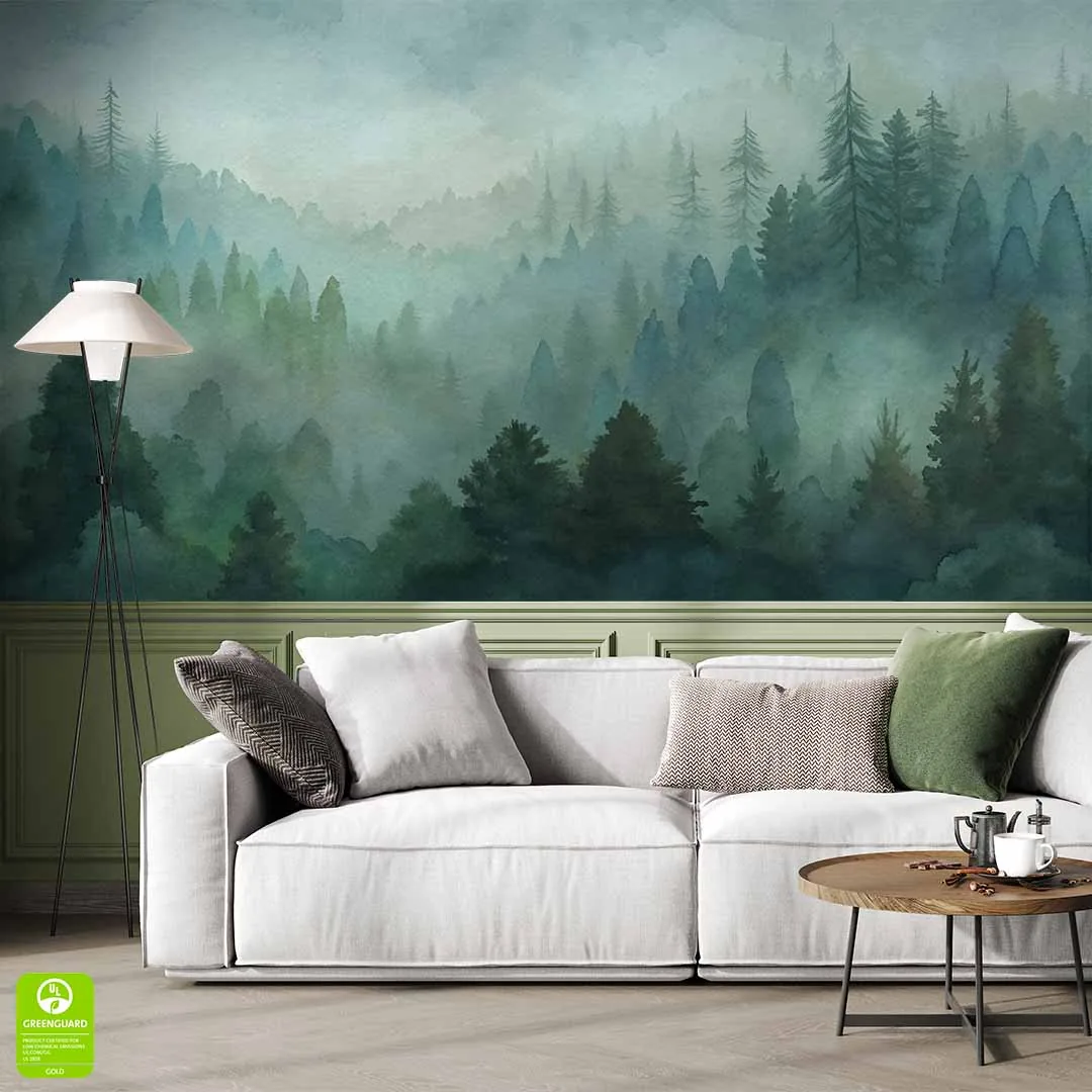 Fototapeta na wymiar - Akwarelowy las 3d - tapeta na ścianę do sypialni, winylowa na flizelinie