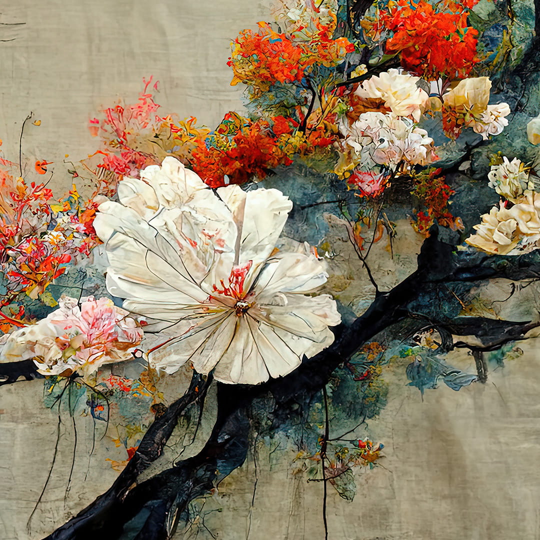 Fototapeta na wymiar: Artystyczny Bukiet Kwiatów Ogrodowych – Styl Malarski, Vintage, Do eleganckiego salonu i sypialni, Beżowa