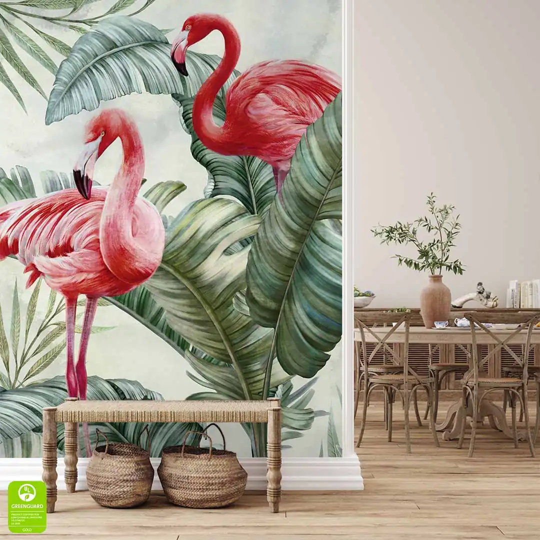 Fototapeta na wymiar - Flamingi w zielonych liściach
