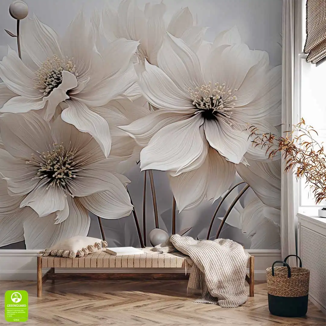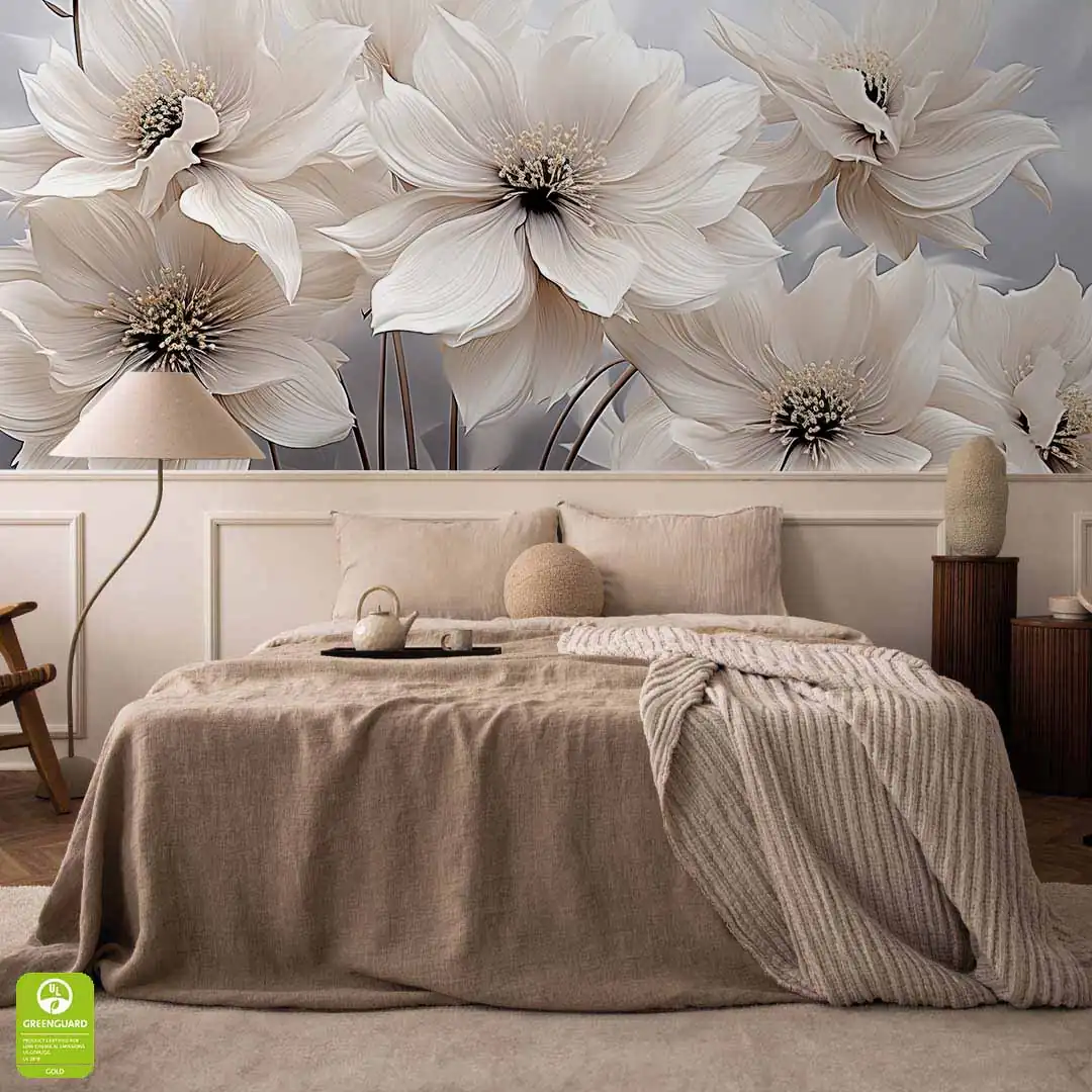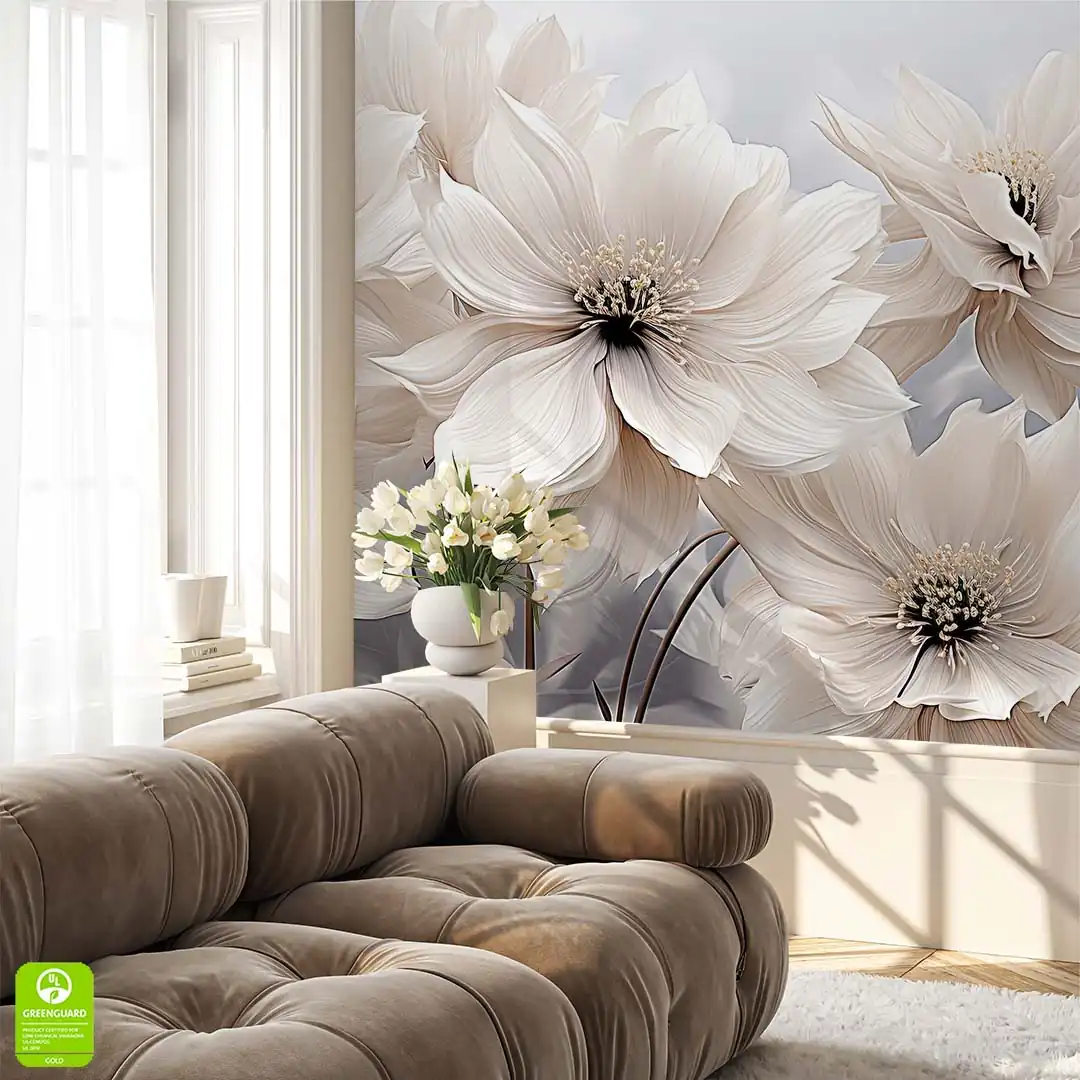 Fototapeta - Kwiaty w kolorze kremowo-brązowym to niezwykle elegancka dekoracja ścienna, która szczególnie dobrze prezentować będzie się w nowoczesnych wnętrzach. Ze względu na swoją kolorystykę - krem, beż, brąz i szarość na dalszym planie - będzie pięknie prezentować się w pomieszczeniach w podobnej tonacji kolorystycznej. Duże kremowe kwiaty, z dodatkiem beżowego i brązowego koloru to z pewnością dobry wybór dla osób lubiących kwiatowe motywy w swoim domu i piękne eleganckie dodatki. Jeśli marzy Ci się lifting nudnej ściany, to nasza Fototapeta - Kwiaty w kolorze kremowo-brązowym z pewnością w tym pomoże.