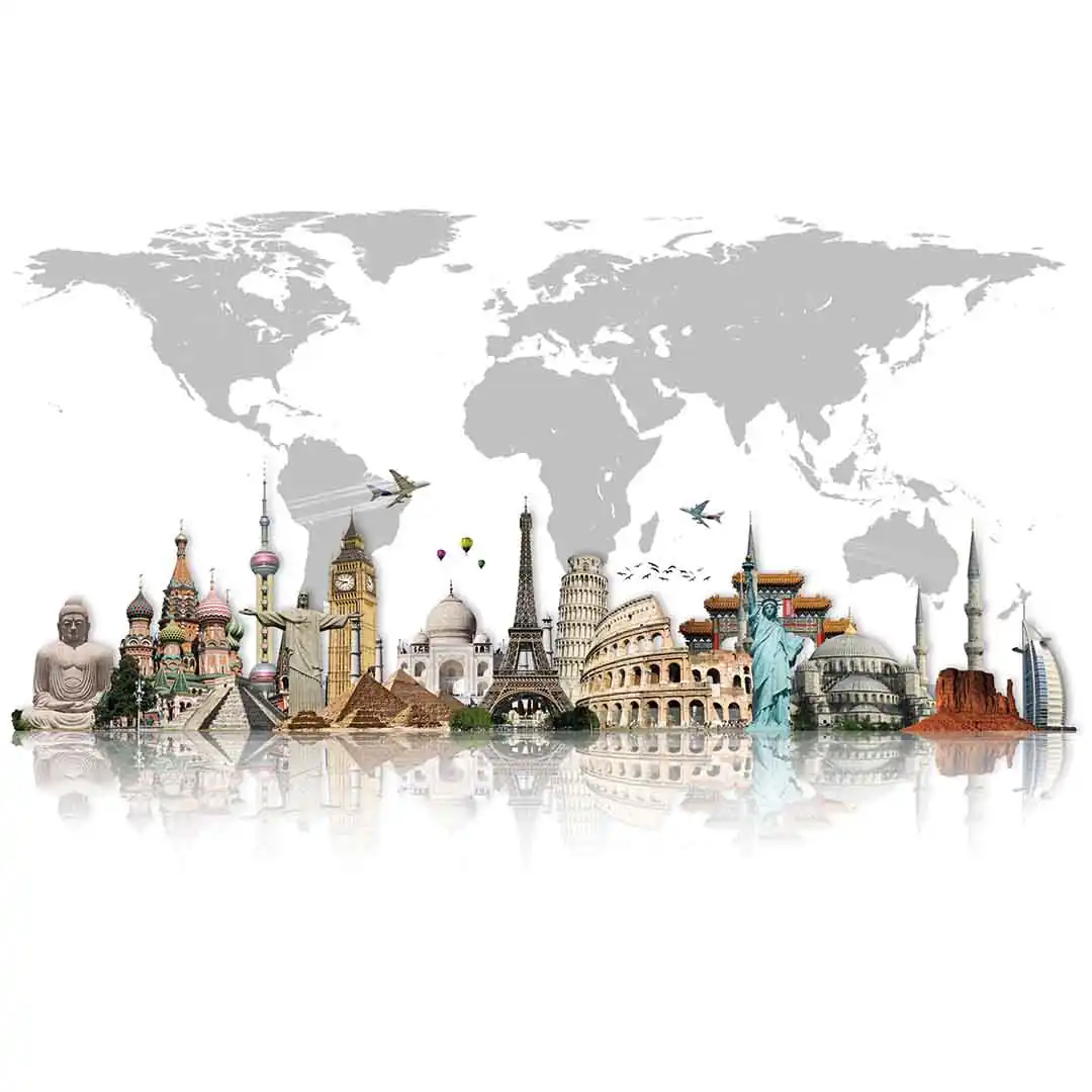 Designerska fototapeta na ścianę "Mapa świata z ekspozycją zabytków"