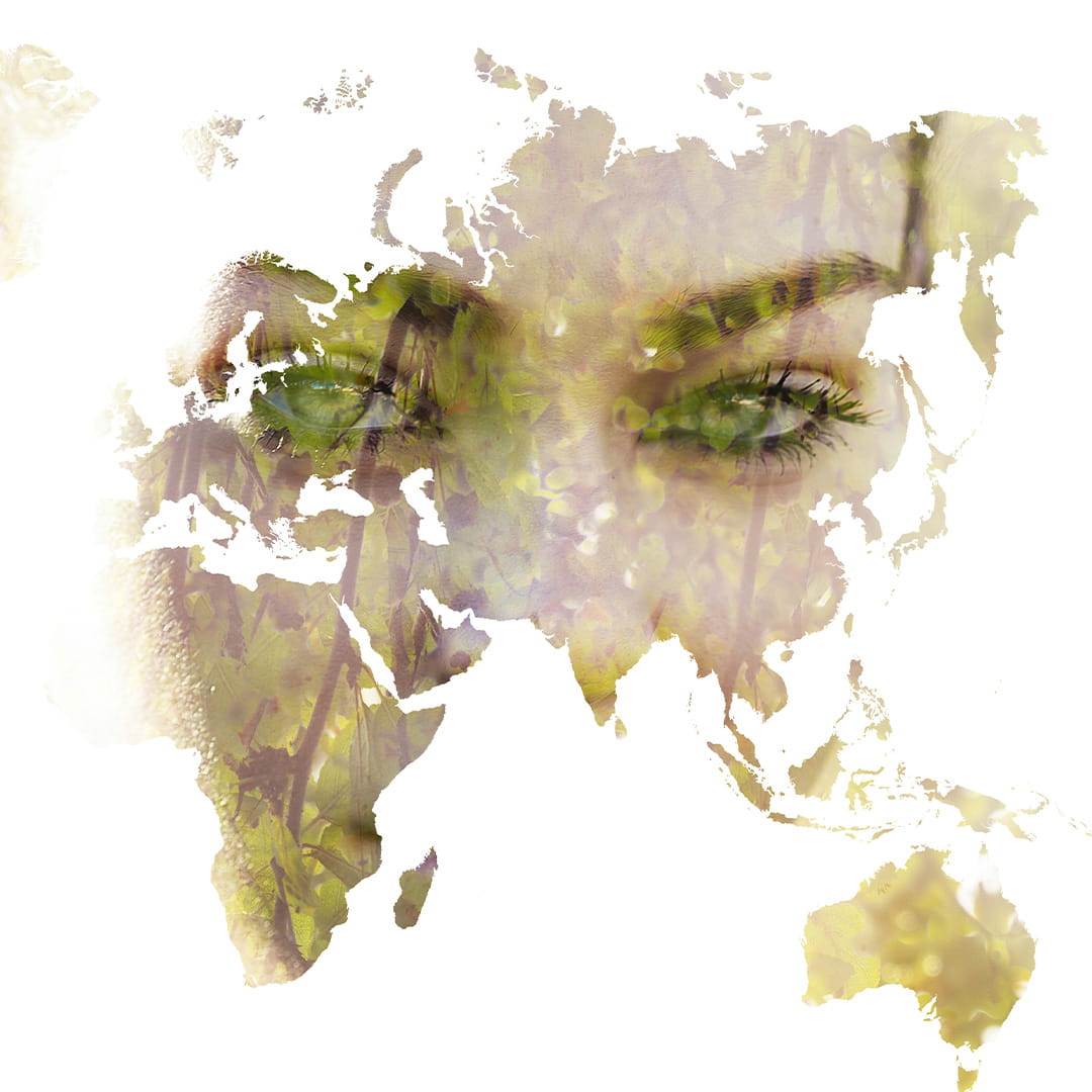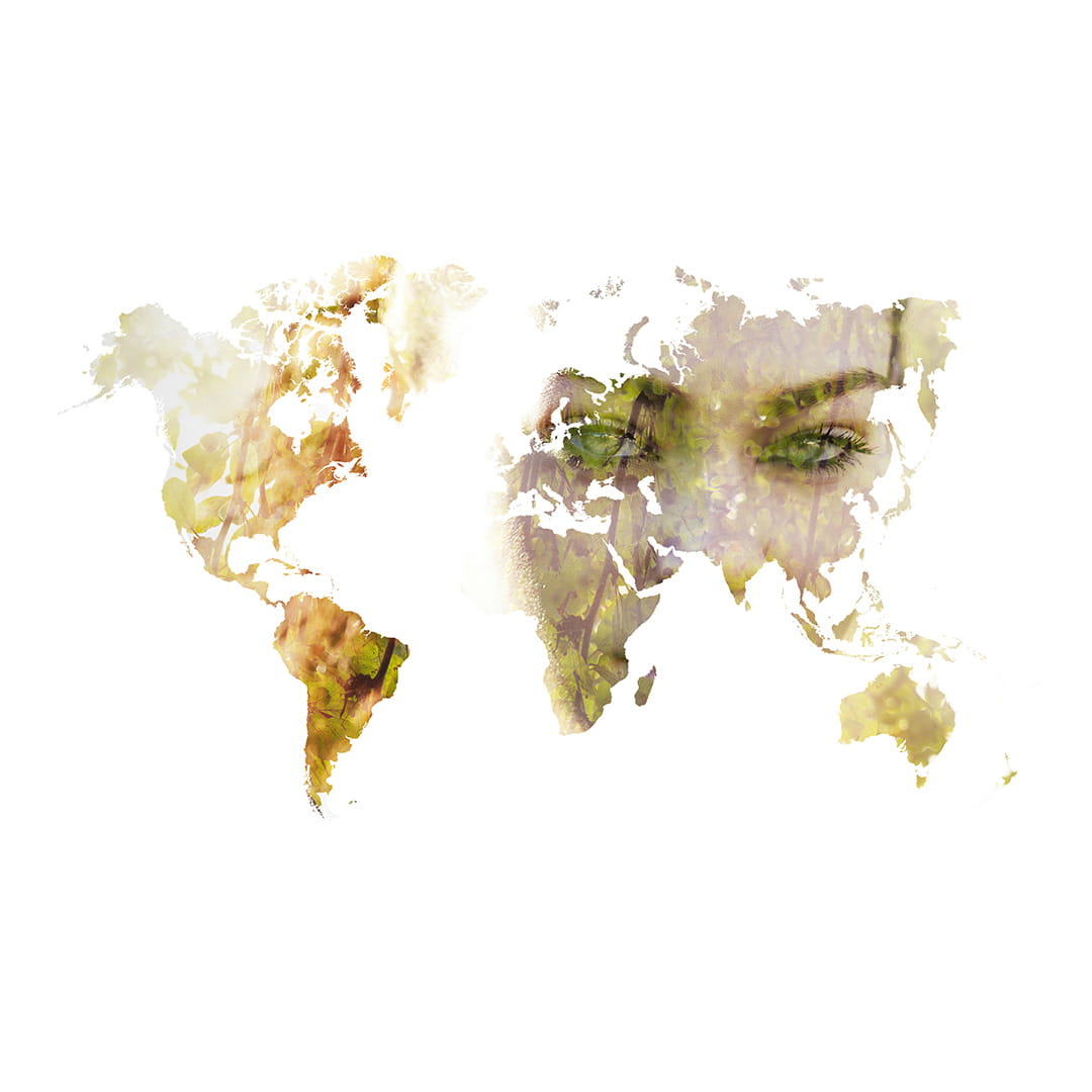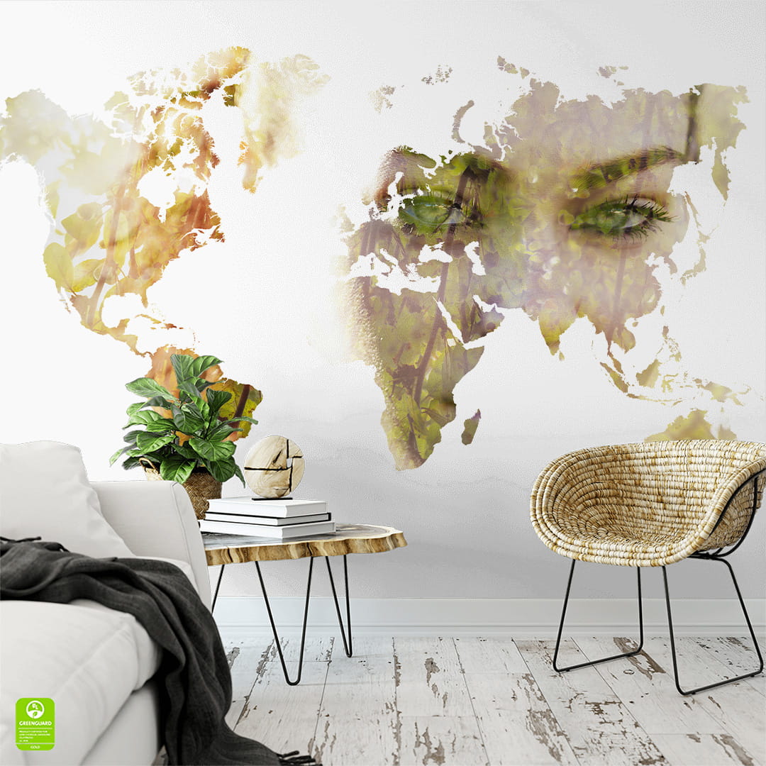 Designerska fototapeta na ścianę "Portret pięknej dziewczyny wkomponowany w mapę świata"