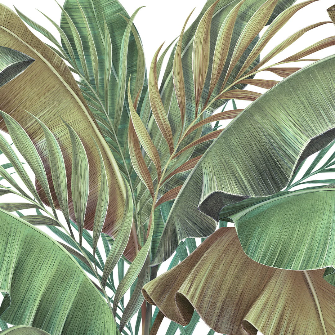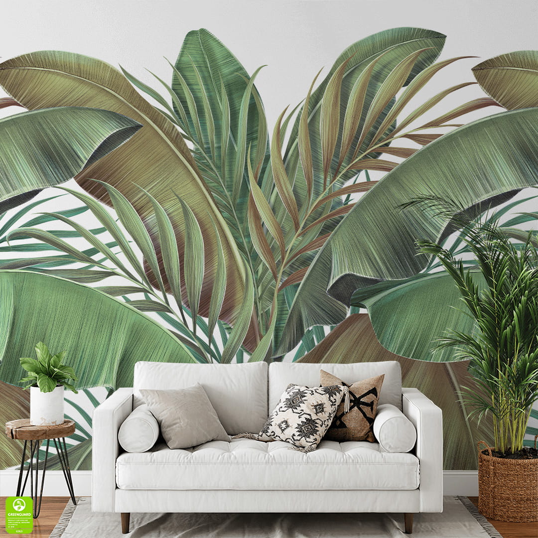 Fototapeta na wymiar: Tropikalne Liście – Palmy i Bananowiec, Styl Nowoczesny, Boho i Urban Jungle do Salonu, Sypialni