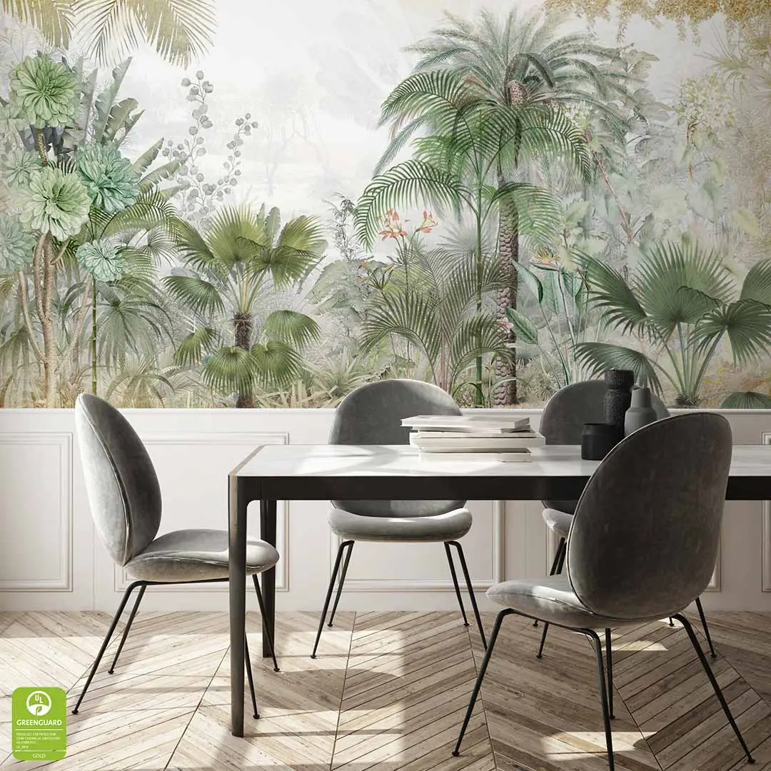 Masz możliwość wyboru materiału pomiędzy tapetą flizelinową a tapetą winylową. Pamiętaj, że tapeta winylowa jest tapetą o podwyższonej wytrzymałości i jest łatwiejsza w utrzymaniu w czystości (ze względu na zmywalność) w stosunku do tapety flizelinowej.