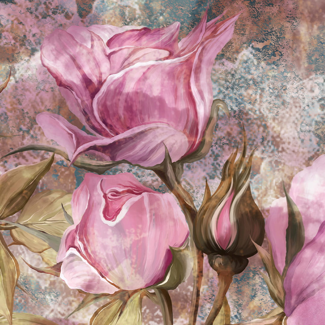 Modna fototapeta ścienna „Zjawiskowe, ręcznie malowane róże na teksturowym, przetartym tle”