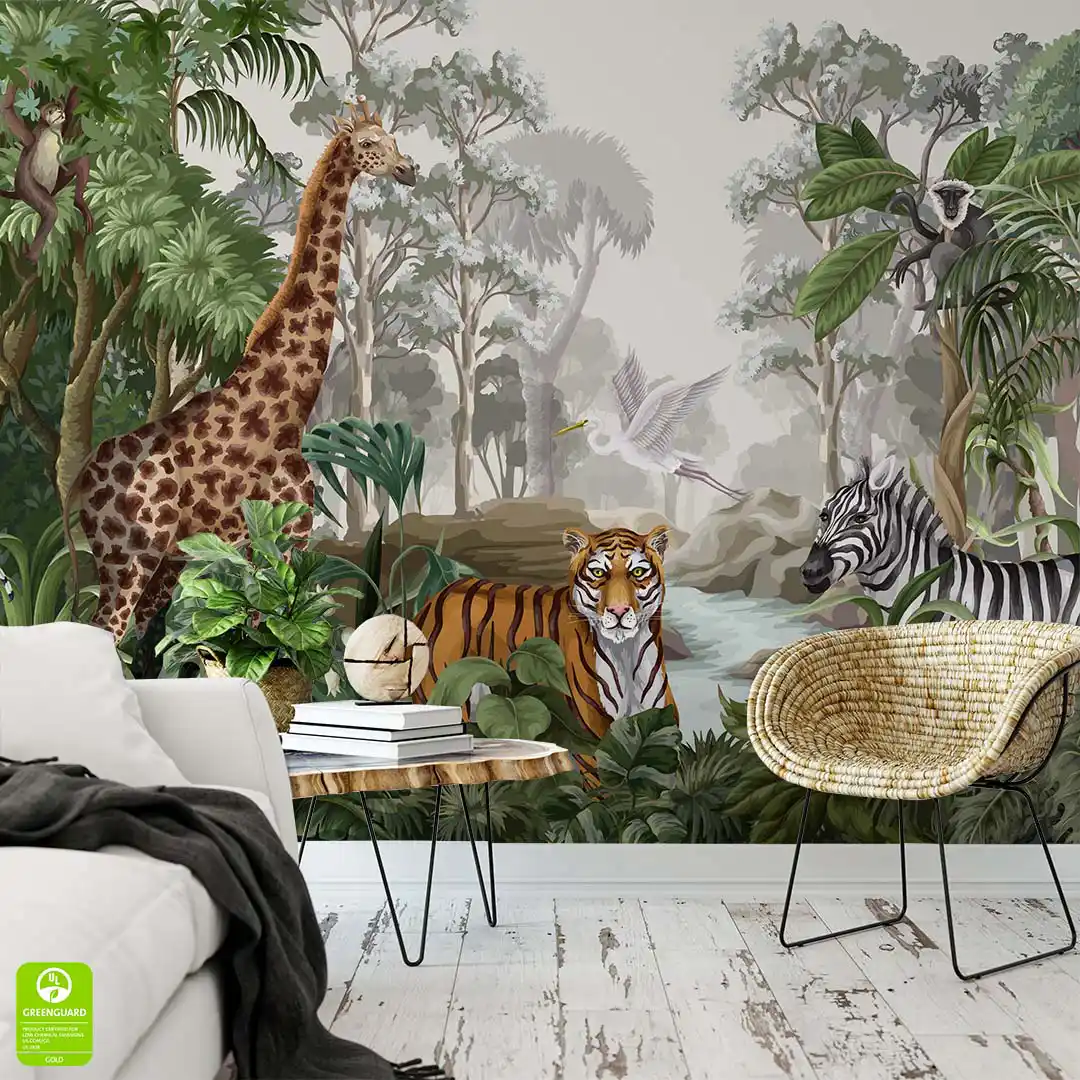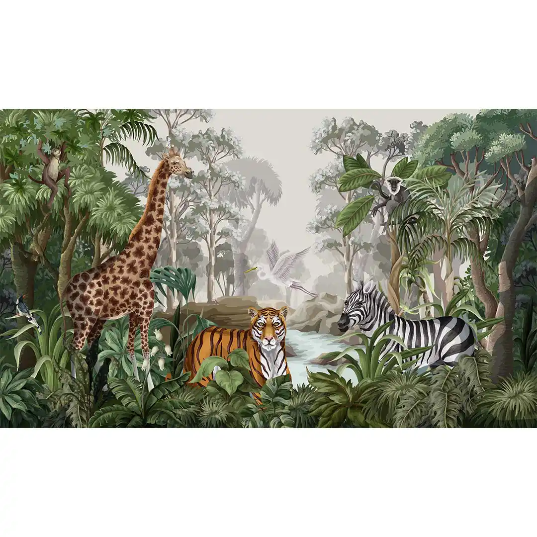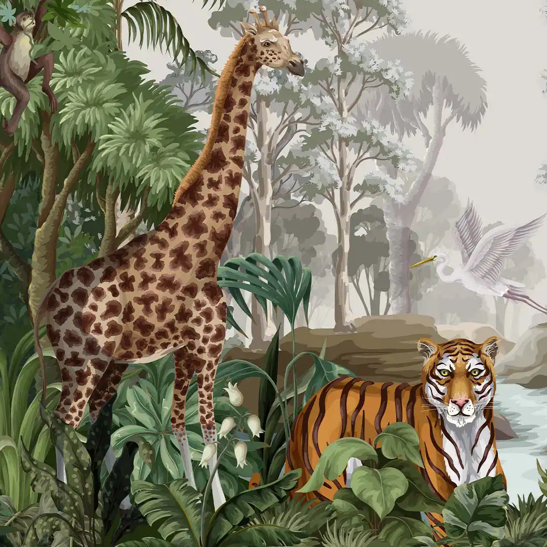 Fototapeta na wymiar do pokoju dziecka: Zwierzęta Dżungla, Zielona, Brązowa, Styl Boho, Nowoczesny