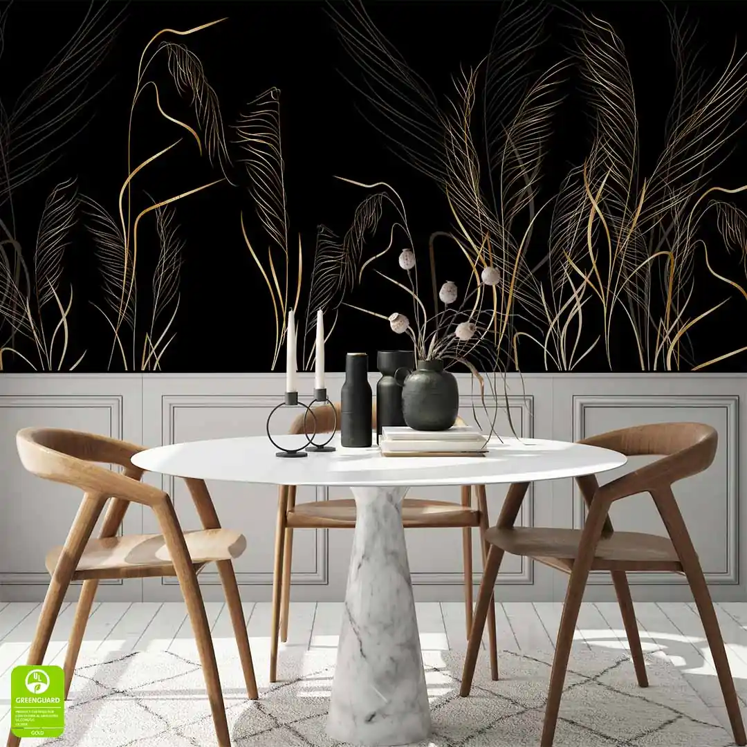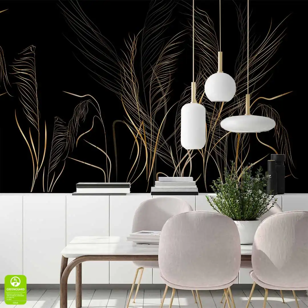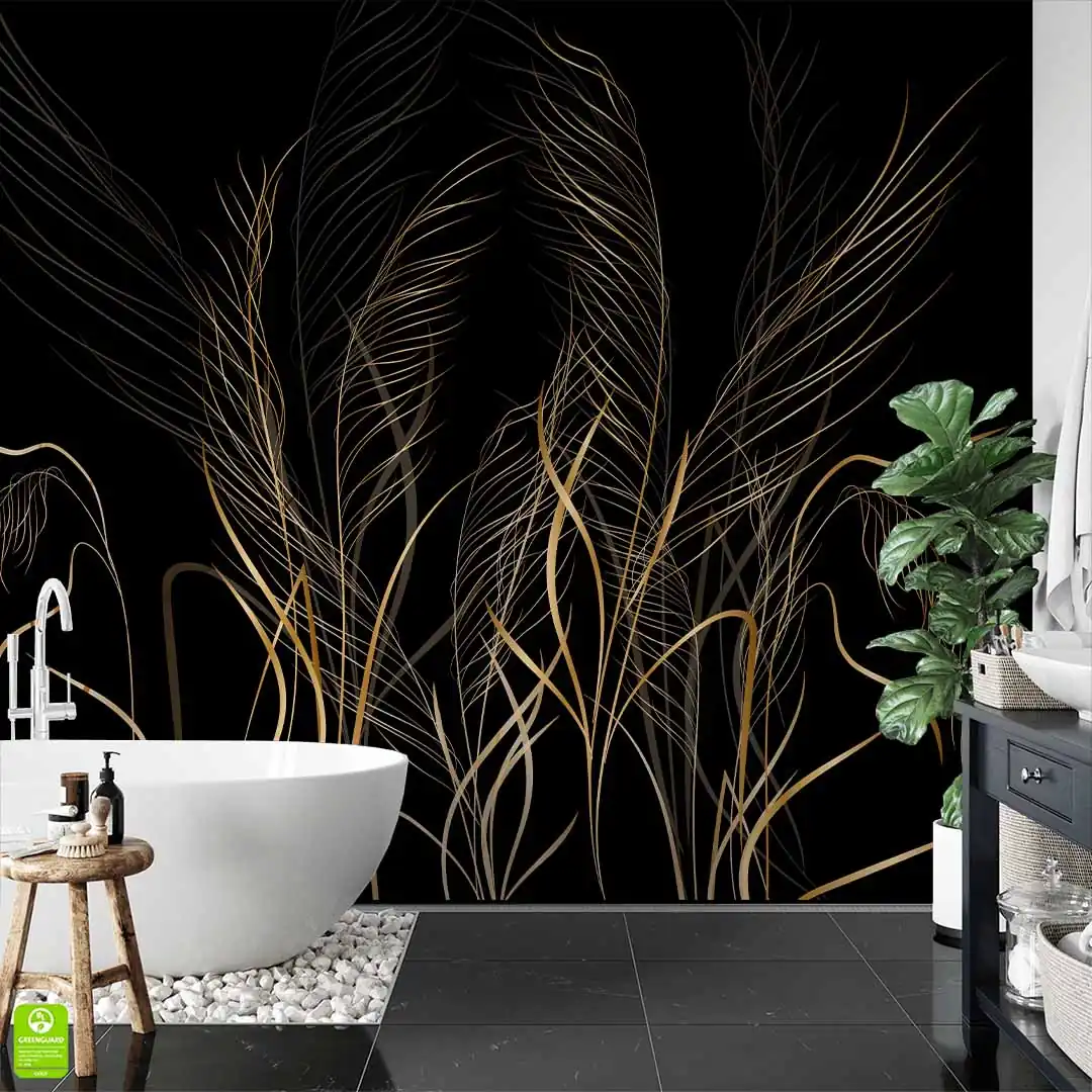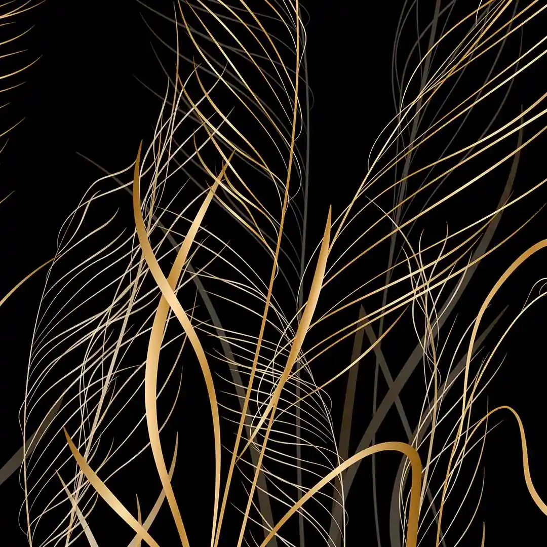 Fototapeta na wymiar z subtelnymi złotymi trawami na czarnym tle do salonu lub sypialni