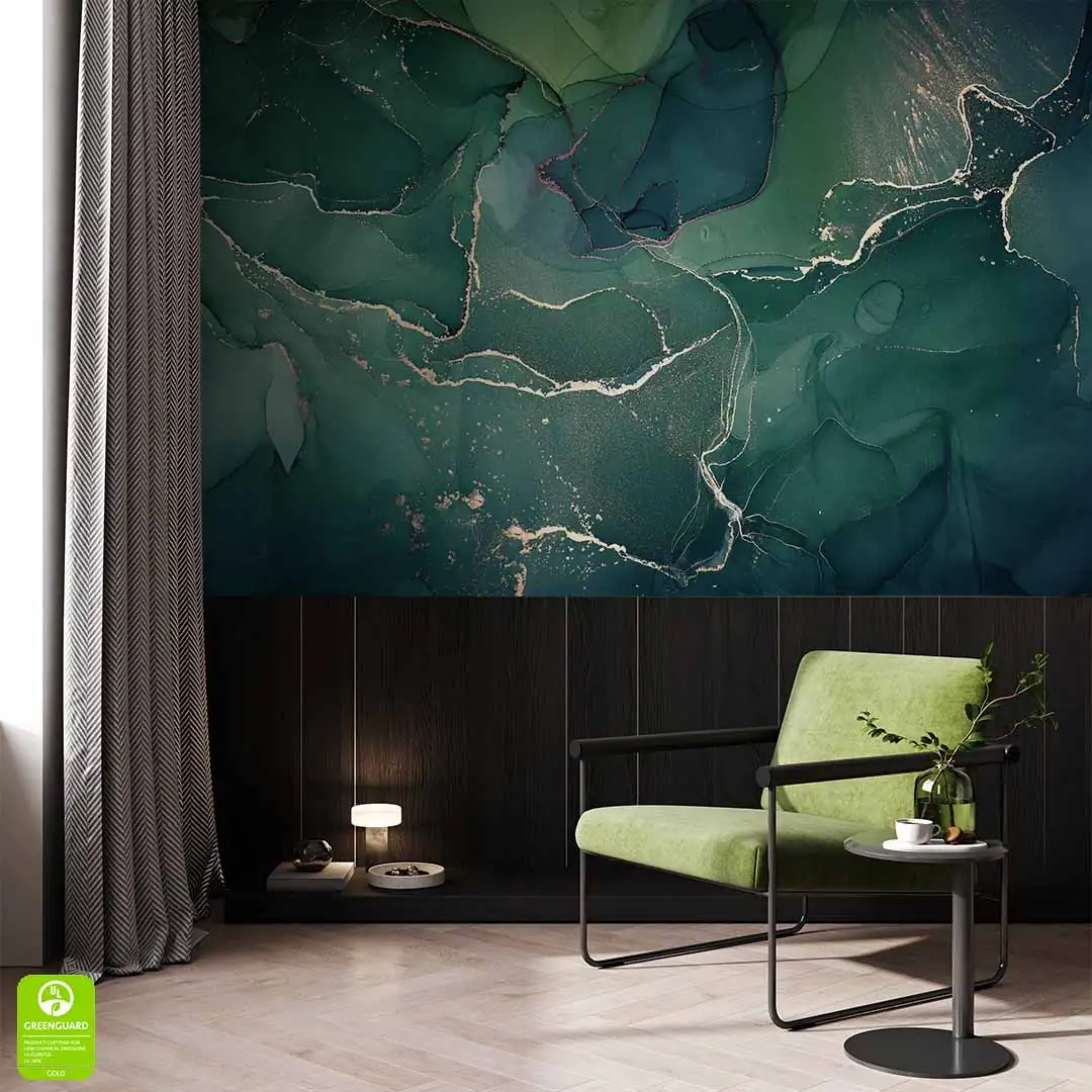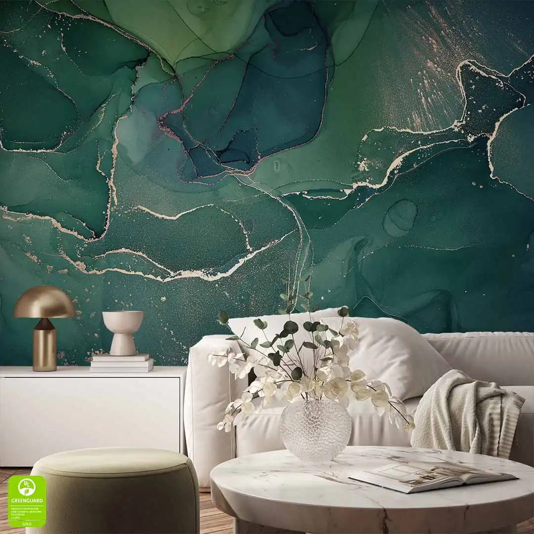 Fototapeta - Zielone abstrakcyjne fale to doskonała propozycja dla osób ceniących piękne i eleganckie wzornictwo. Tapeta ze względu na jednolitą kolorystykę będzie ciekawym punktem dekoracyjnym pomieszczenia. Motyw w całości utrzymany jest w tonacji zieleni - udowadniając, że zieleń nigdy nie jest nudna. Możemy tutaj dostrzec kolor miętowy, morski nieco butelkowej zieleni czy limonkowy, a wszystko z dodatkiem drobinek złota w falistych kształtach. Kolor złoty uzyskany jest przez druk, nie jest to złoto metalizowane. Ze względu na wzornictwo motyw jest uniwersalny i będzie bardzo dobrze prezentować się w wielu stylach wykończenia wnętrza od skandynawskiego, po rustykalny czy nowoczesny, wszędzie, gdzie dodatek pięknej zieleni uatrakcyjni wnętrze. Fototapeta - Zielone abstrakcyjne fale ze względu na wzór będzie doskonale prezentować się zarówno w orientacji poziomej jak i pionowej.