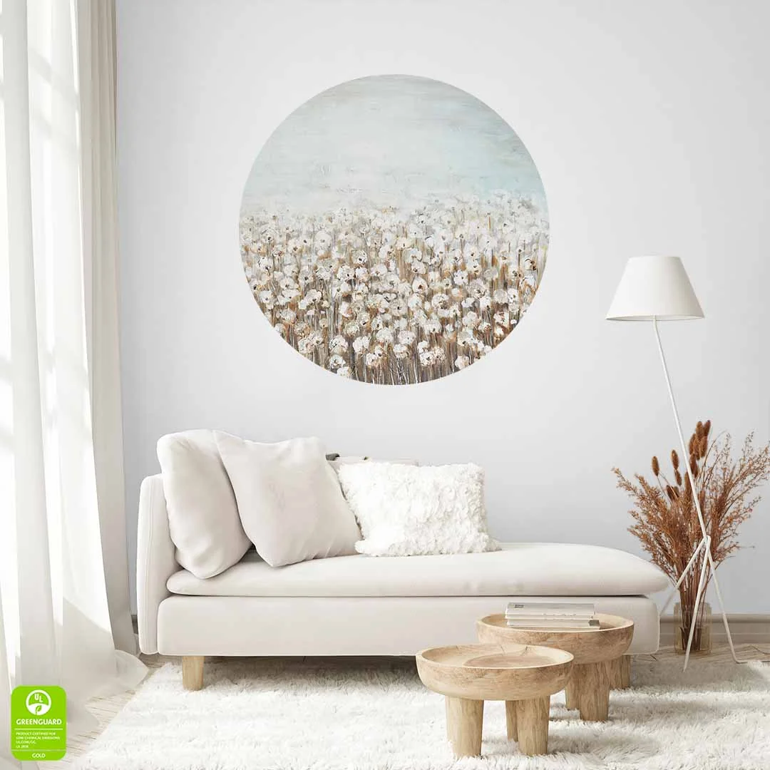 Fototapeta okrągła - Botaniczna łąka w beżu