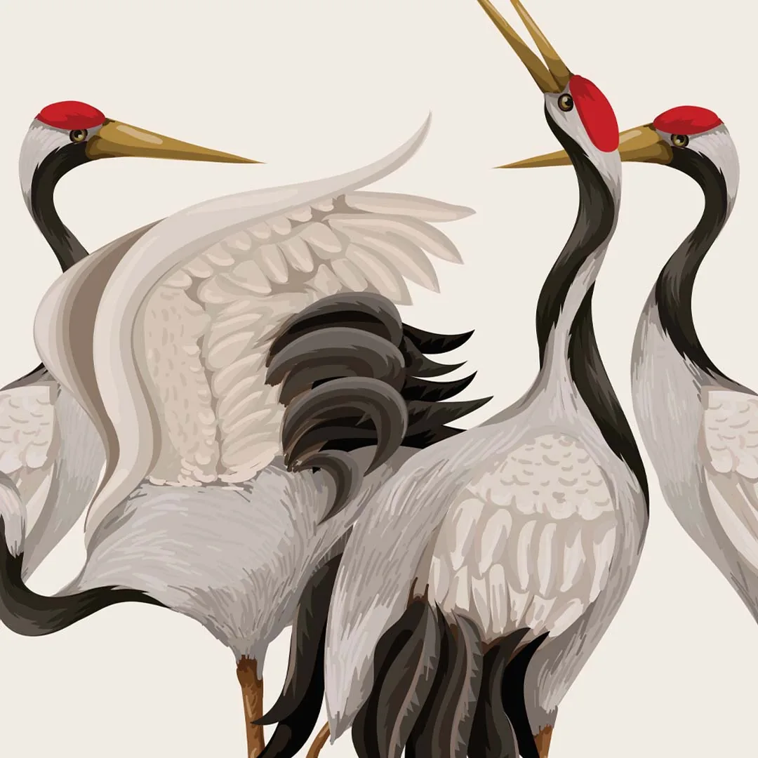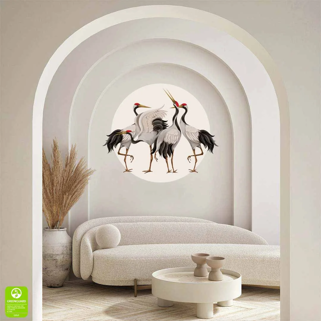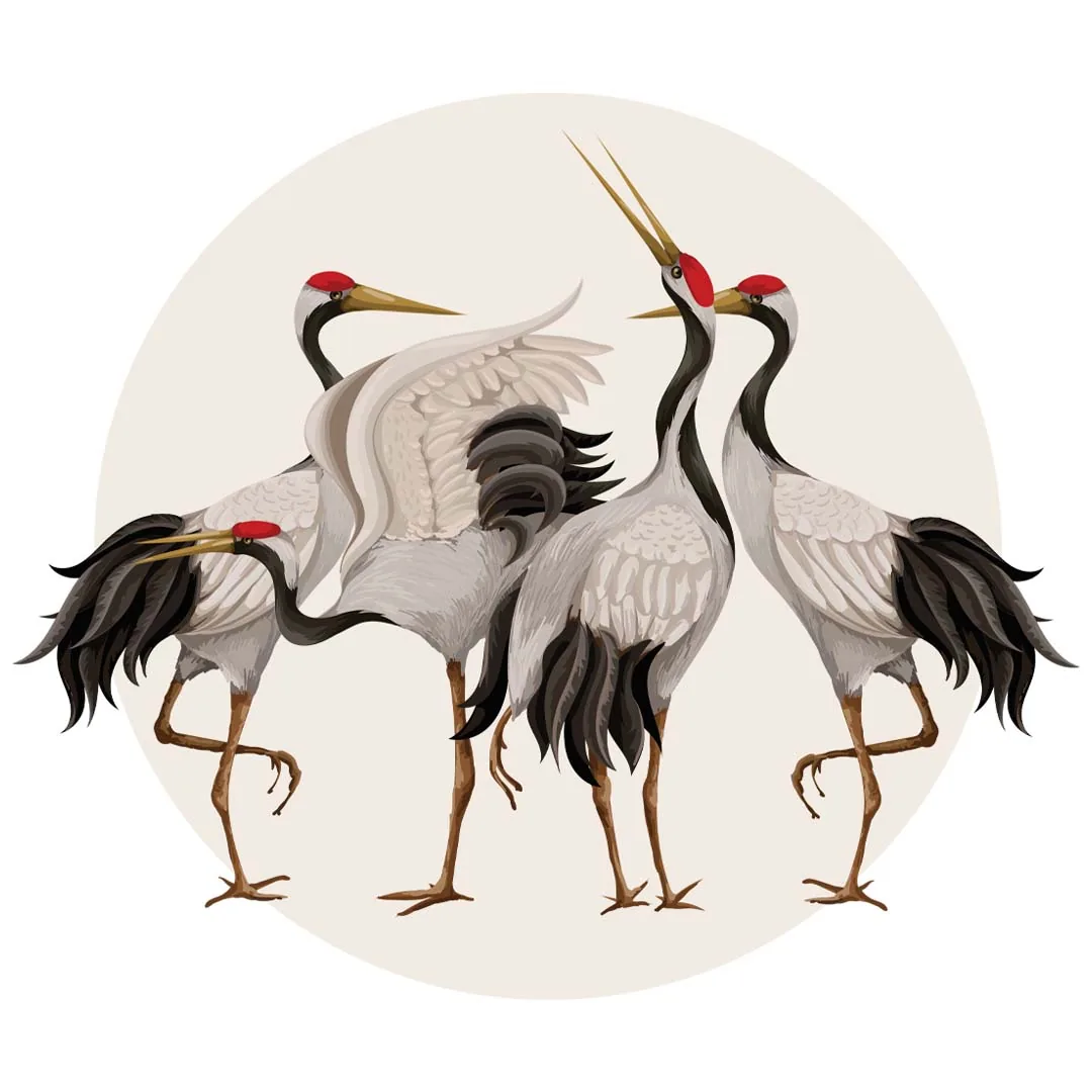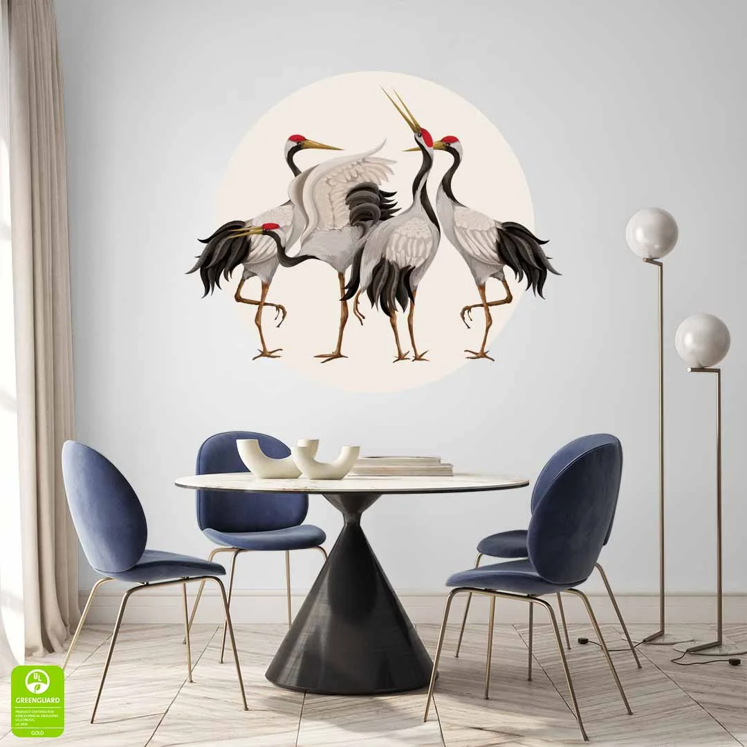 Fototapeta okrągła - Drużyna żurawi - wersja beżowa