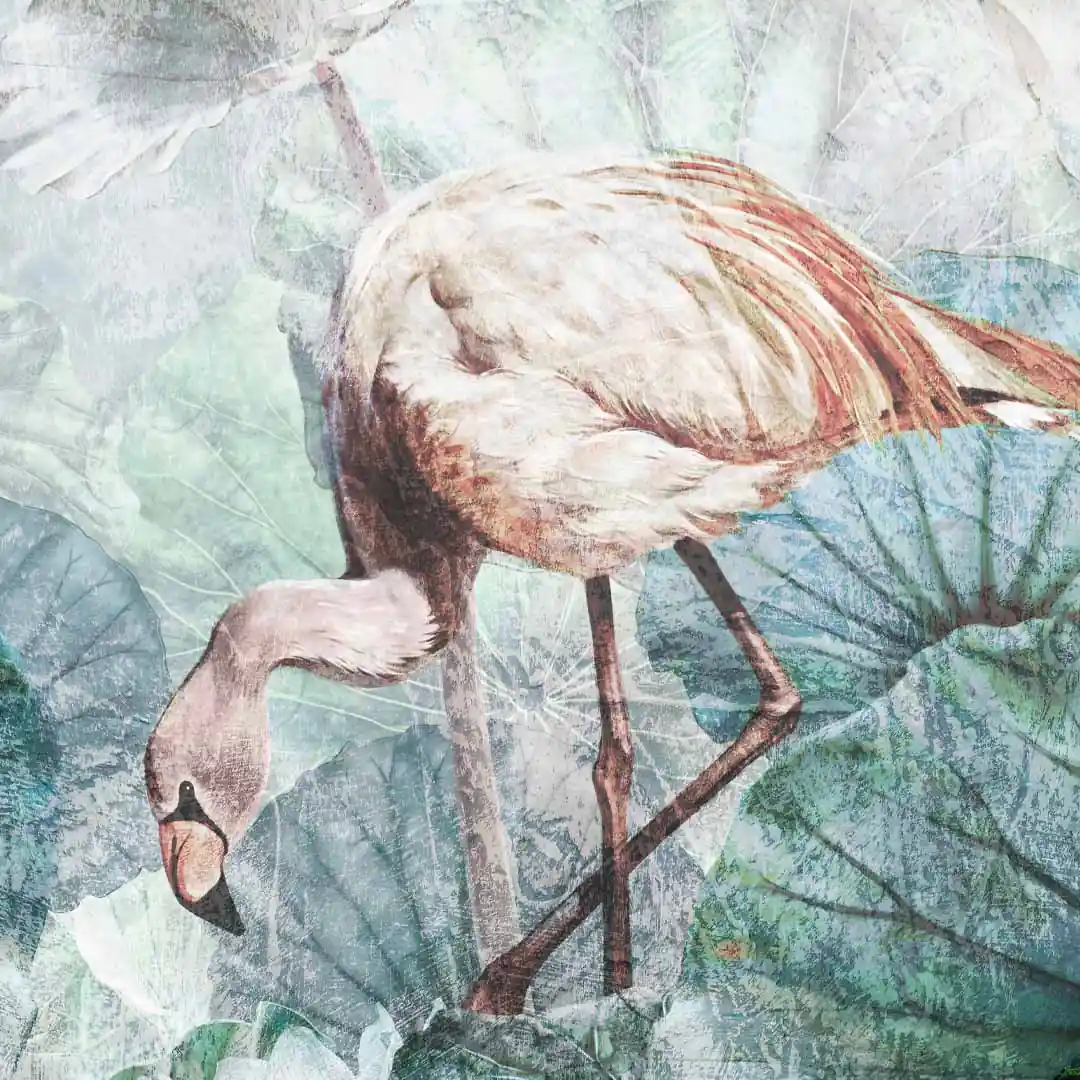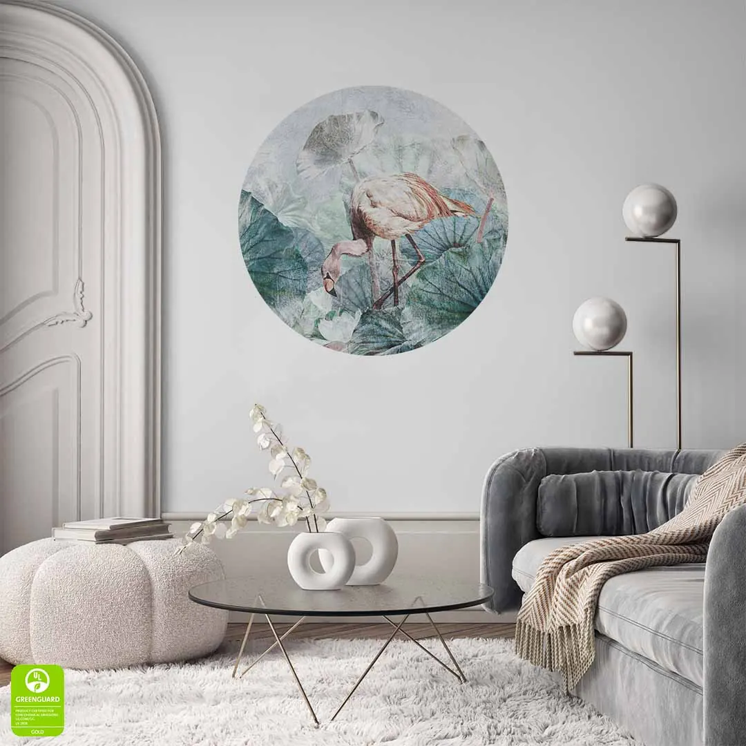 Fototapeta okrągła - Flamingo otulony kwiatami