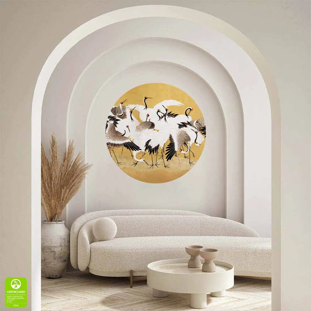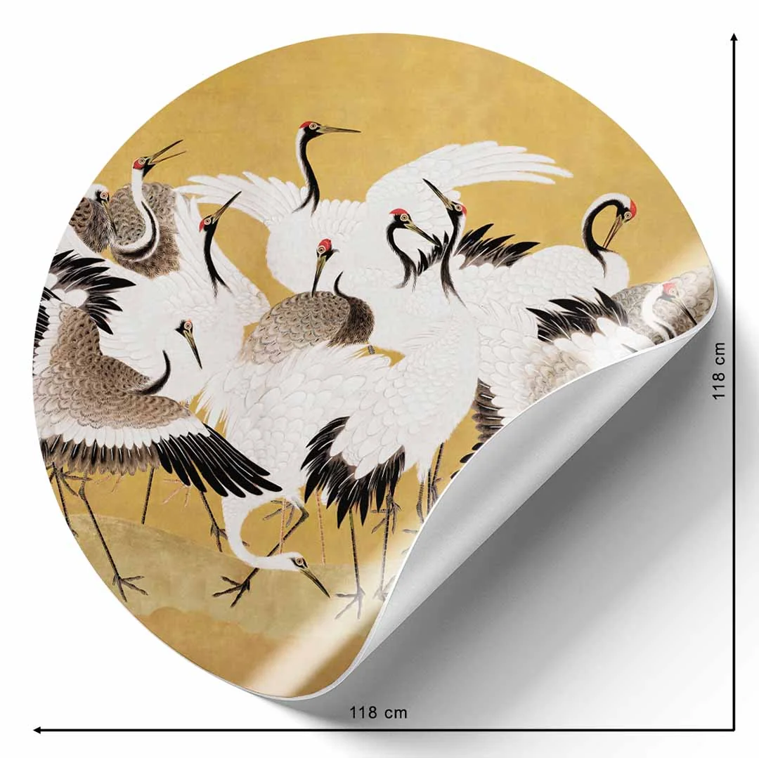 Fototapeta okrągła - Ishida Yūtei - Japońskie stado żurawi - Reprodukcja