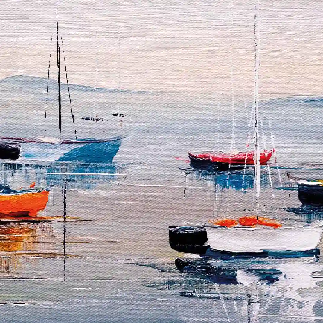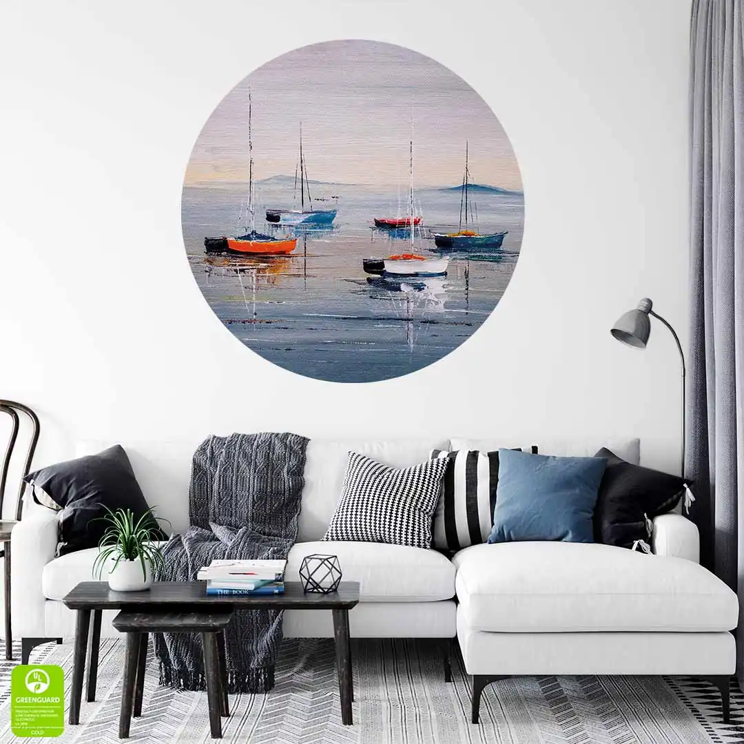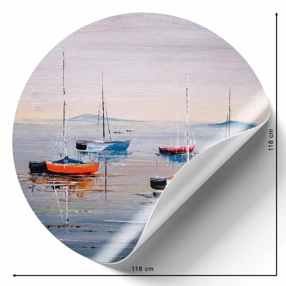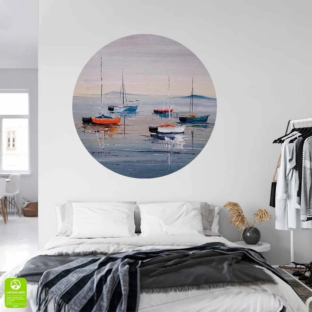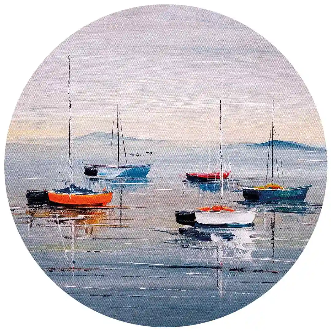 Fototapeta okrągła - Kolorowe łódki i spokojne morze