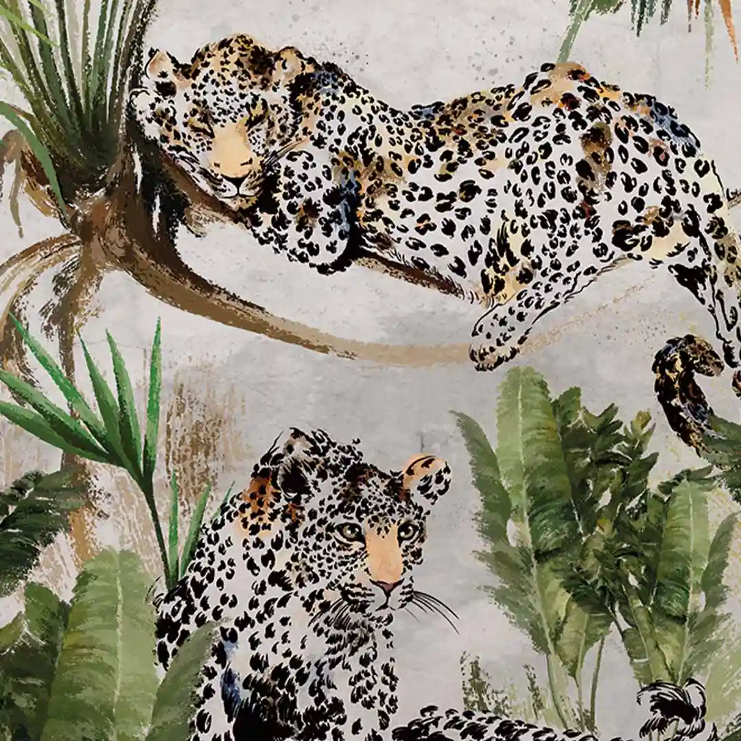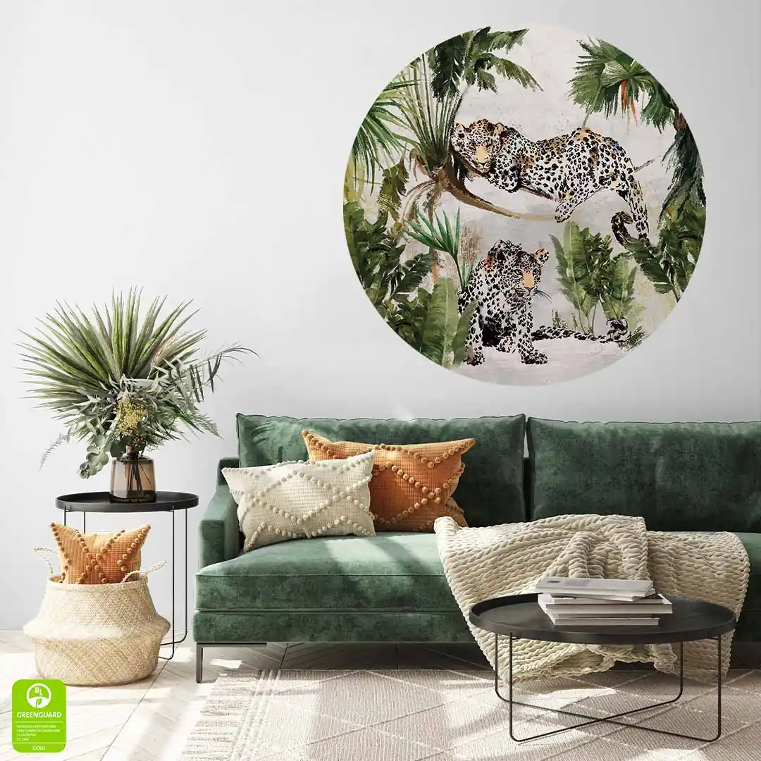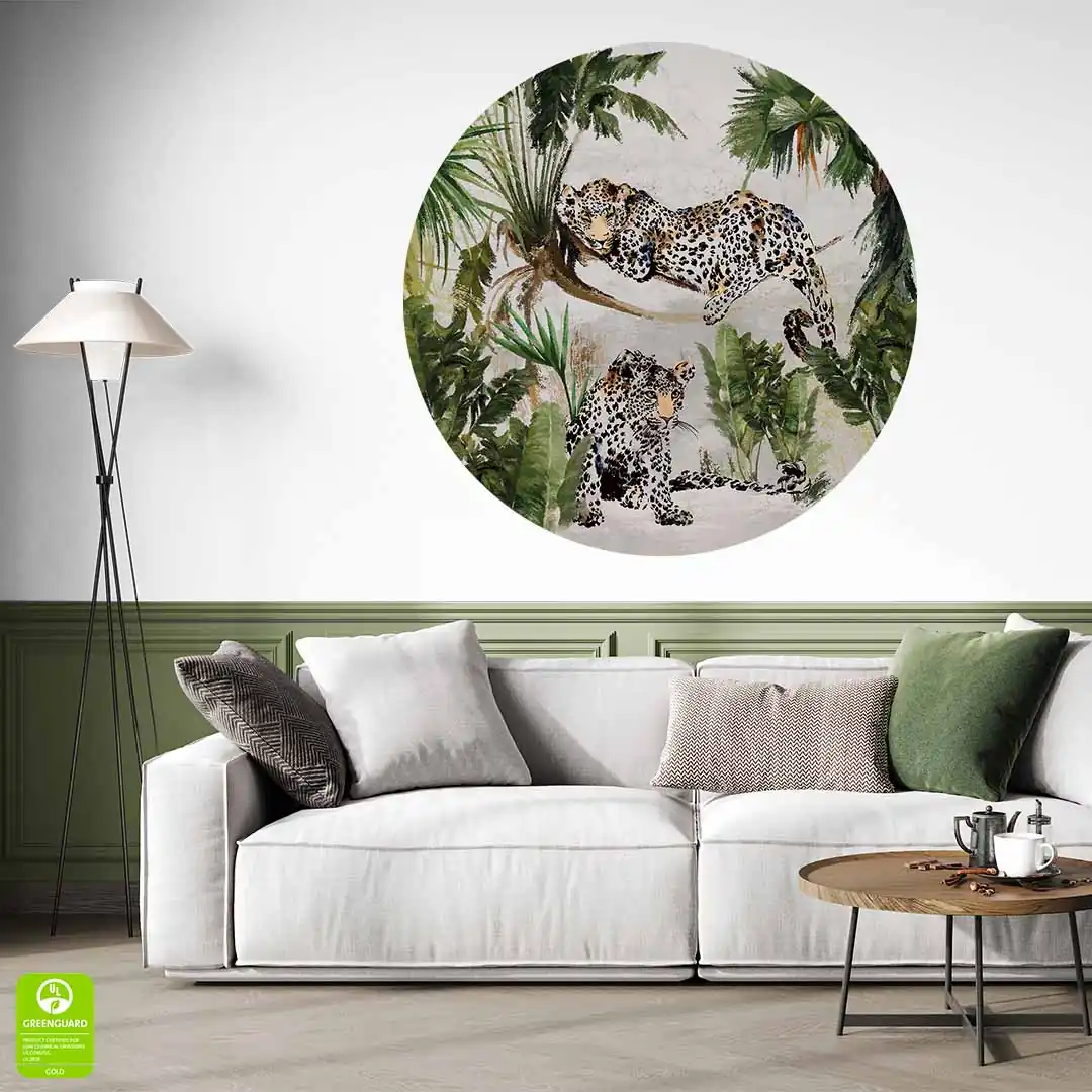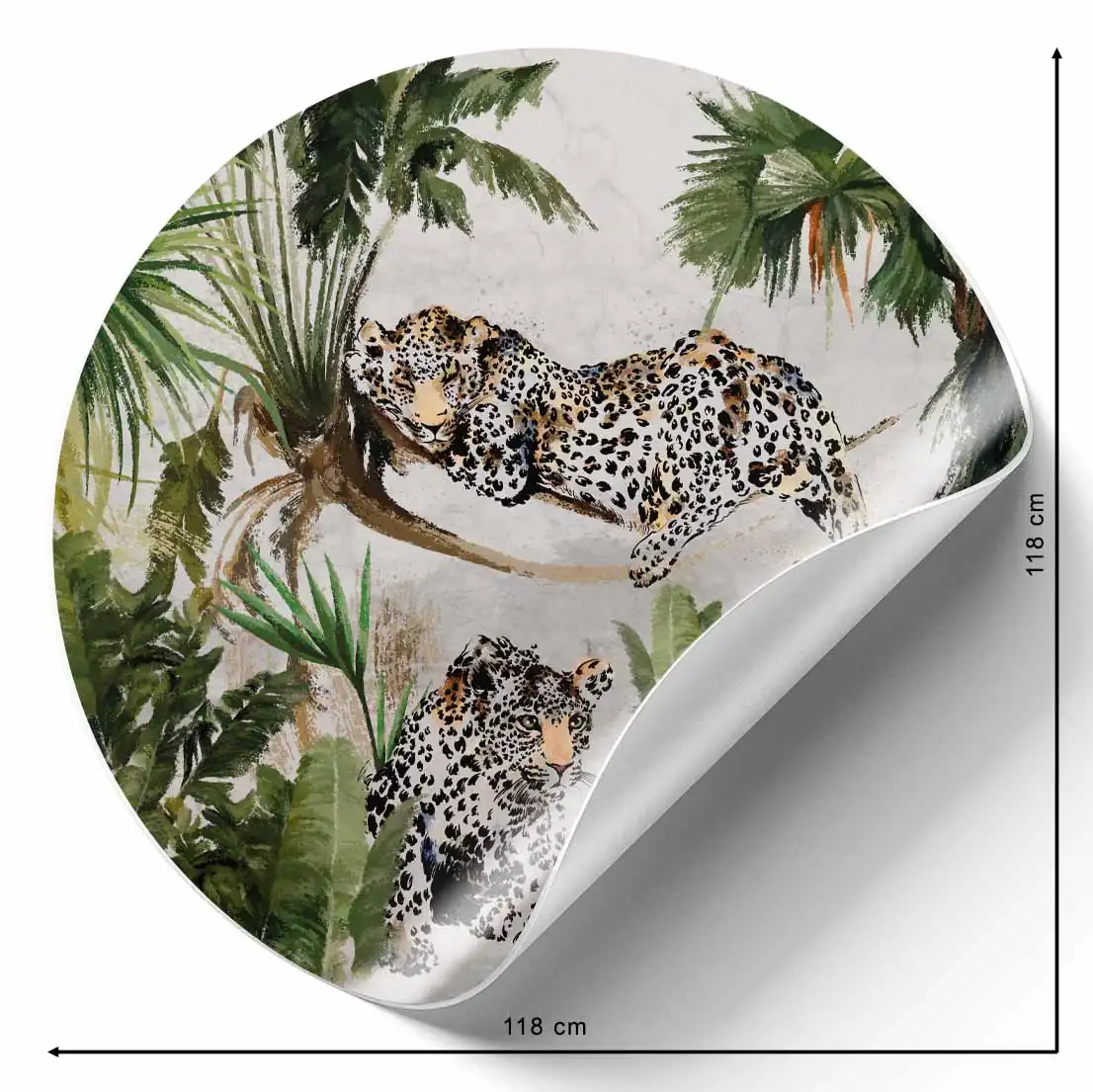 Fototapeta okrągła - Leopardy w liściach tropikalnych