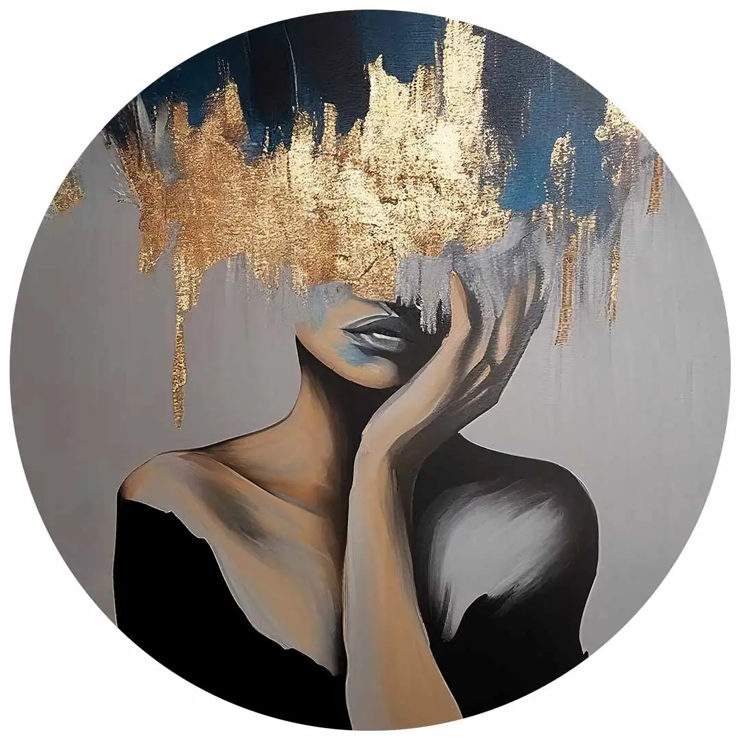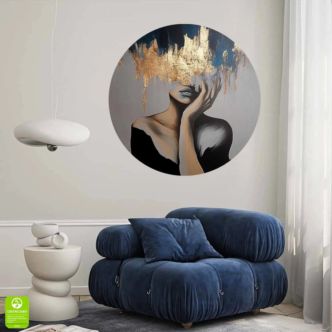 Fototapeta okrągła - Portret kobiety za złotą zasłoną