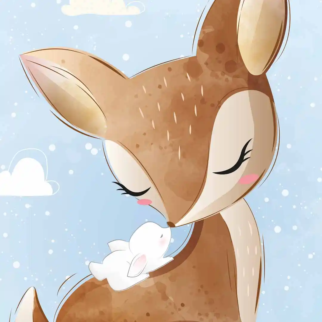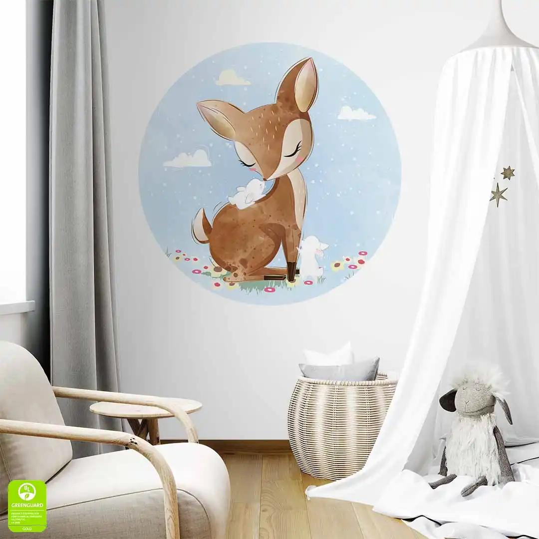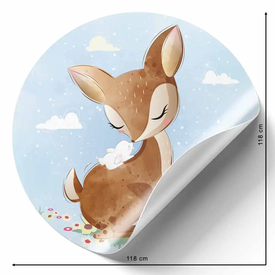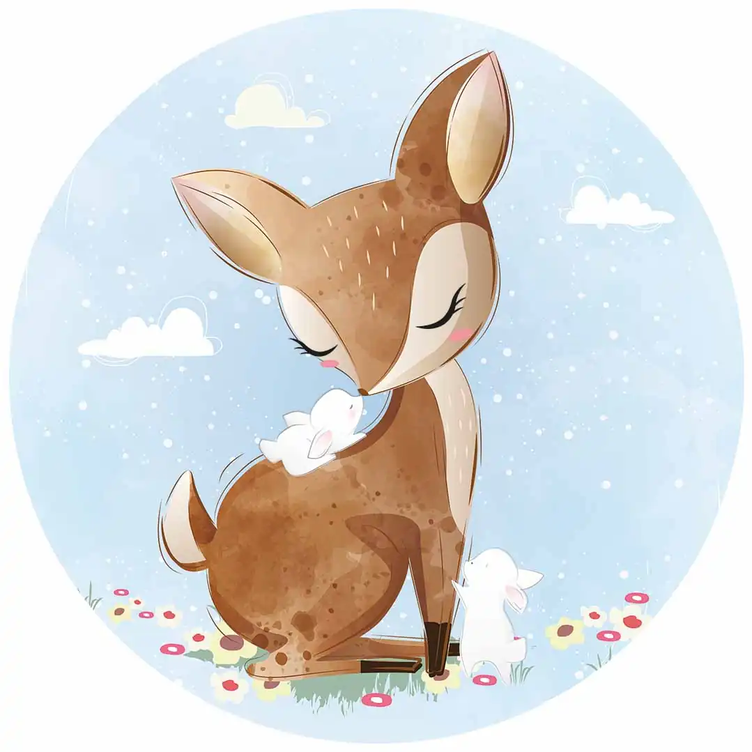 Fototapeta okrągła - Słodki jeleń z małymi zajączkami