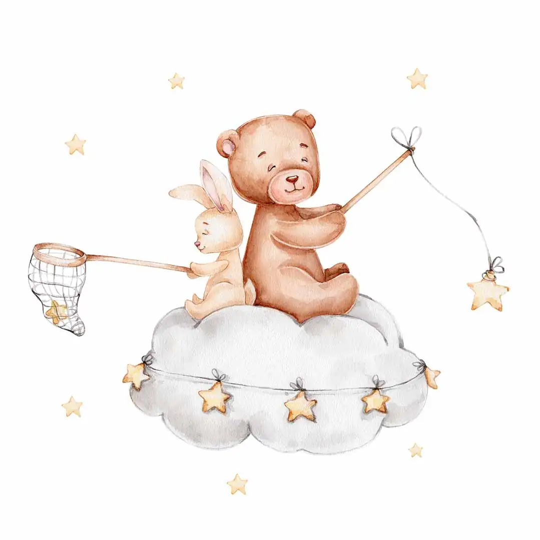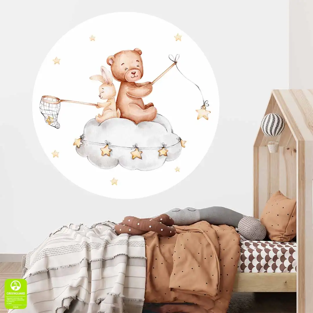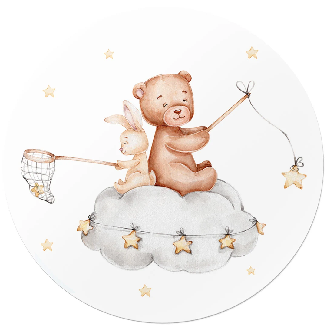 Fototapeta okrągła - Słodki królik i miś łowiący gwiazdki