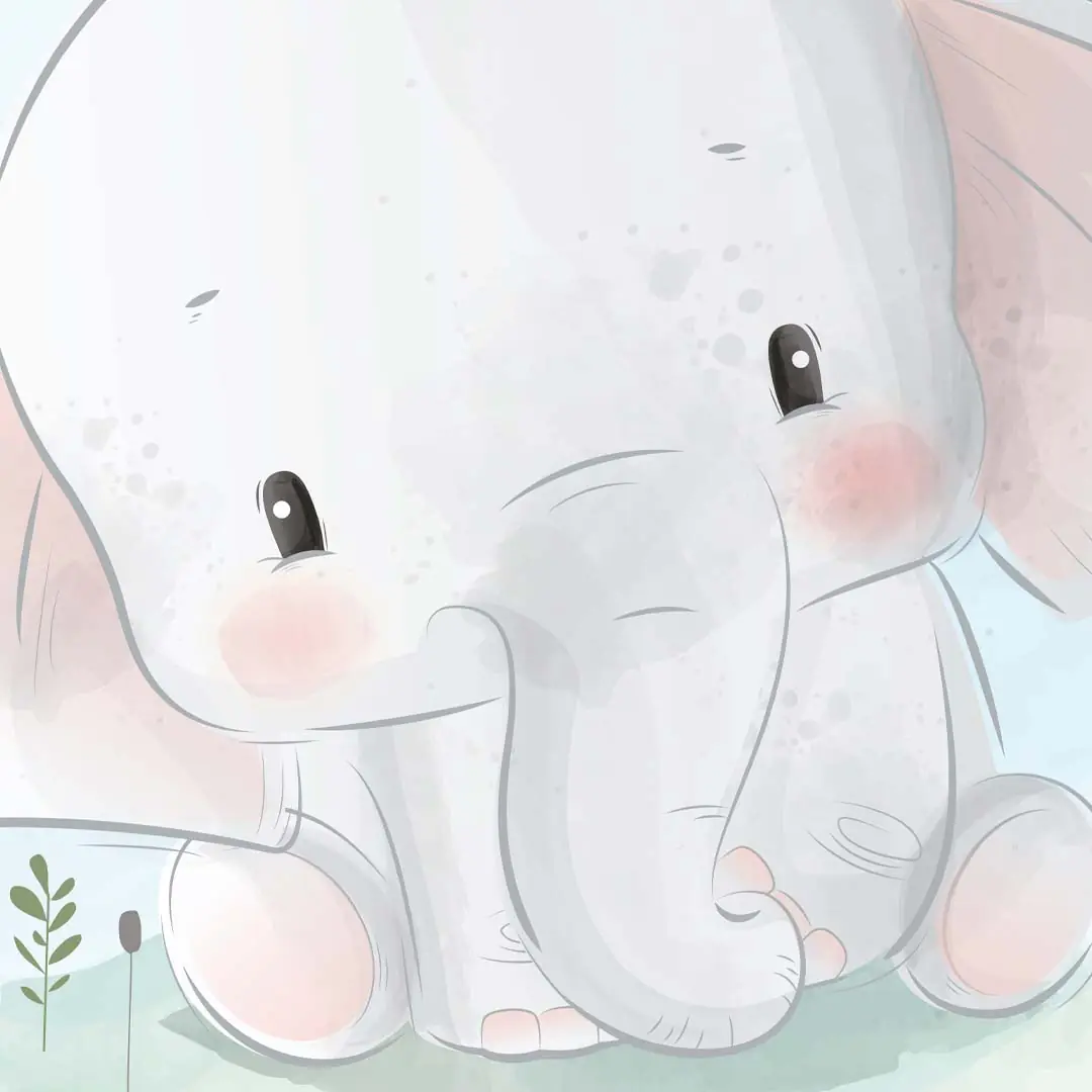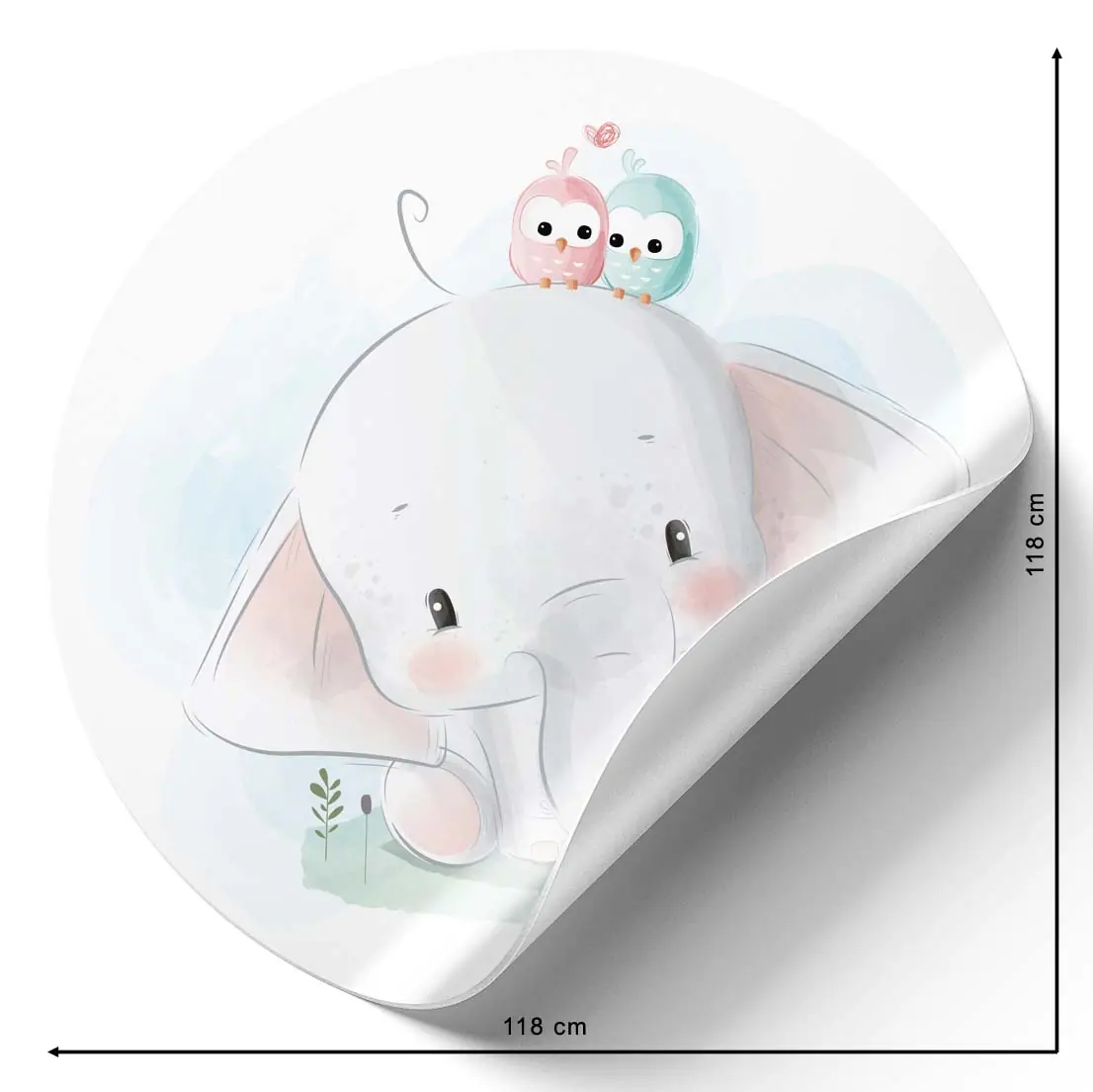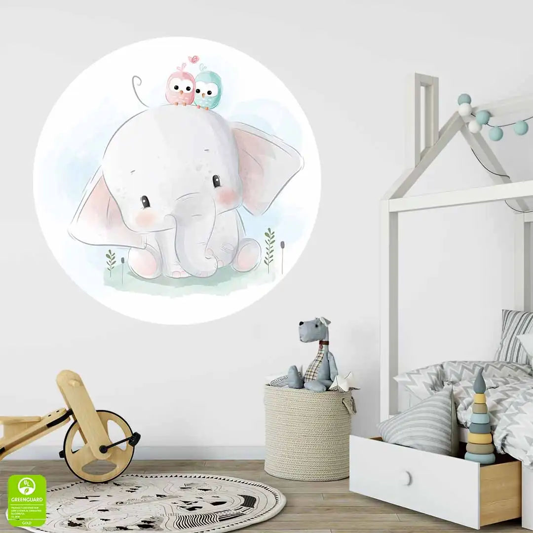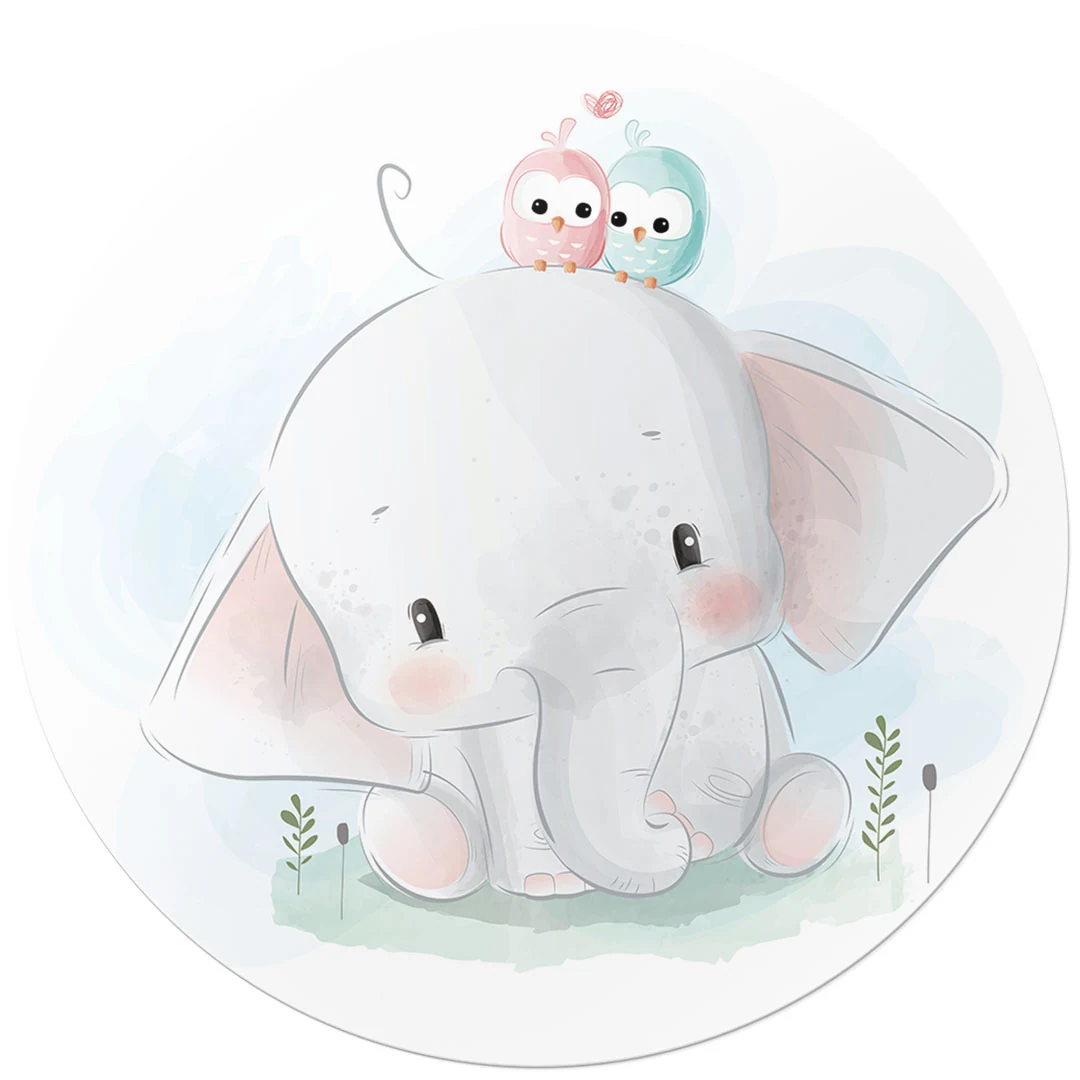 Fototapeta okrągła - Urocze słoniątko i ptaszki