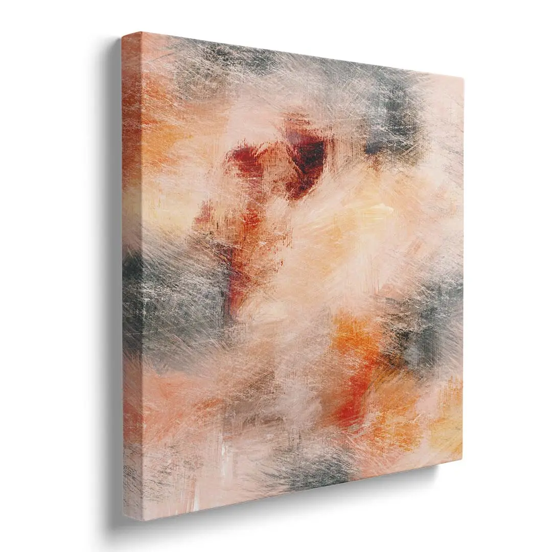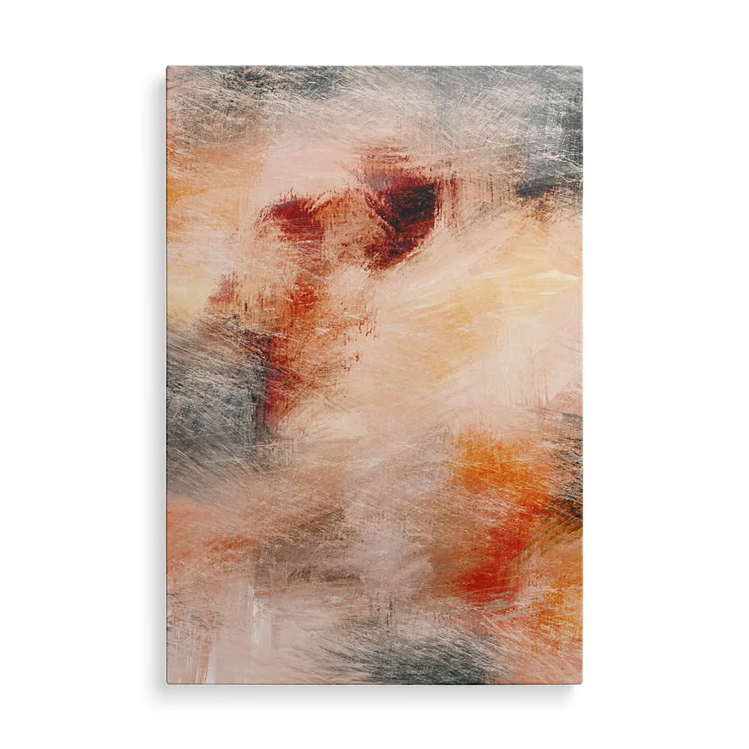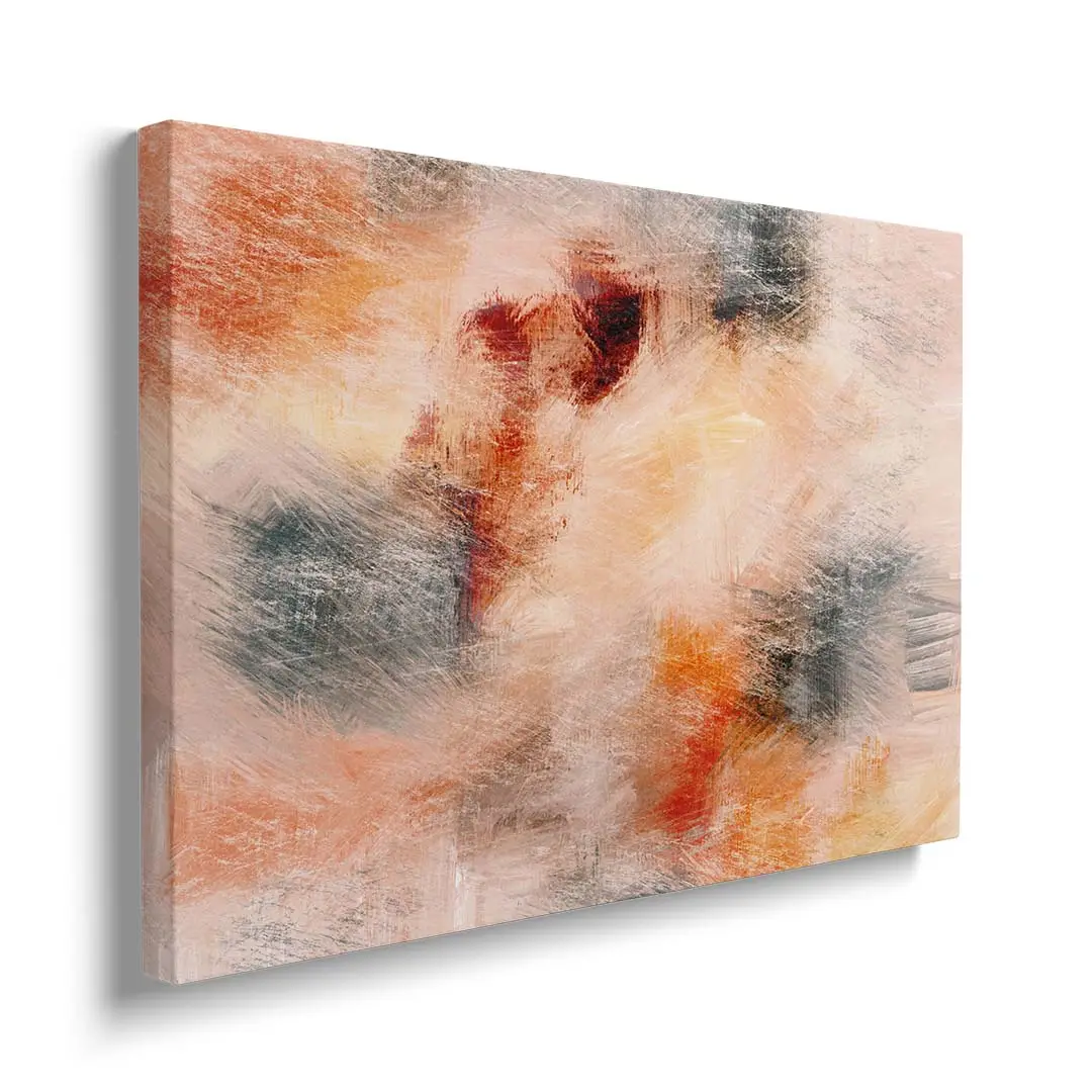 Obraz na płótnie - Abstrakcja Malarska – Ciepła dekoracja do salonu i sypialni, styl nowoczesny, beżowo-pomarańczowe plamy kolorów
