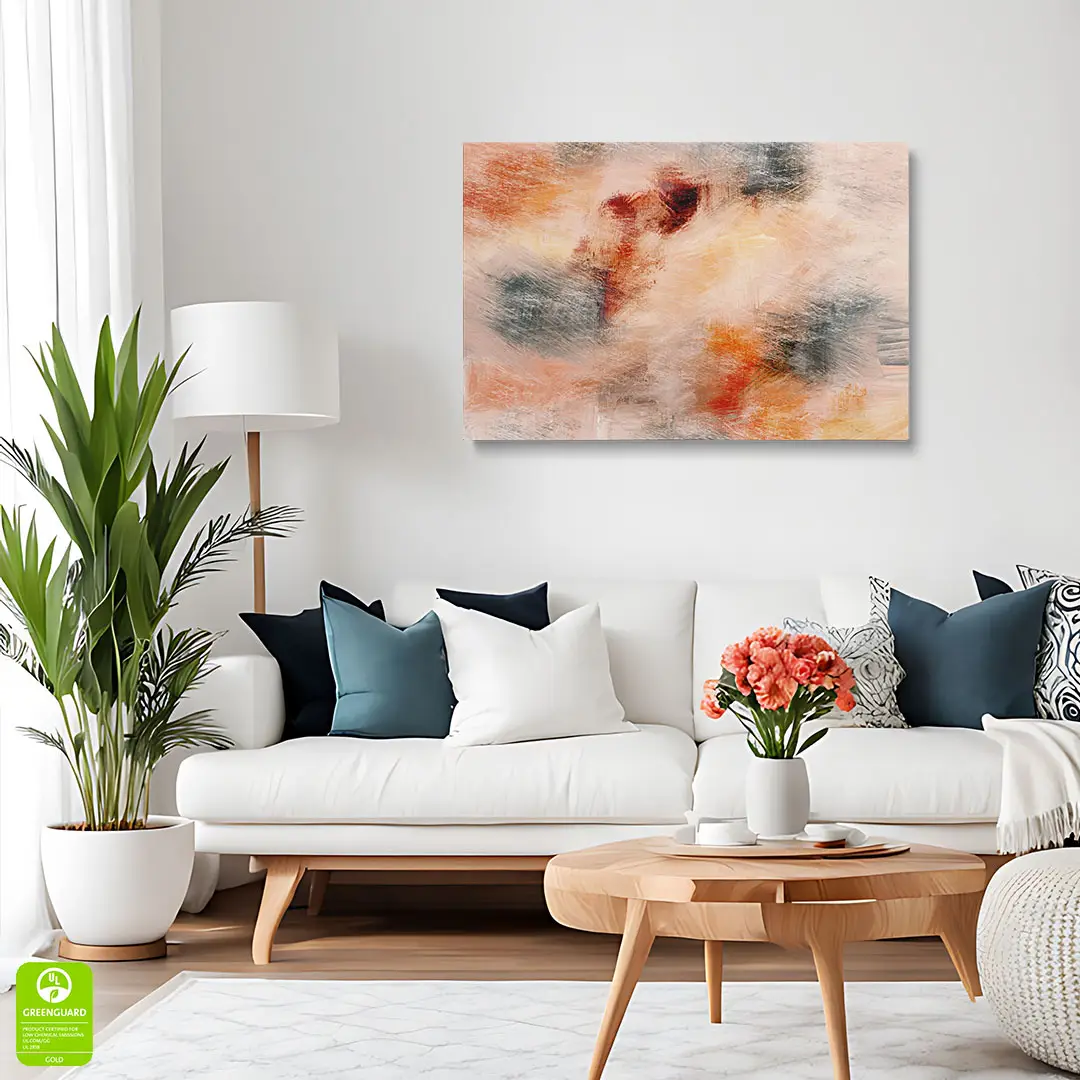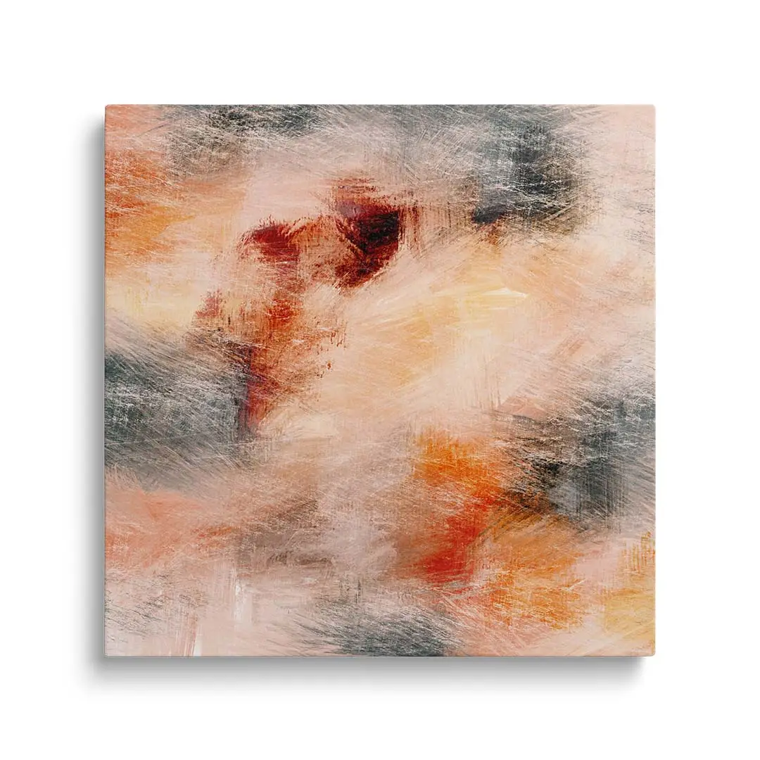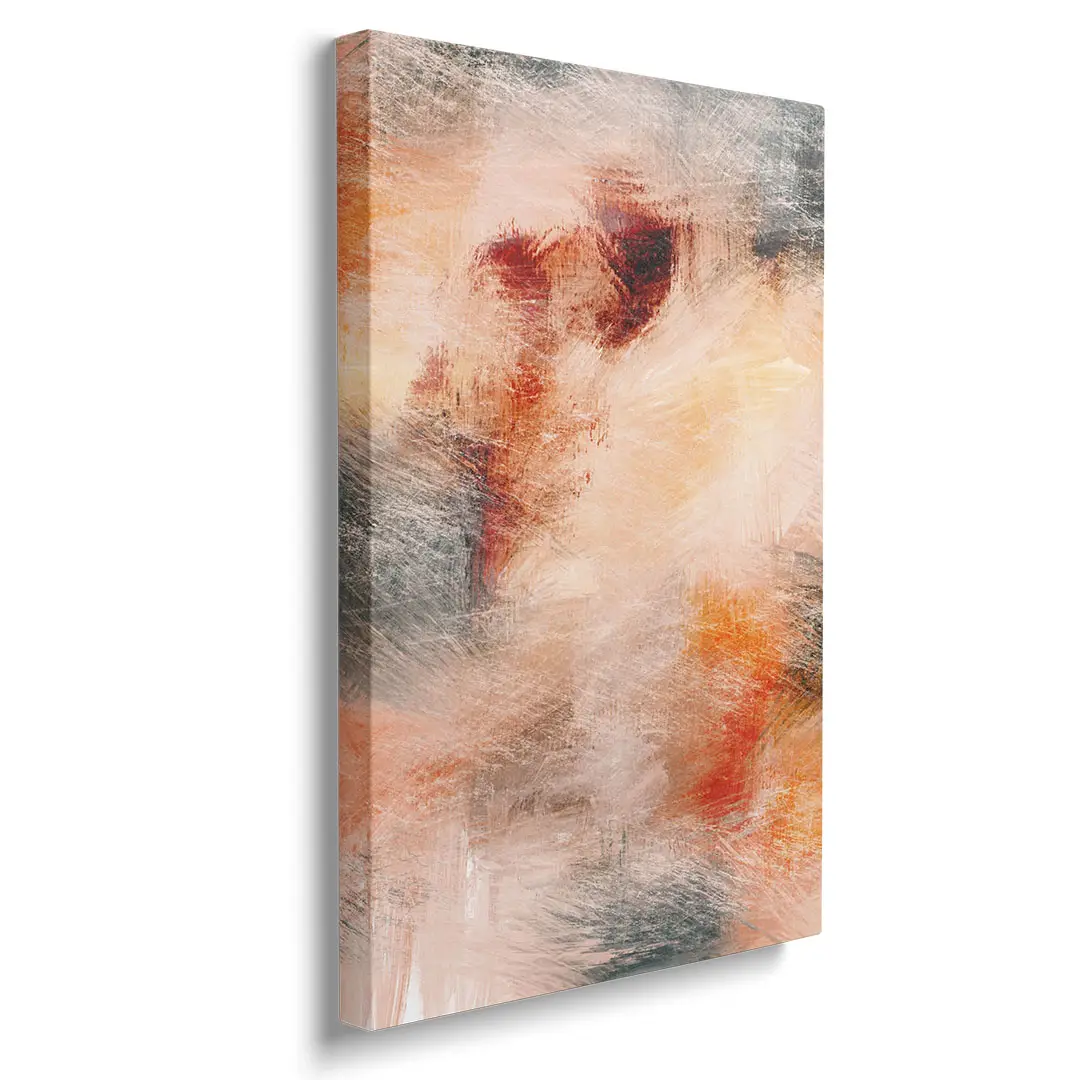 Obraz na płótnie - Abstrakcja Malarska – Ciepła dekoracja do salonu i sypialni, styl nowoczesny, beżowo-pomarańczowe plamy kolorów