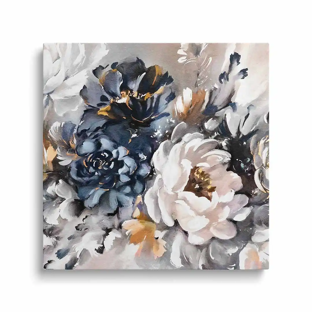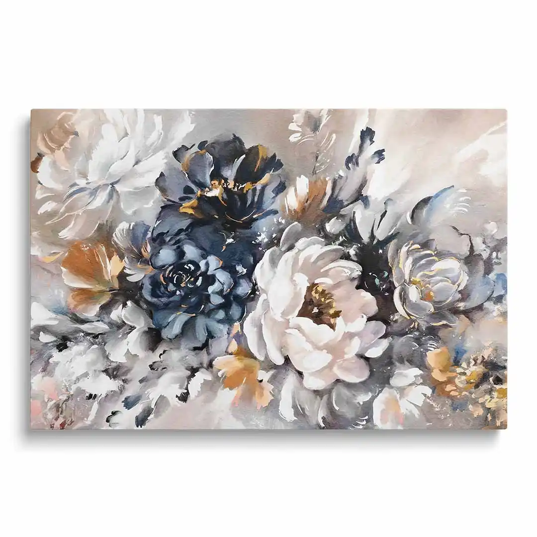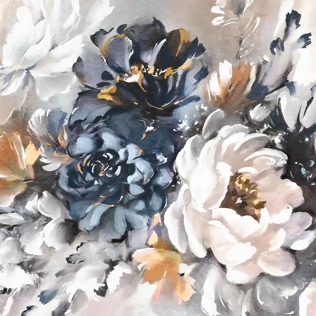 - techniką druku - proces drukowania wykorzystuje inne metody tworzenia kolorów (tzw. "przestrzeń barw") niż te, które stosowane są na ekranach komputera; kolory drukowane mogą wyglądać również nieco inaczej na różnych materiałach (np. canvasie, flizelinie, papierze czy szkle itp.) i przy użyciu różnych tuszy, w naszym przypadku tuszy do druku UV; złote elementy nie są wybiórczo metalizowane - efekt uzyskany jest poprzez wydruk tekstury w kolorze złota;
