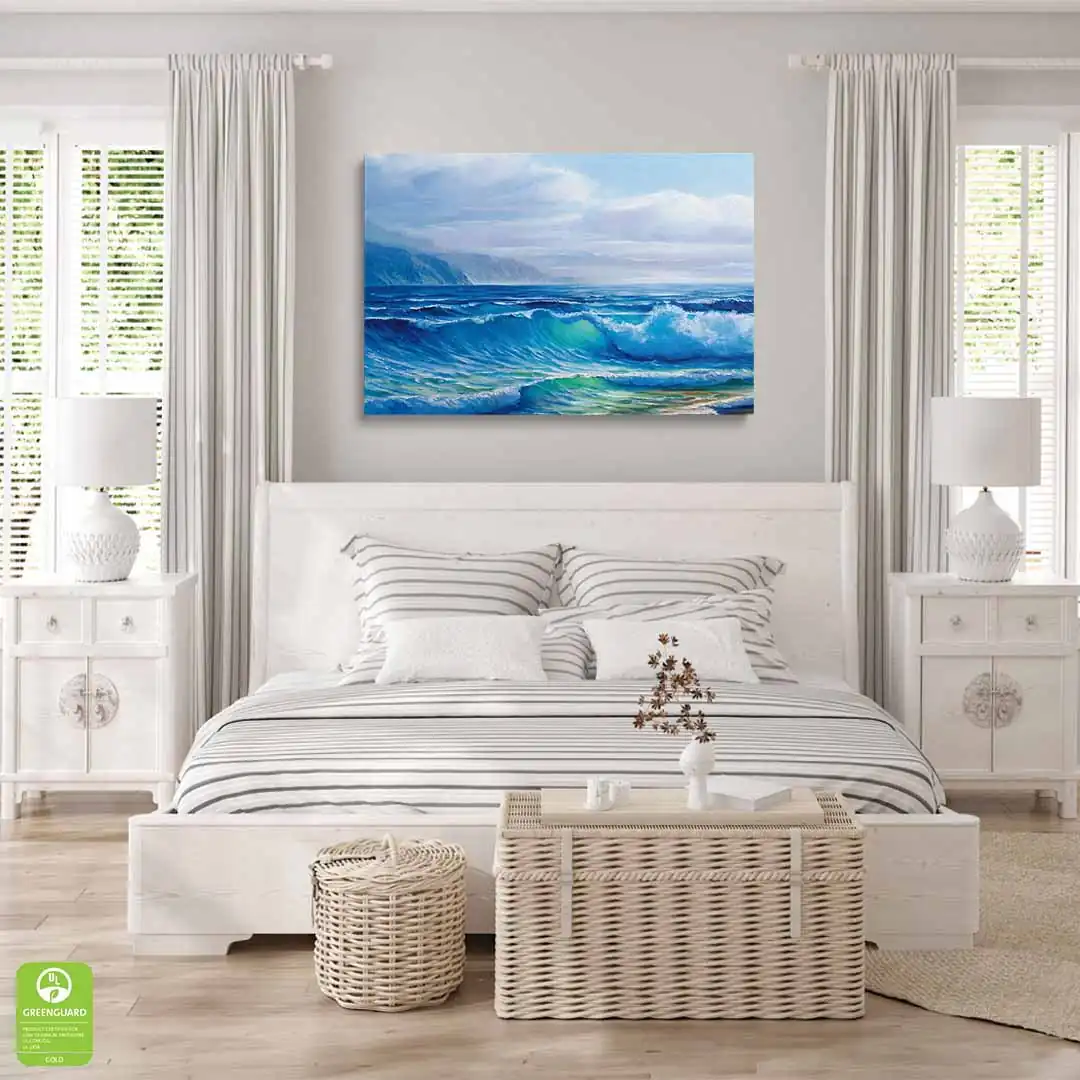Obraz drukowany jest przy wykorzystaniu nowoczesnej technologii druku Canon UVgel. Uzyskany jest efekt widocznego prawdziwego płótna malarskiego. Użyte tusze są ekologiczne, bezwonne oraz trwałe - odporne na blaknięcie oraz działanie promieni słonecznych UV. Certyfikowane atramenty spełniają najsurowsze światowe normy dotyczące niskiej emisji lotnych związków organicznych (VOC), co sprawia że nasze obrazy są całkowicie bezpieczne i mogą być z powodzeniem wykorzystywane jako elementy dekoracji wnętrz w domach i pomieszczeniach, gdzie ludzie a zwłaszcza dzieci i osoby narażone na szkodliwe związki, spędzają dłuższy czas. Odwzorowana jest fotograficzna jakość wydruku, a kolory są żywe i głęboko nasycone.
