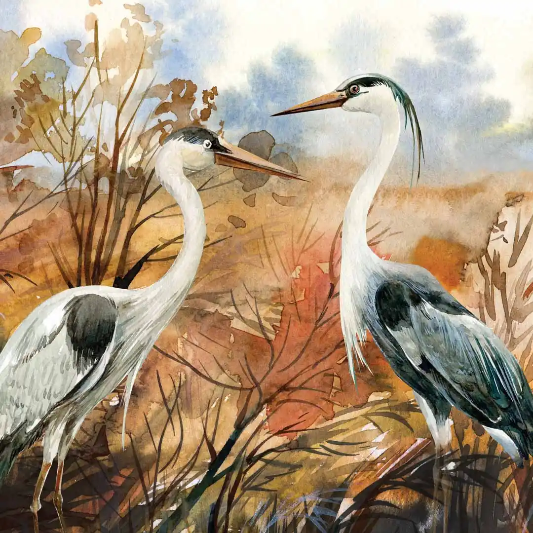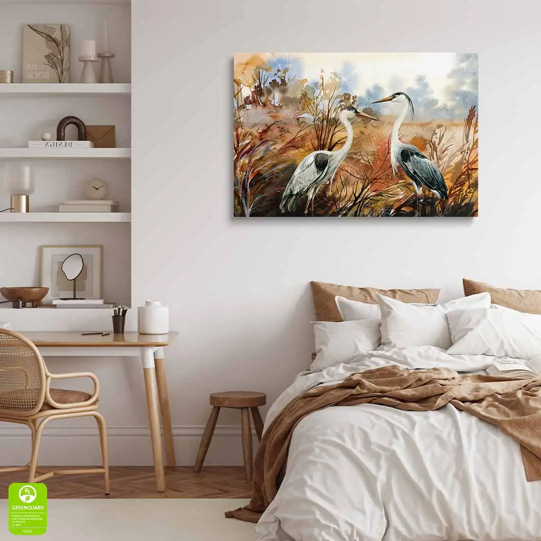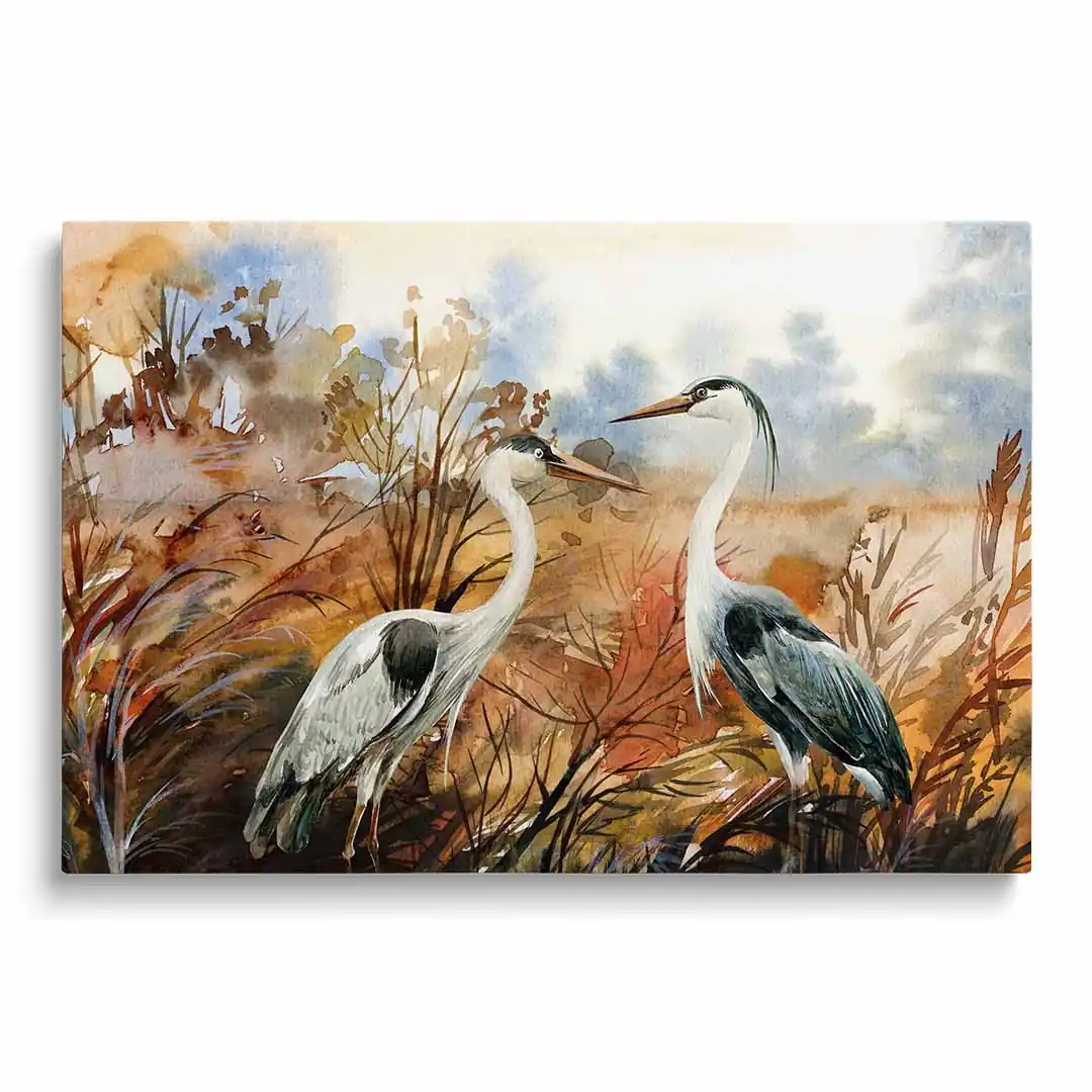 Obraz na płótnie - Czaple na tle jesiennego krajobrazu