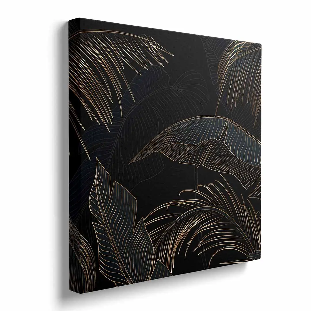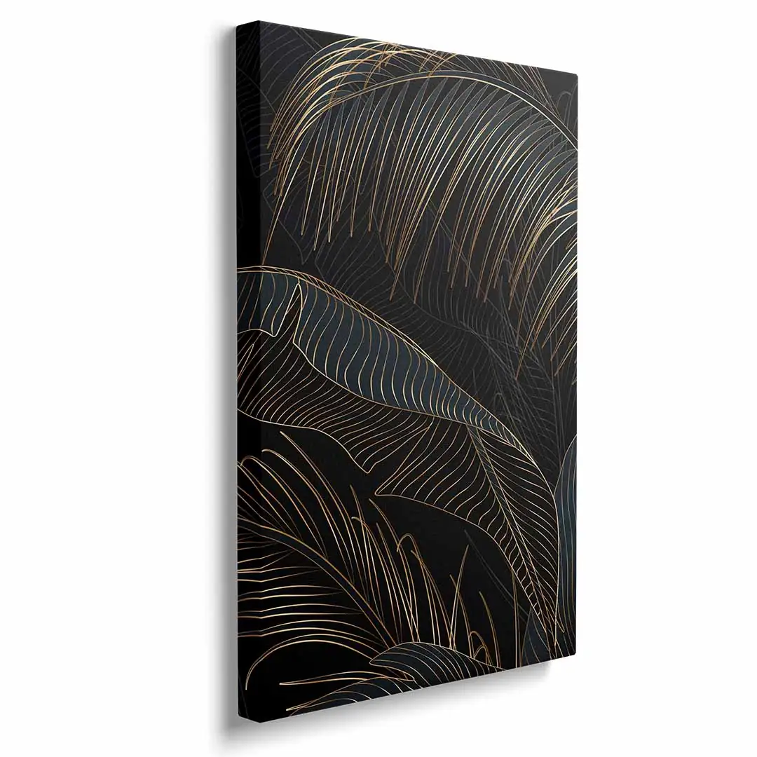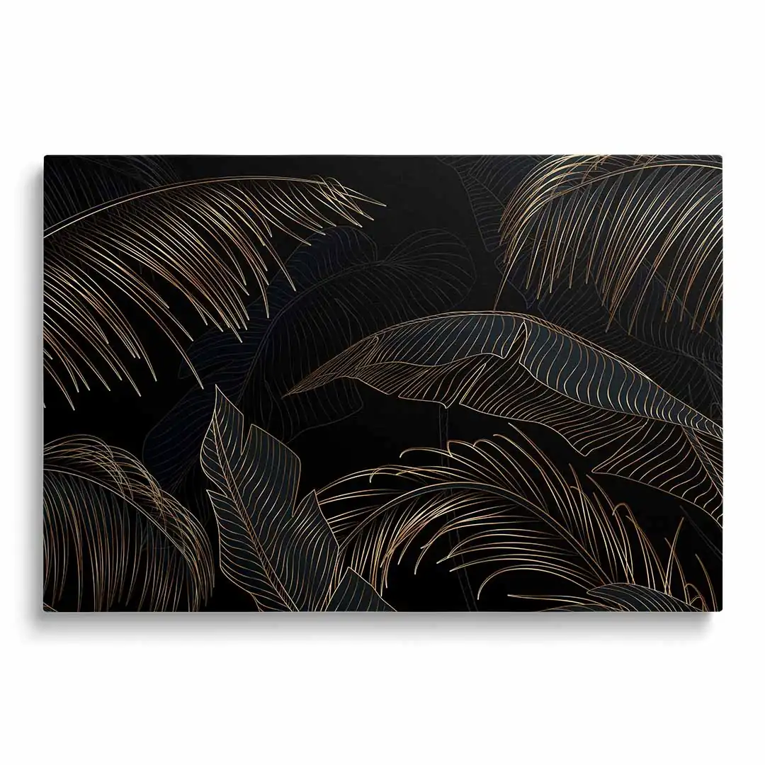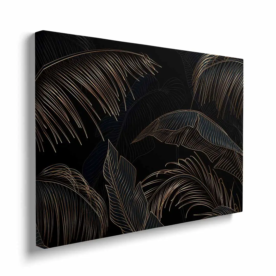 Obraz na płótnie - Czarne tło i złote liście tropikalne, Mural w stylu glamour i art deco