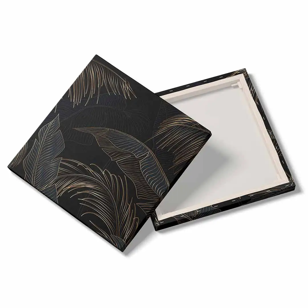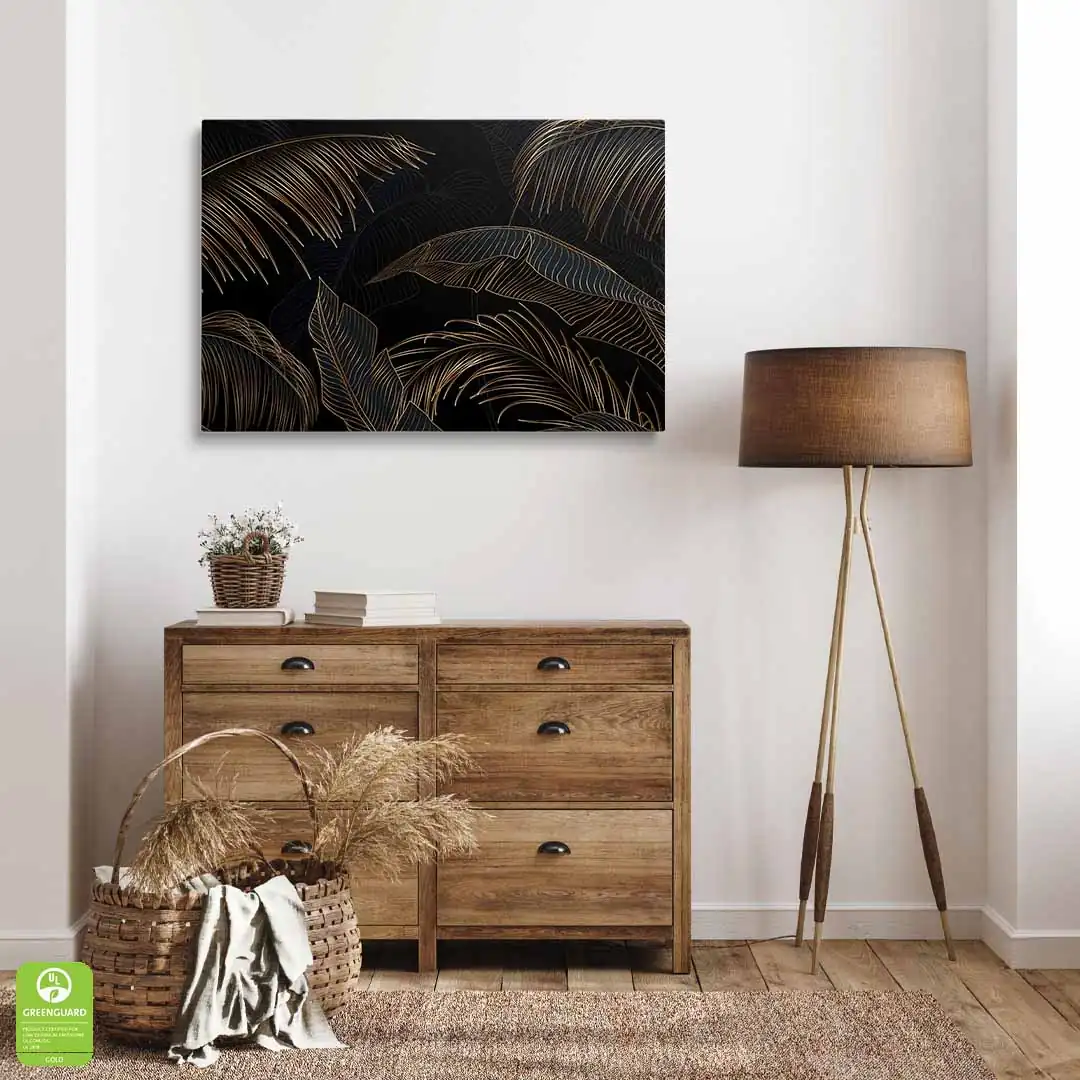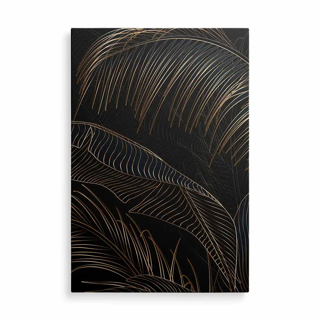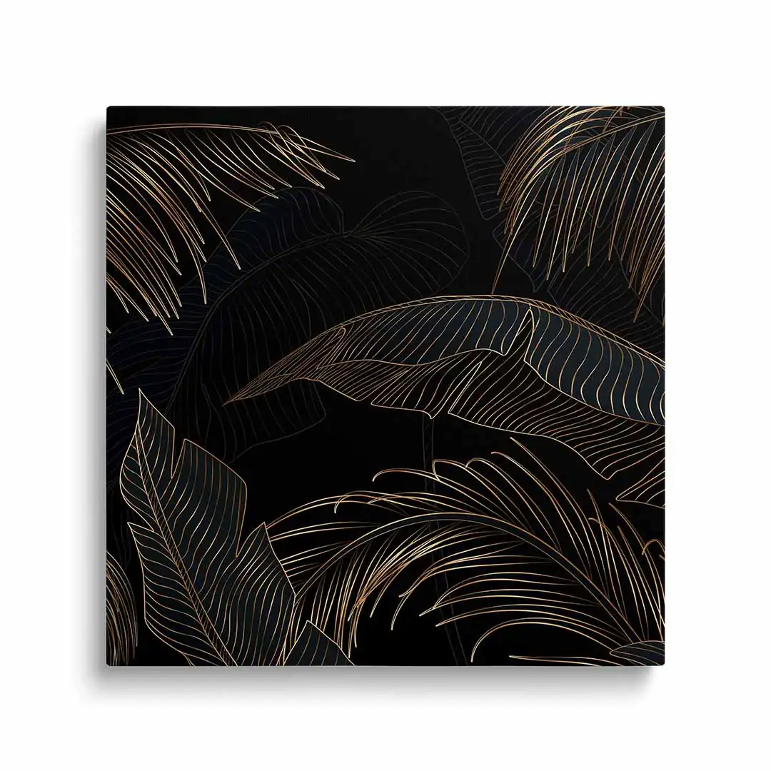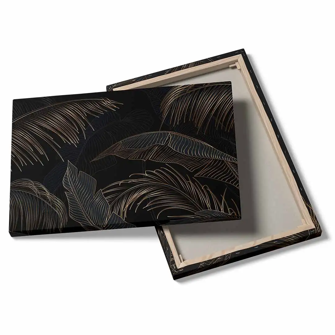 Obraz na płótnie - Czarne tło i złote liście tropikalne, Mural w stylu glamour i art deco