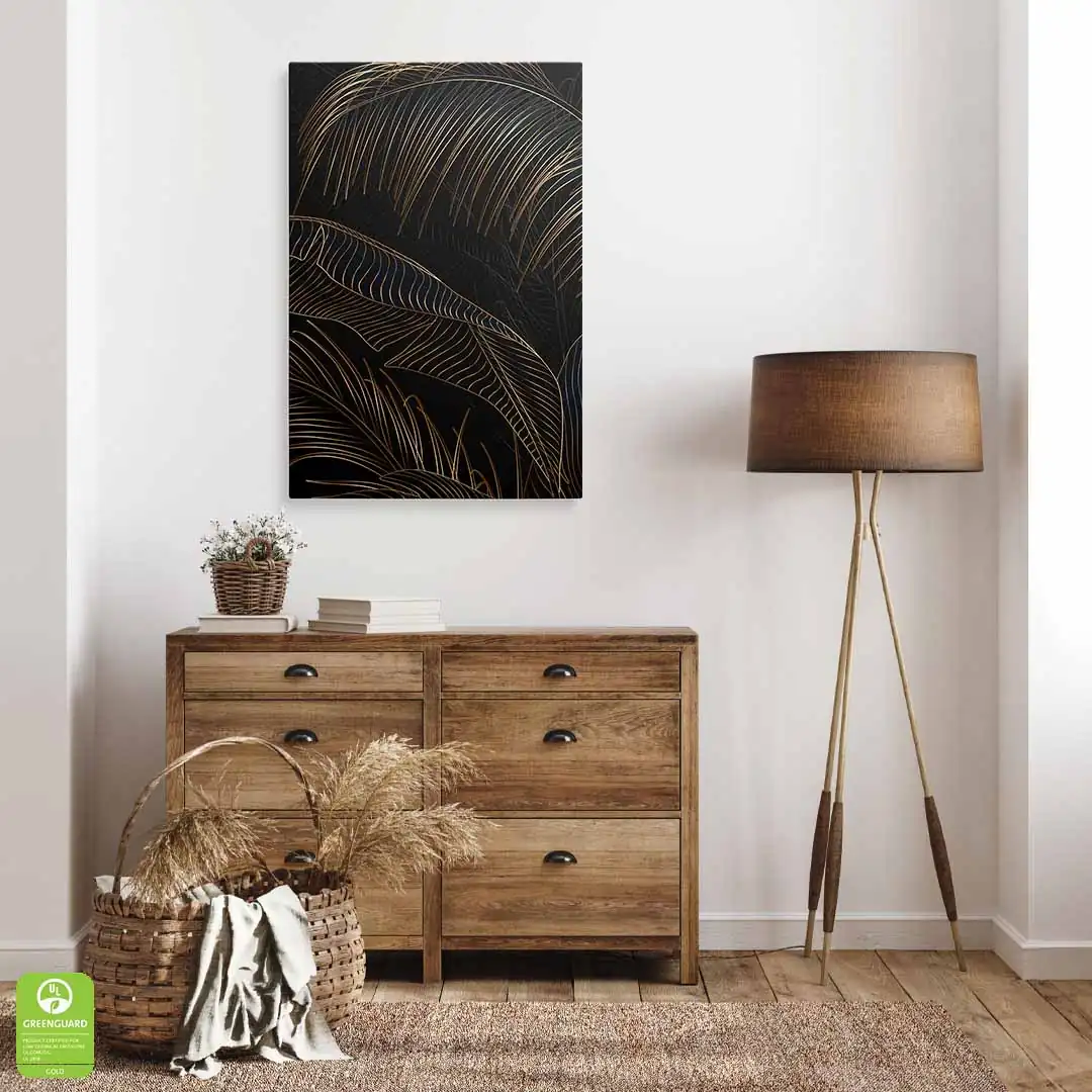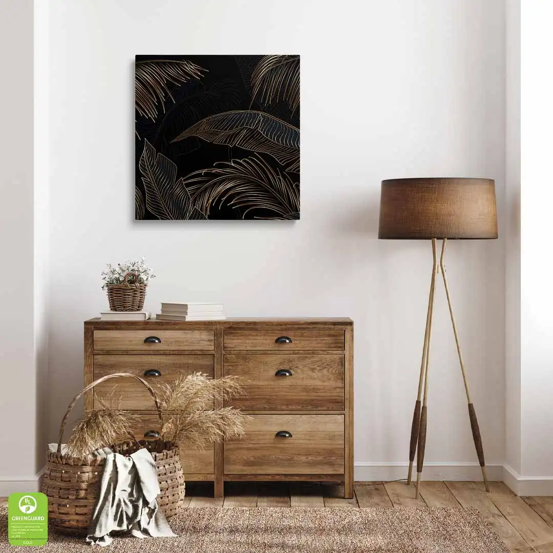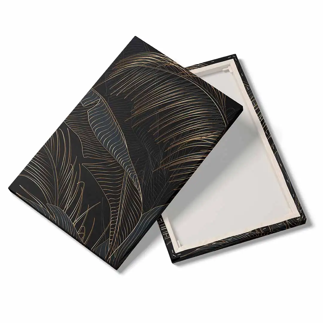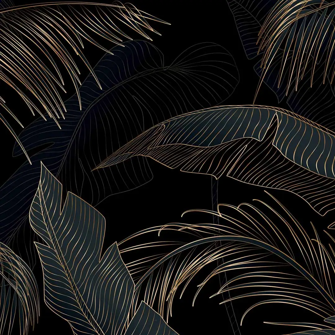 Obraz na płótnie - Czarne tło i złote liście tropikalne, Mural w stylu glamour i art deco