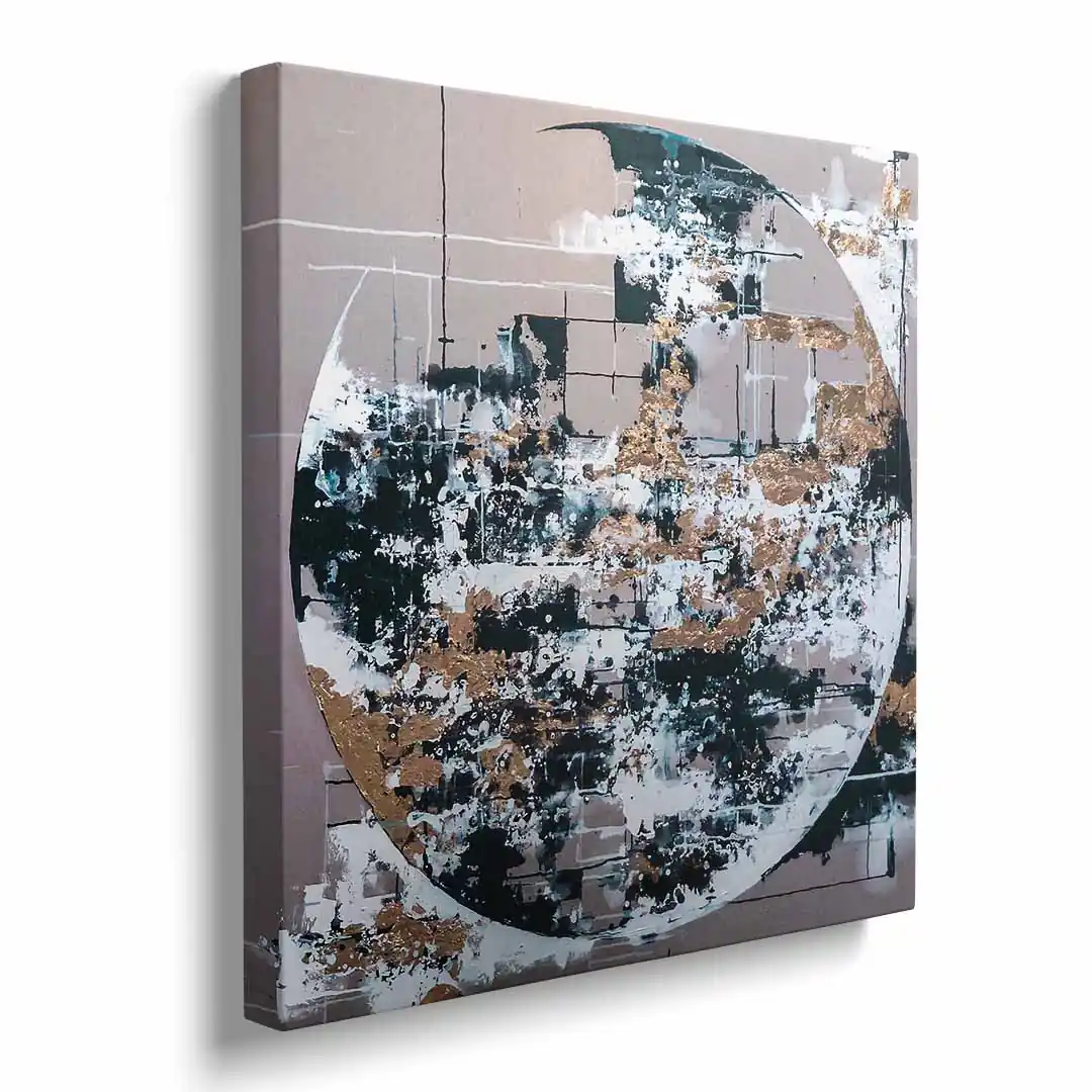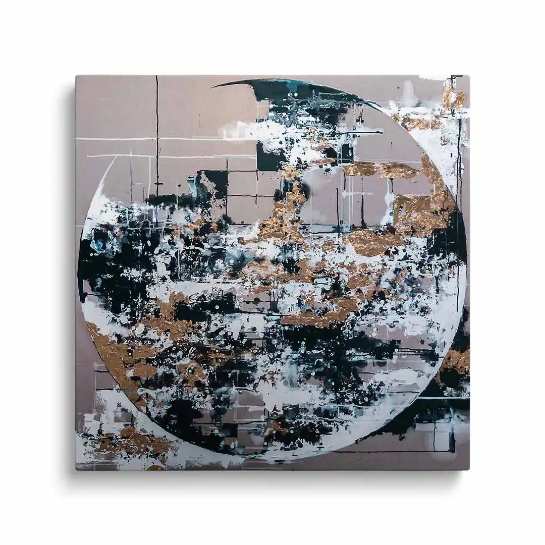 - techniką druku - proces drukowania wykorzystuje inne metody tworzenia kolorów (tzw. "przestrzeń barw") niż te, które stosowane są na ekranach komputera; kolory drukowane mogą wyglądać również nieco inaczej na różnych materiałach (np. canvasie, flizelinie, papierze czy szkle itp.) i przy użyciu różnych tuszy, w naszym przypadku tuszy do druku UV; złote elementy nie są wybiórczo metalizowane - efekt uzyskany jest poprzez wydruk tekstury w kolorze złota;