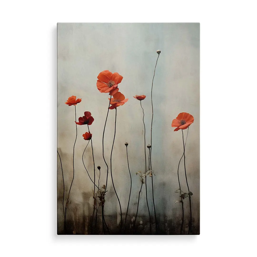 Obraz na płótnie - Czerwone maki - to nasza propozycja dla miłośników oryginalnych i kwiatowych motywów. Obraz prezentuje czerwone maki w nowoczesnej delikatnej, subtelnej formie. Pierwszy plan to pojedyncze maki zaprezentowane w pełnym rozkwicie. Maki sprawiają wrażenie przestrzennych, z efektem 3d, co podkreśla jeszcze lekko rozmyte, niejednorodne tło. Kolorystyka tego obrazu to przeróżne odcienie szarości, z mocniejszymi akcentami kolorystycznymi płatków kwiatowych, chociaż nie jest to również "ognista" czerwień. Całość obrazu, pomimo ciemniejszych odcieni, zwłaszcza w dolnej partii obrazu, stanowi bardzo pogodną grafikę, która będzie pasować do wielu pomieszczeń w naszym domu. Kompozycję można uzupełnić o jednolitą kolorystykę, nawiązującą do barw obrazu, wprowadzając szarości, biele i czerwone dodatki np. w formie poduszek.