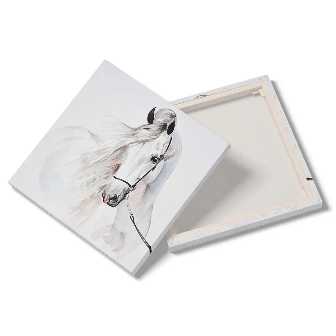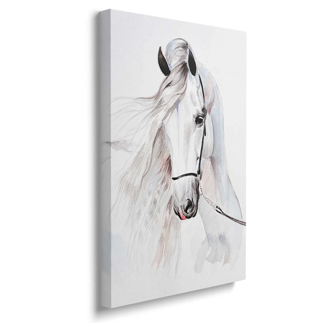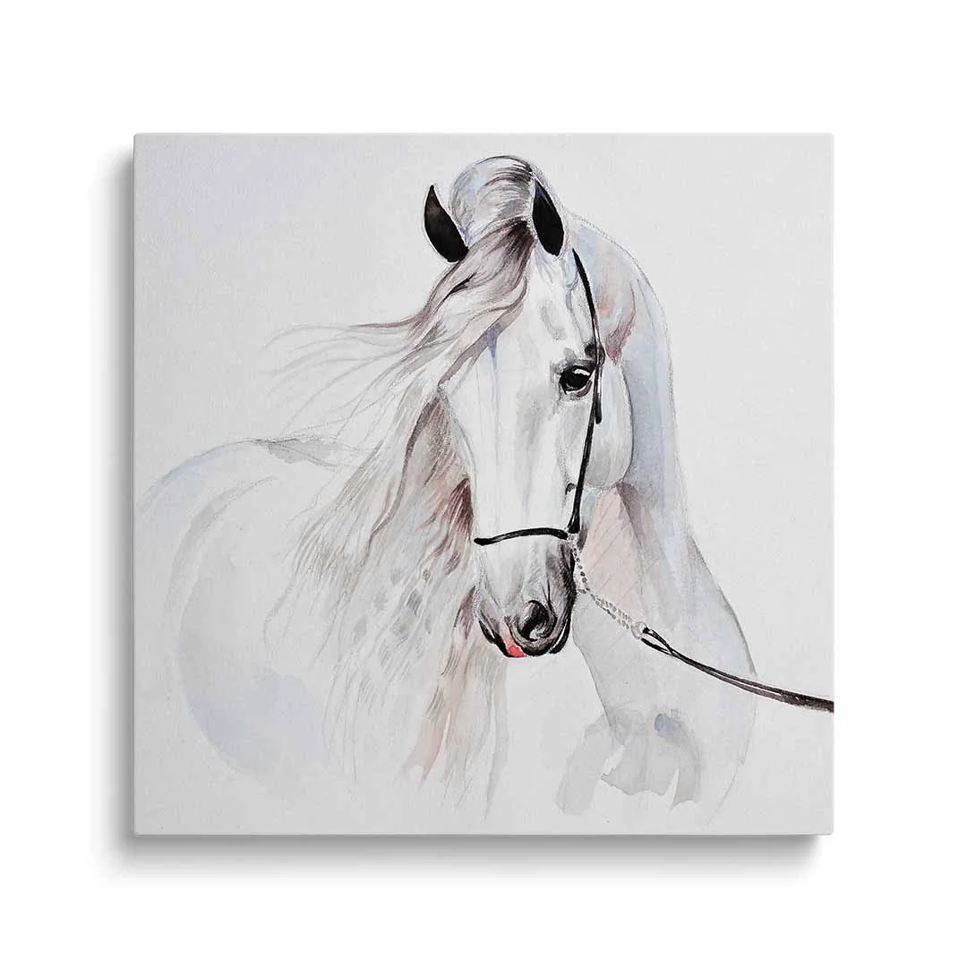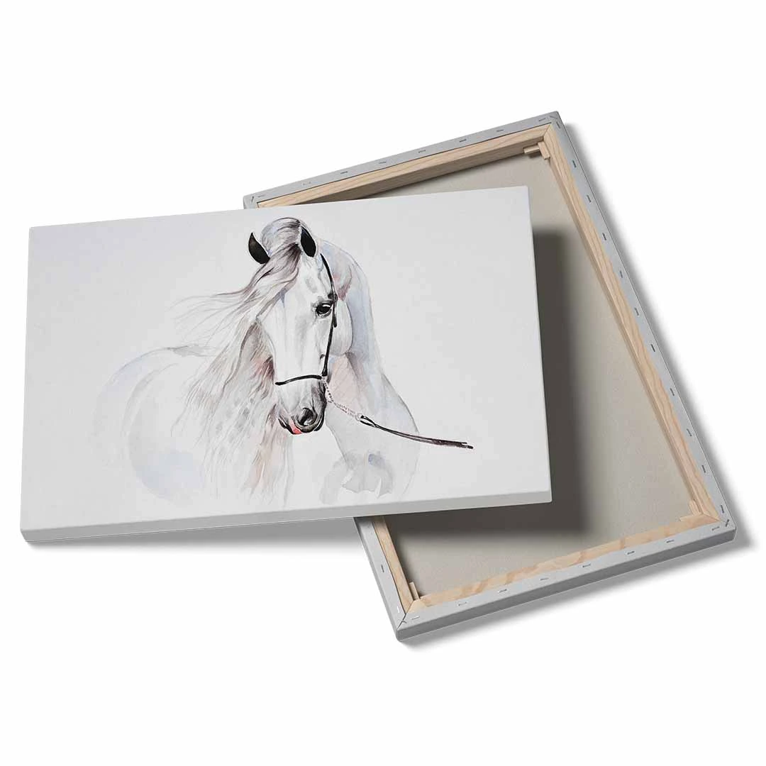 Obraz na płótnie - Dla dzieci piękny biały koń - to nasza propozycja dla dzieci i młodzieży lub po prostu dla miłośników tych wspaniałych zwierząt. Uroczy biały koń w formie dekoracji ściennej doskonale podkreśli zamiłowanie do zwierząt i estetyki wnętrza. Cały obraz utrzymany jest w jasnych barwach: tonacji bieli, szarości i dodatków czerni oraz różu delikatnie widocznego w pięknej grzywie konia. Obraz wprowadza atmosferę spokoju do wnętrza, możemy podziwiać naturalne piękno zdecydowanie zauważalne w tym obrazie. Obraz polecamy szczególnie do pokoju dziecięcego lub młodzieżowego, jednak nie wyłącznie. Bardzo ciekawie obraz może prezentować się w bardziej "dorosłym otoczeniu" - jadalni, sypialni czy kuchni. Ze względu na styl i barwy doskonale sprawdzi się w stylu skandynawskim czy klasycznym.