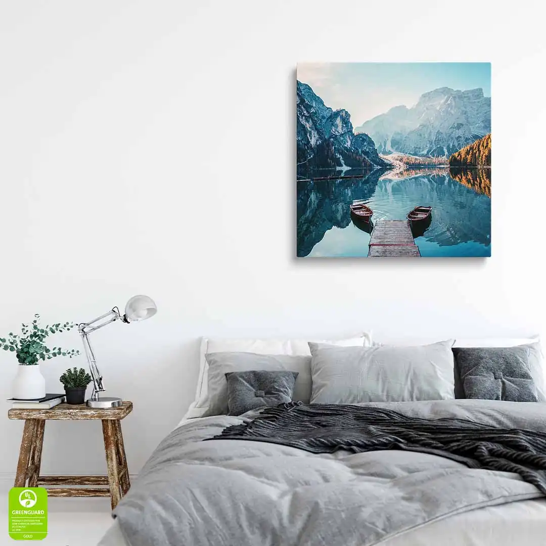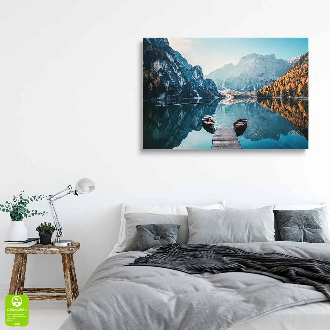 Obraz drukowany jest przy wykorzystaniu nowoczesnej technologii druku Canon UVgel. Uzyskany jest efekt widocznego prawdziwego płótna malarskiego. Użyte tusze są ekologiczne, bezwonne oraz trwałe - odporne na blaknięcie oraz działanie promieni słonecznych UV. Certyfikowane atramenty spełniają najsurowsze światowe normy dotyczące niskiej emisji lotnych związków organicznych (VOC), co sprawia że nasze obrazy są całkowicie bezpieczne i mogą być z powodzeniem wykorzystywane jako elementy dekoracji wnętrz w domach i pomieszczeniach, gdzie ludzie a zwłaszcza dzieci i osoby narażone na szkodliwe związki, spędzają dłuższy czas. Odwzorowana jest fotograficzna jakość wydruku, a kolory są żywe i głęboko nasycone.