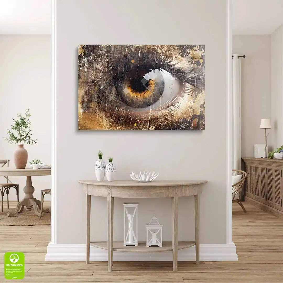 - techniką druku - proces drukowania wykorzystuje inne metody tworzenia kolorów (tzw. "przestrzeń barw") niż te, które stosowane są na ekranach komputera; kolory drukowane mogą wyglądać również nieco inaczej na różnych materiałach (np. canvasie, flizelinie, papierze czy szkle itp.) i przy użyciu różnych tuszy, w naszym przypadku tuszy do druku UV; złote elementy nie są wybiórczo metalizowane - efekt uzyskany jest poprzez wydruk tekstury w kolorze złota;