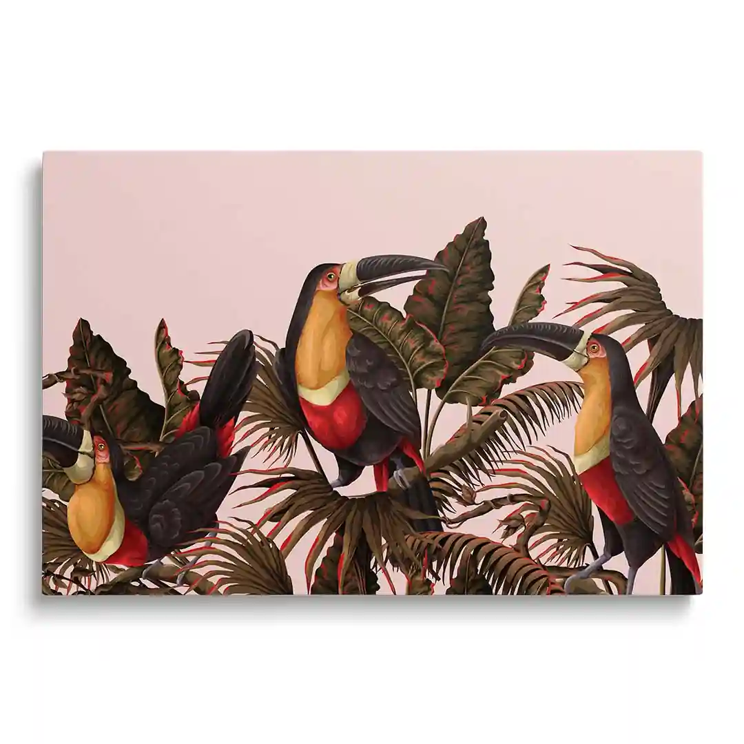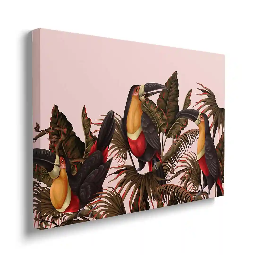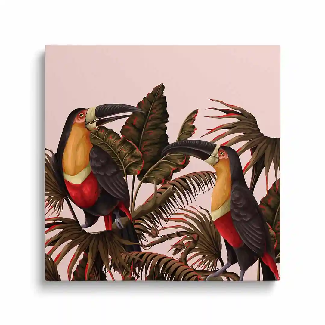 Obraz na płótnie - Papugi wśród tropikalnych liści
