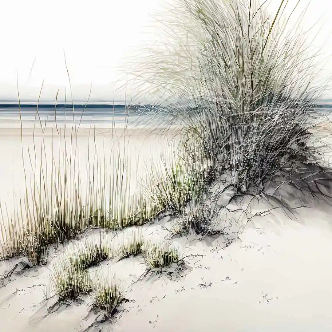 Obraz na płótnie - Pejzaż piaszczystej plaży - Trawa plażowa