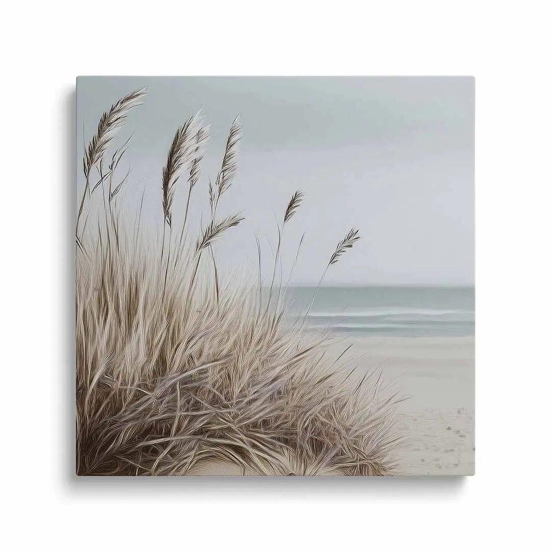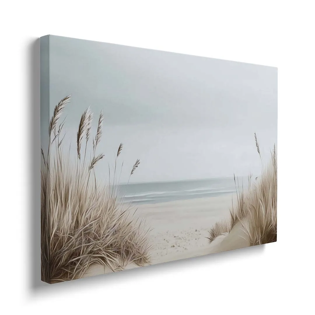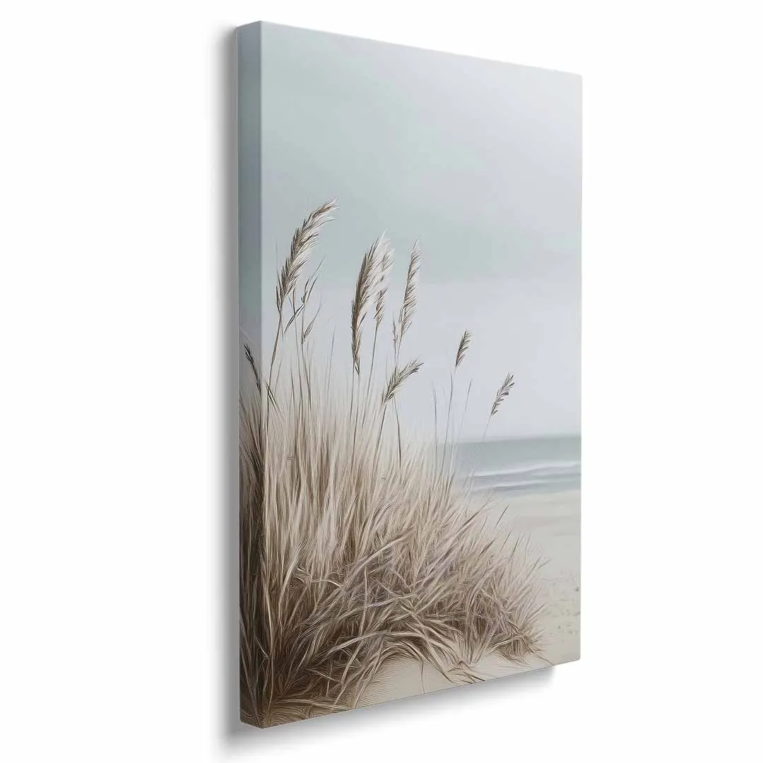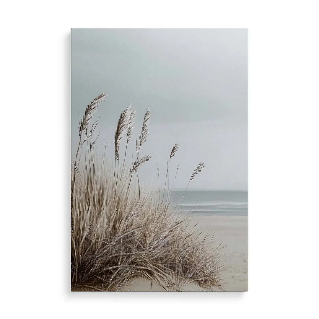 Obraz na płótnie - Plaża z trawami – Spokojny pejzaż morski do salonu, sypialni i biura