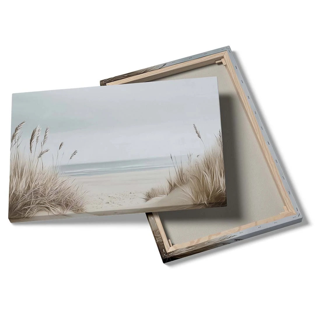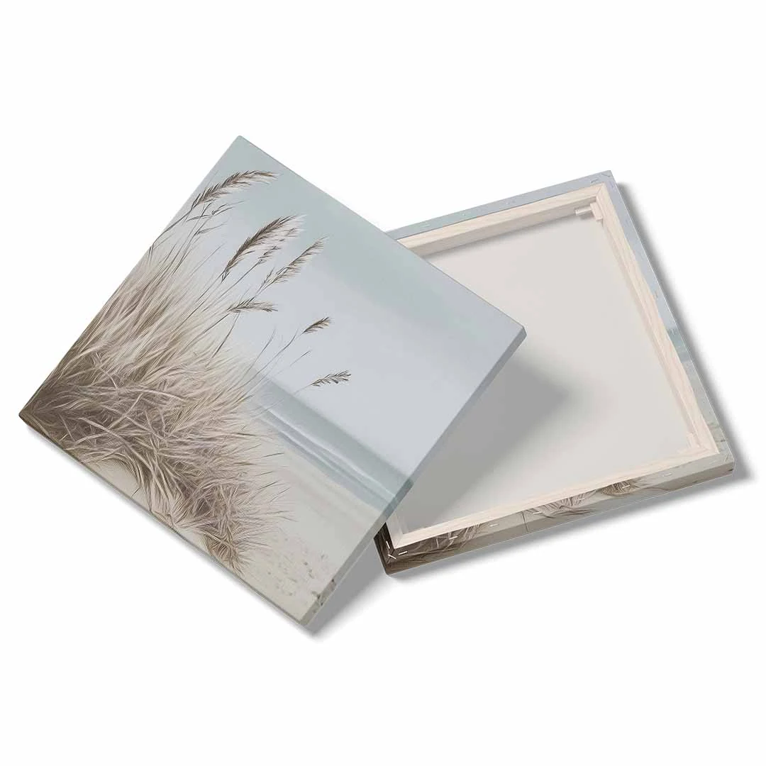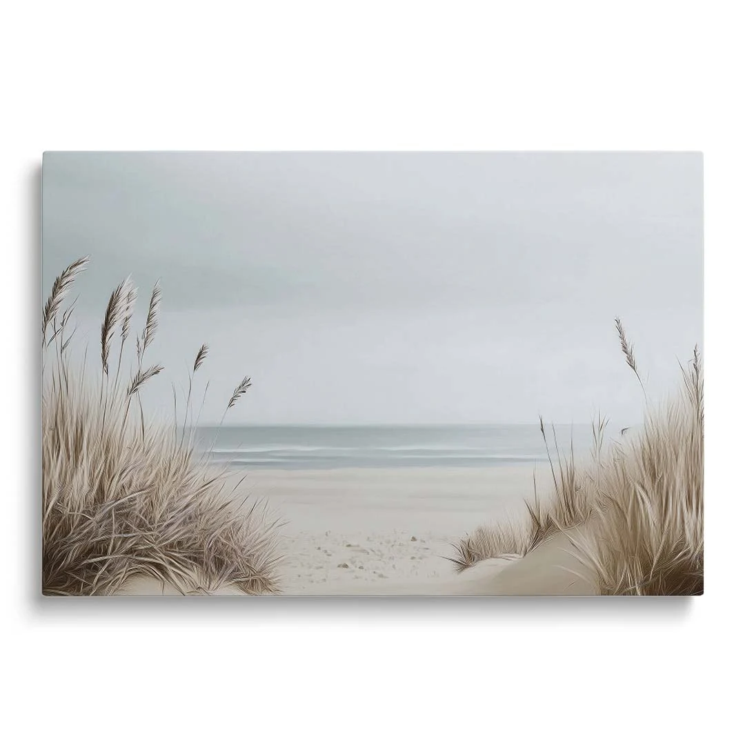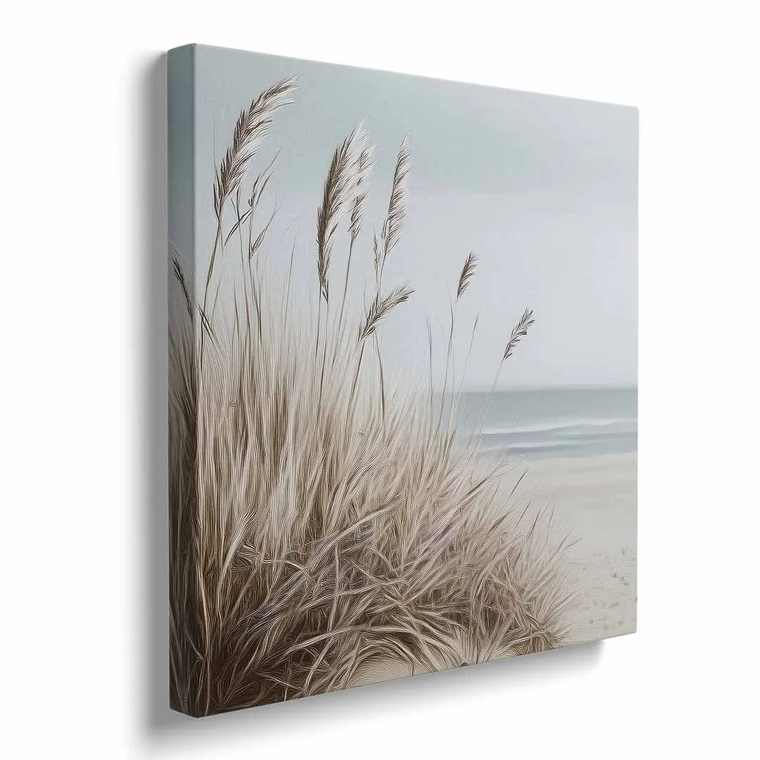 Obraz na płótnie - Plaża z trawami – Spokojny pejzaż morski do salonu, sypialni i biura