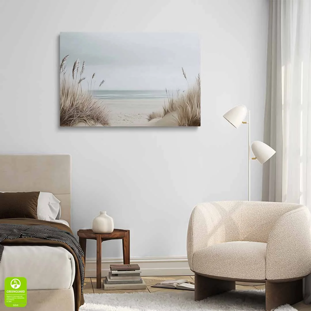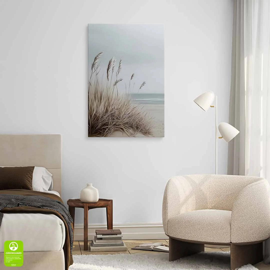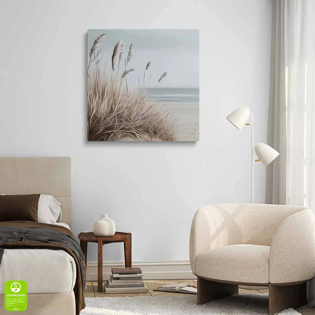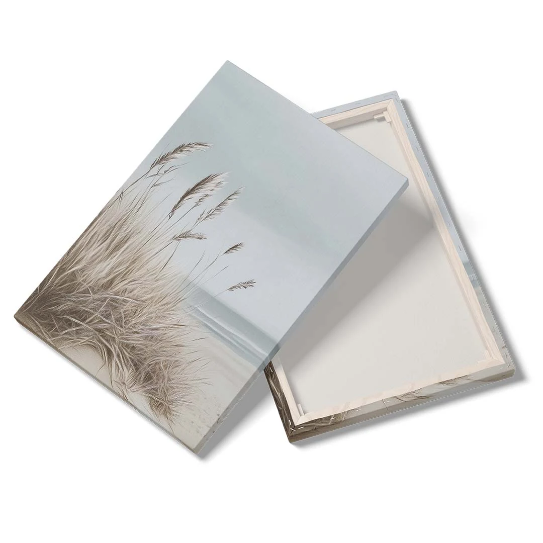 Obraz na płótnie - Plaża z trawami – Spokojny pejzaż morski do salonu, sypialni i biura