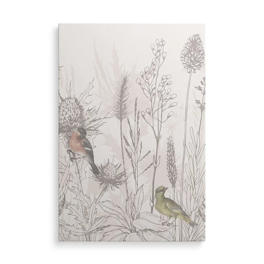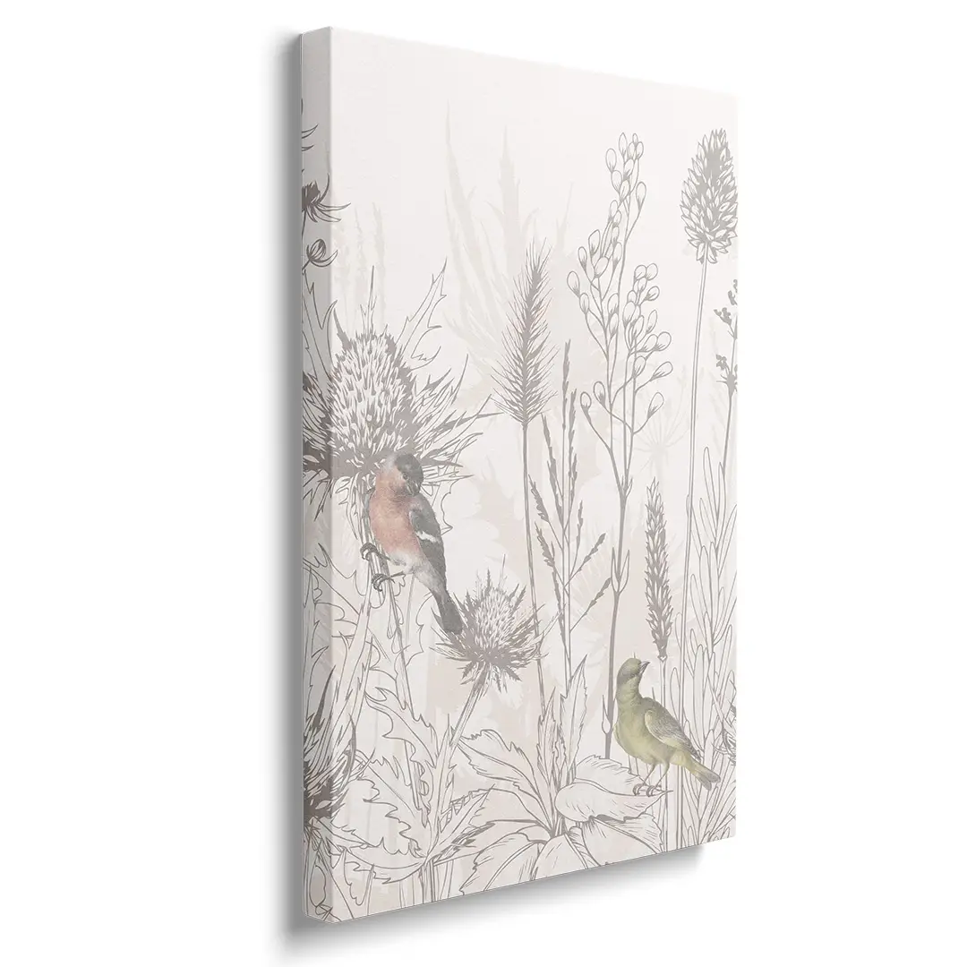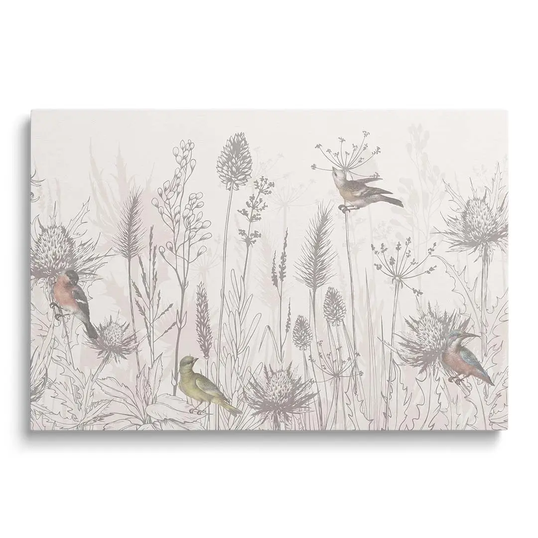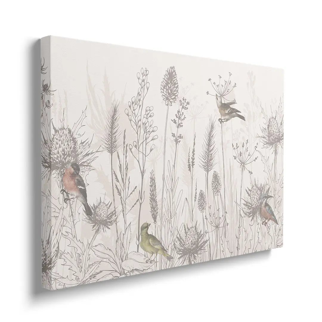Obraz na płótnie - Ptaki i Polne Kwiaty – Naturalna dekoracja do salonu i sypialni