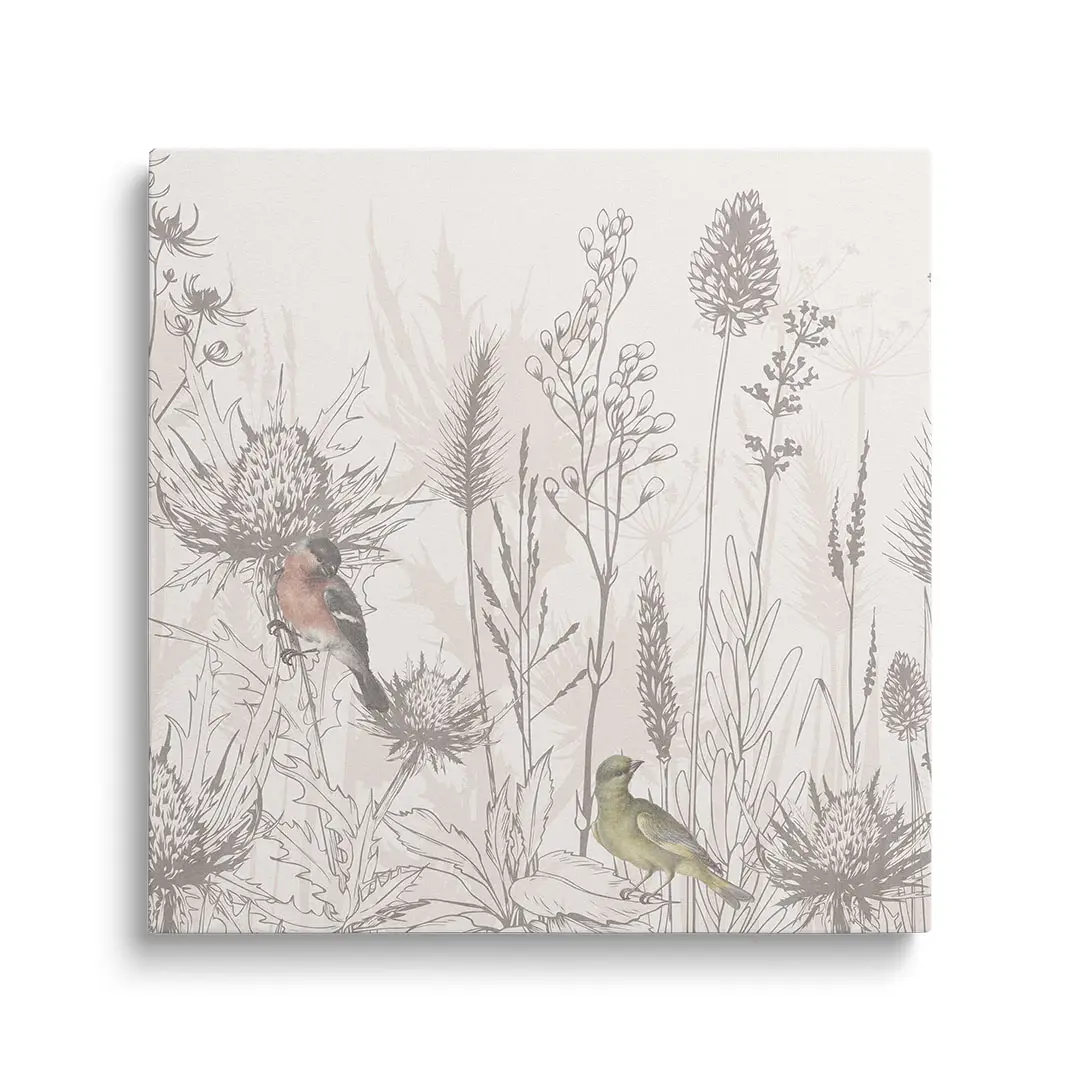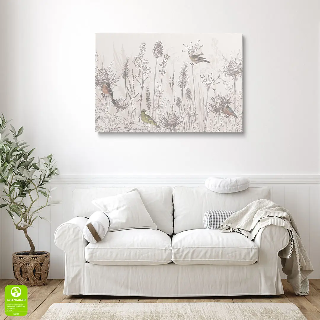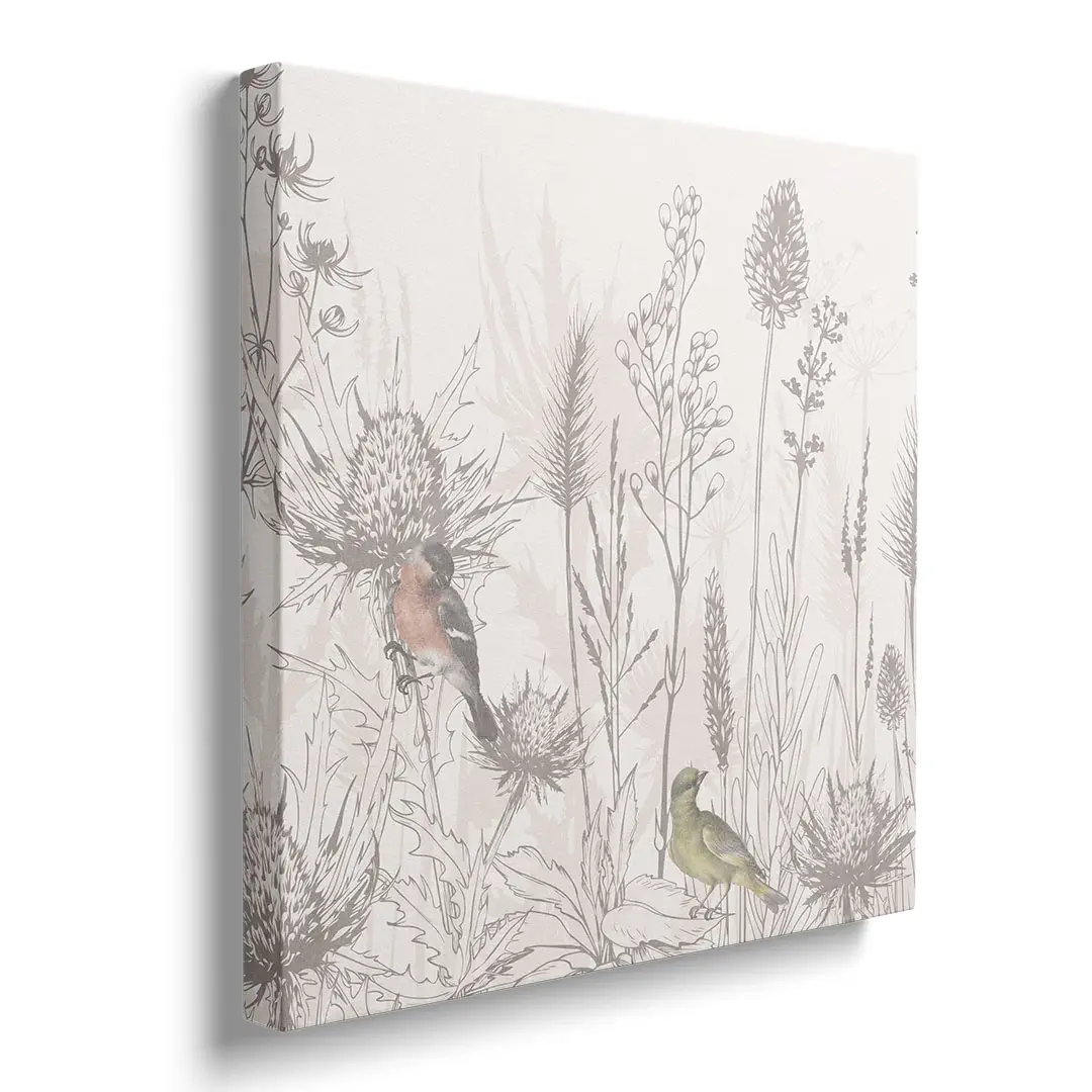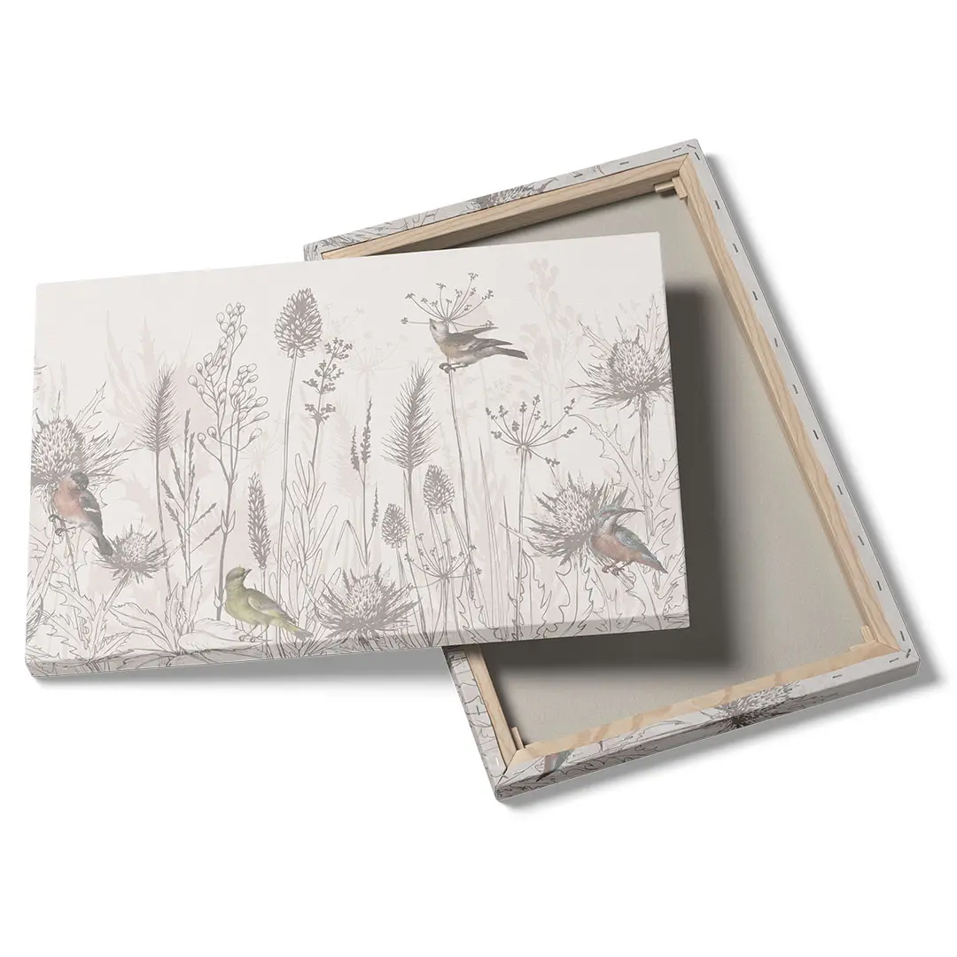 Obraz na płótnie - Ptaki i Polne Kwiaty – Naturalna dekoracja do salonu i sypialni