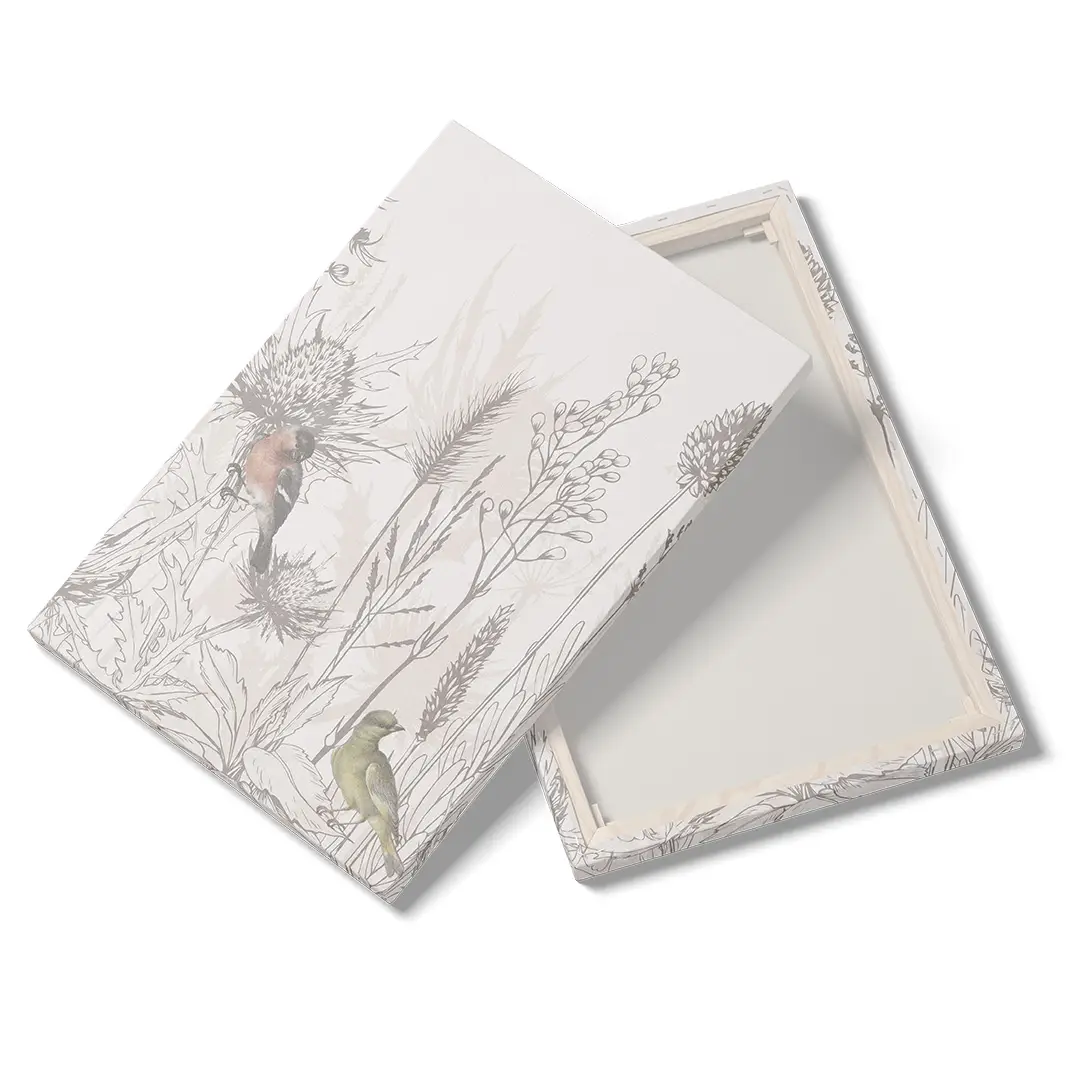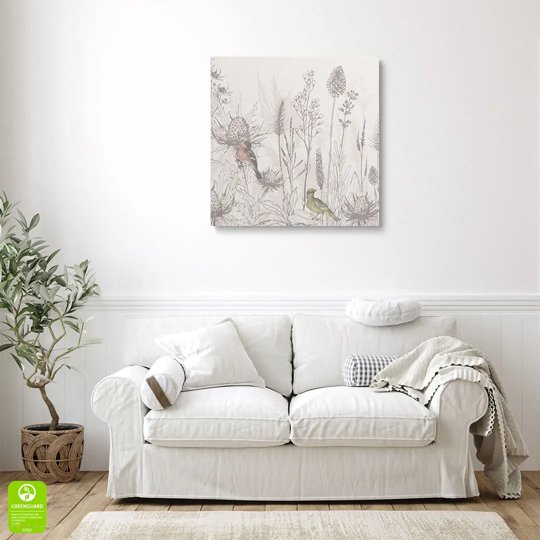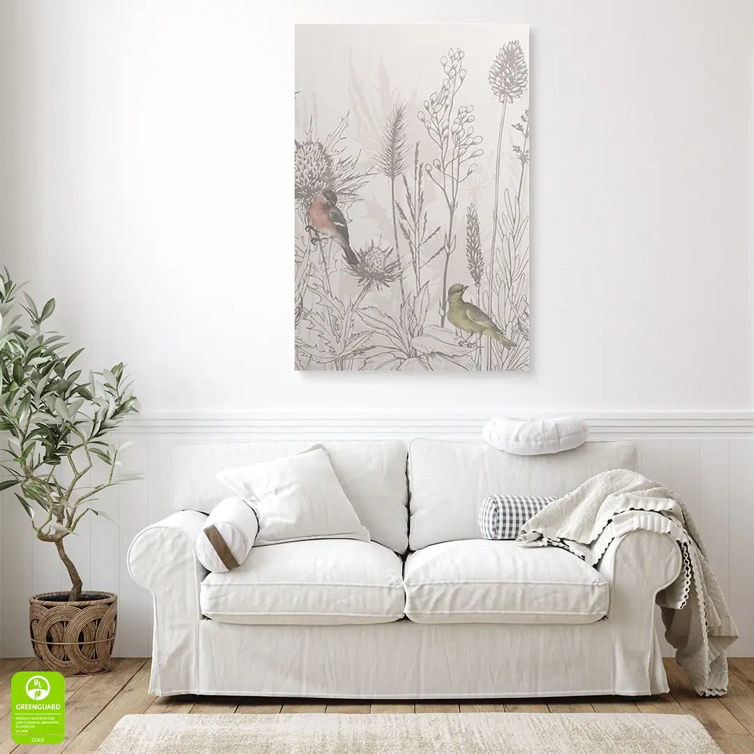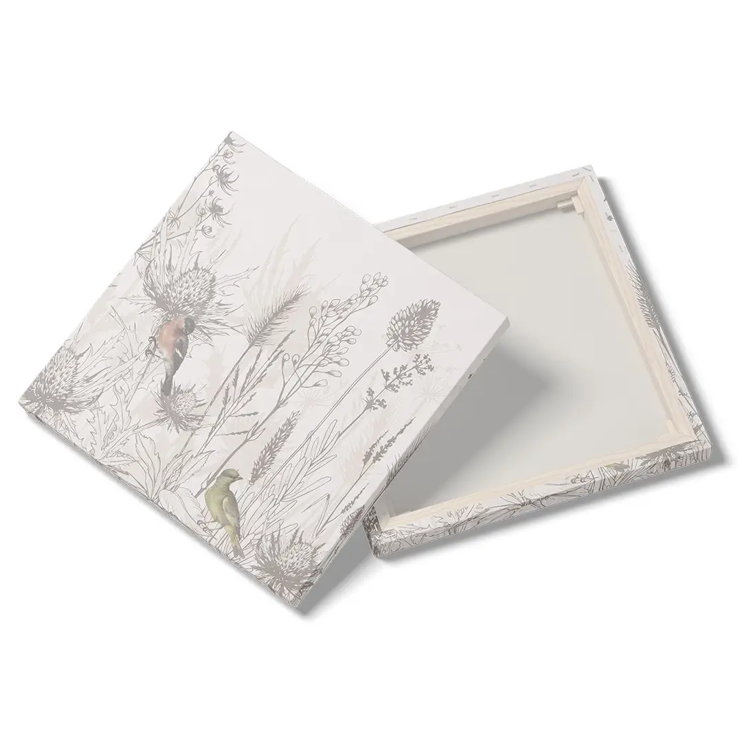 Obraz na płótnie - Ptaki i Polne Kwiaty – Naturalna dekoracja do salonu i sypialni
