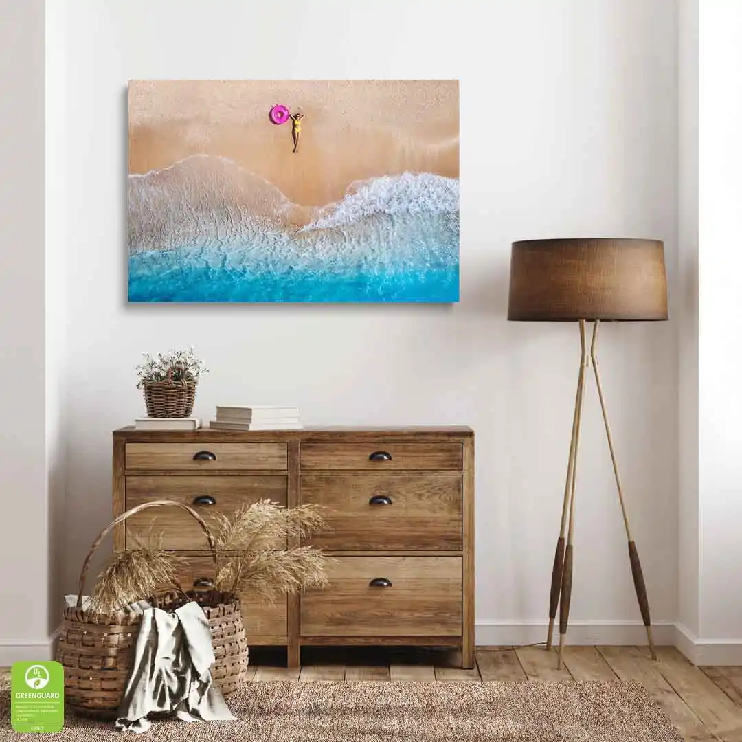 Obraz drukowany jest przy wykorzystaniu nowoczesnej technologii druku Canon UVgel. Uzyskany jest efekt widocznego prawdziwego płótna malarskiego. Użyte tusze są ekologiczne, bezwonne oraz trwałe - odporne na blaknięcie oraz działanie promieni słonecznych UV. Certyfikowane atramenty spełniają najsurowsze światowe normy dotyczące niskiej emisji lotnych związków organicznych (VOC), co sprawia że nasze obrazy są całkowicie bezpieczne i mogą być z powodzeniem wykorzystywane jako elementy dekoracji wnętrz w domach i pomieszczeniach, gdzie ludzie a zwłaszcza dzieci i osoby narażone na szkodliwe związki, spędzają dłuższy czas. Odwzorowana jest fotograficzna jakość wydruku, a kolory są żywe i głęboko nasycone.