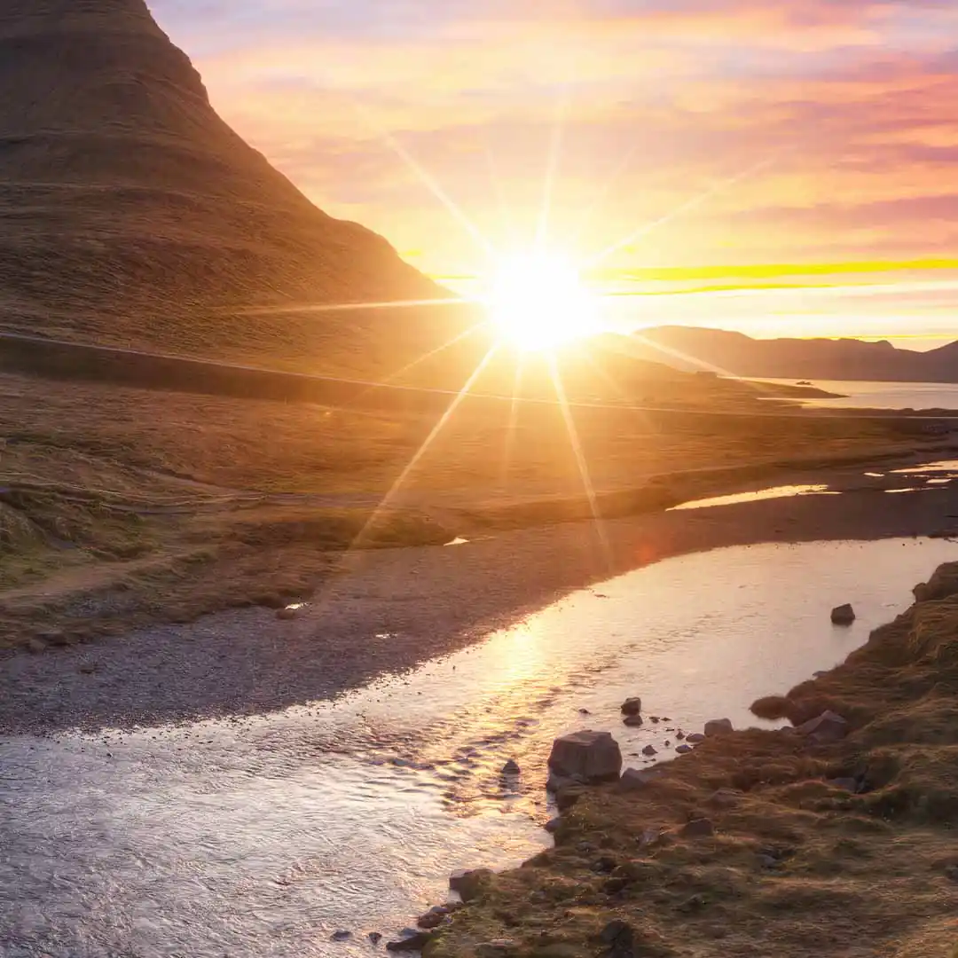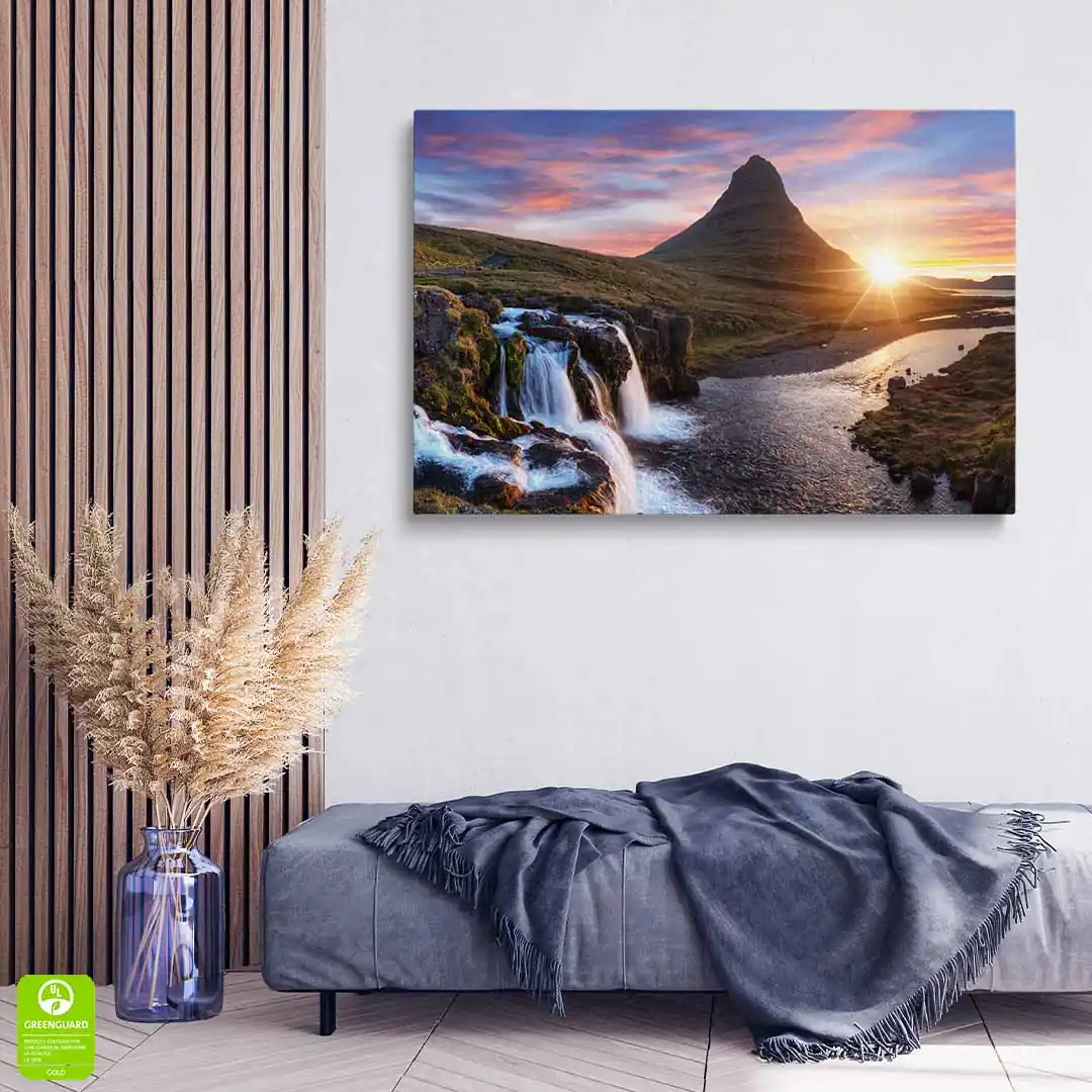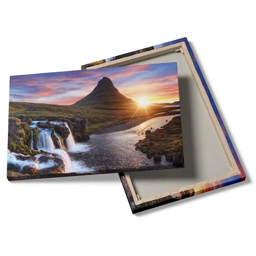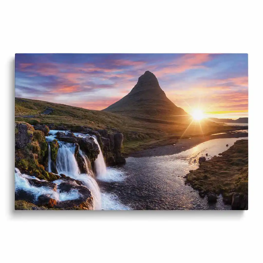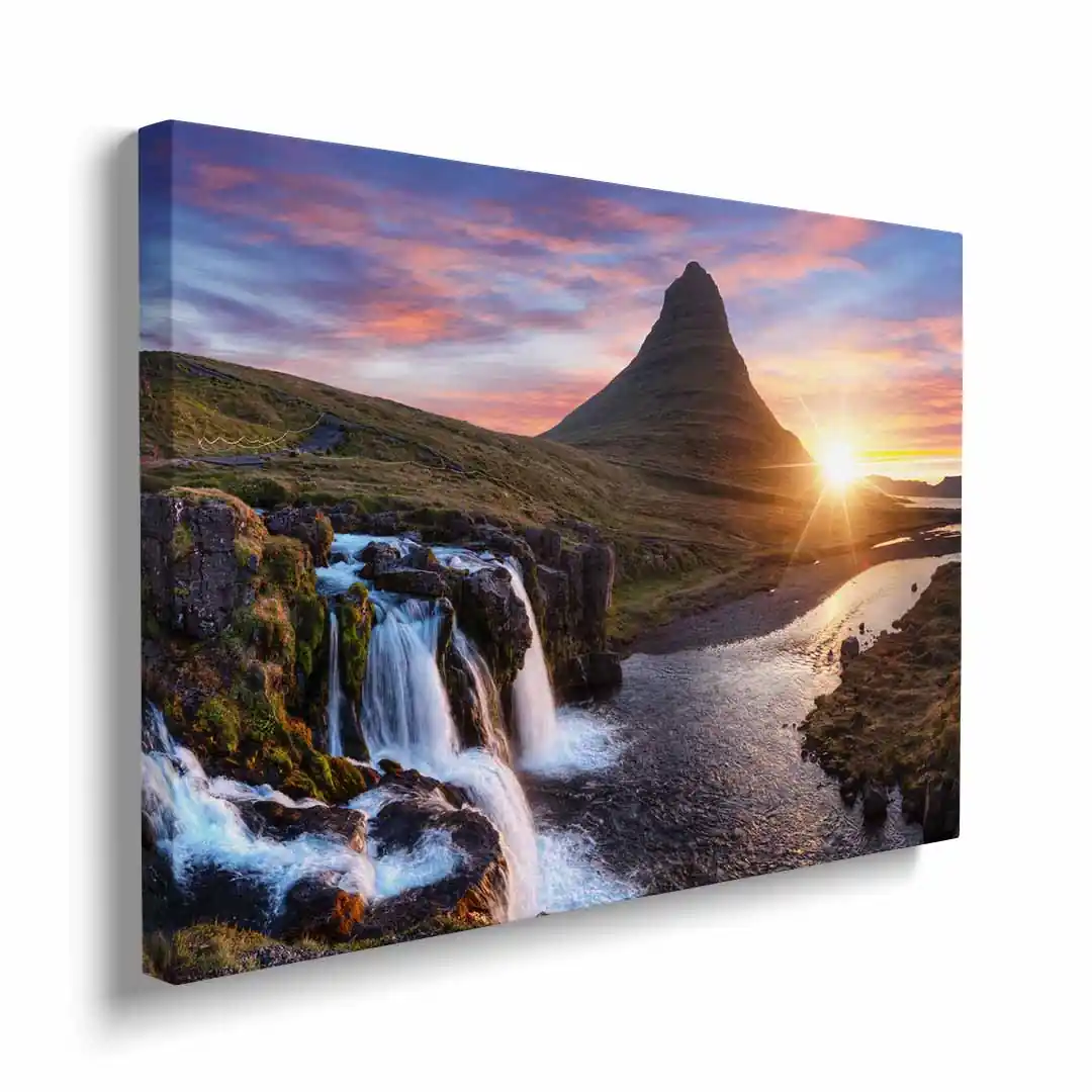 Obraz na płótnie - Wschód słońca nad obłędnym wodospadem