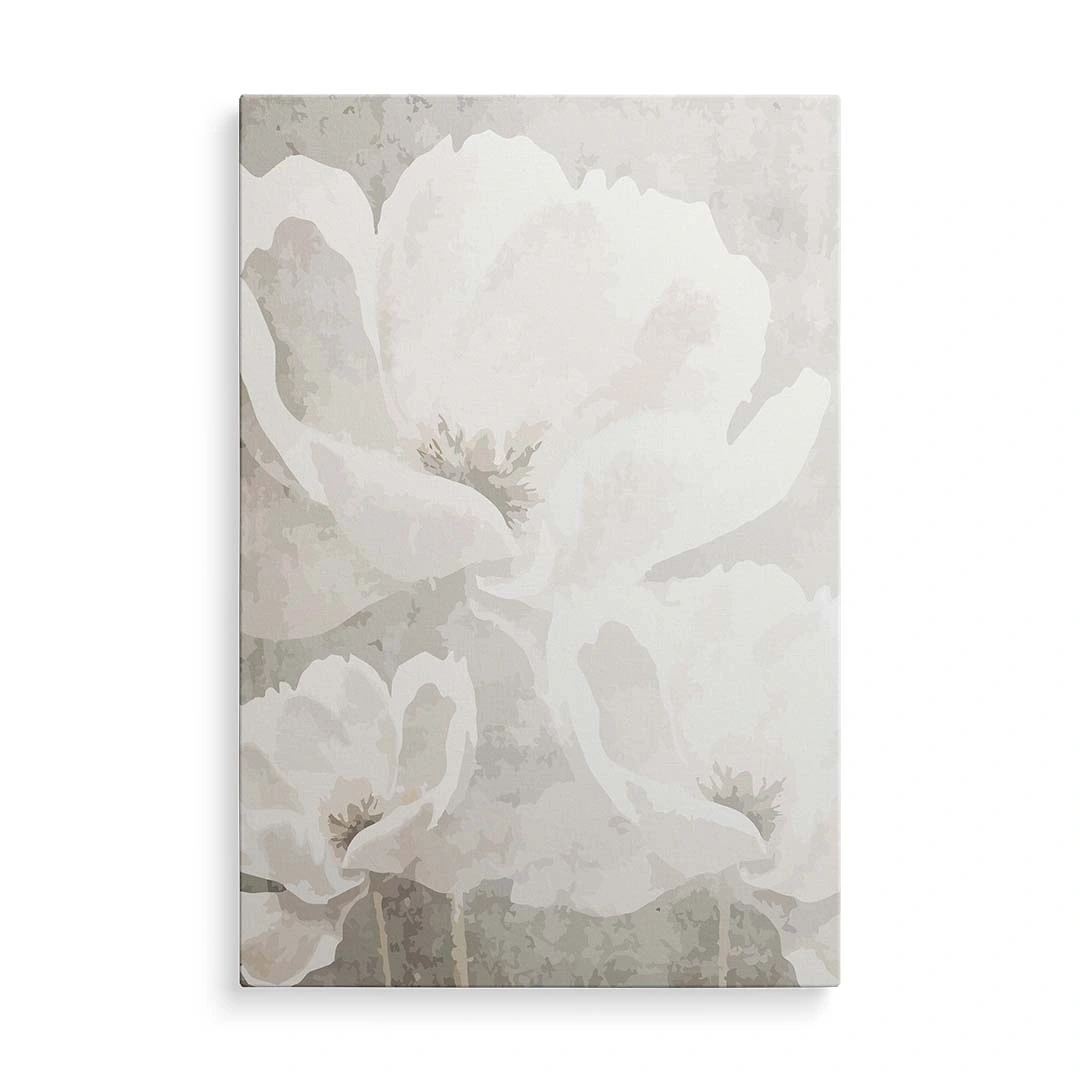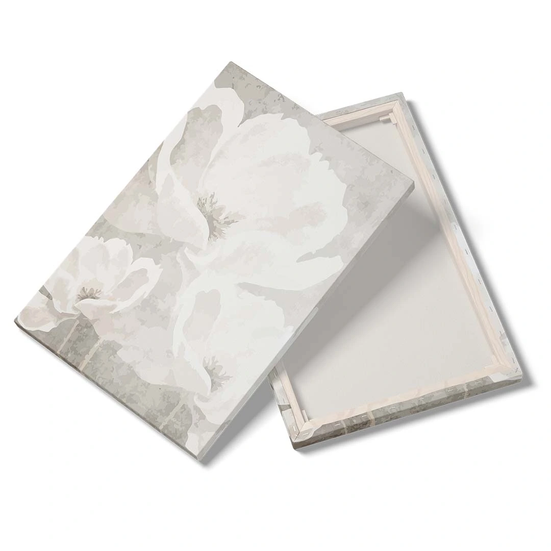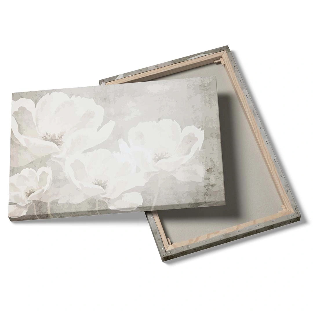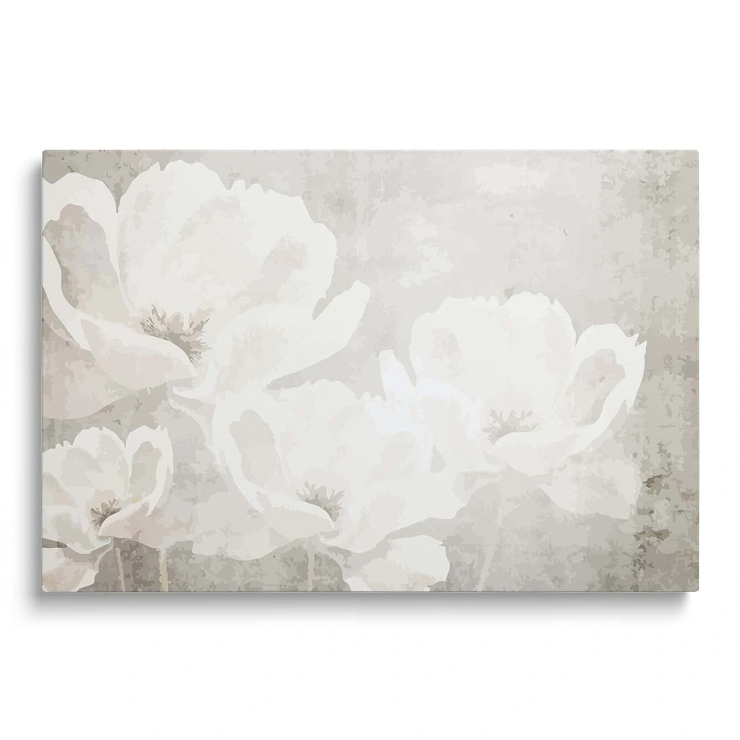 Obraz na płótnie - Z białymi kwiatami na teksturowym, szarobeżowym tle