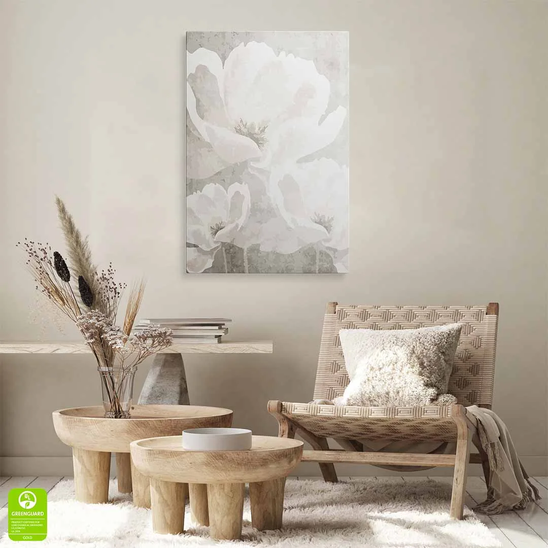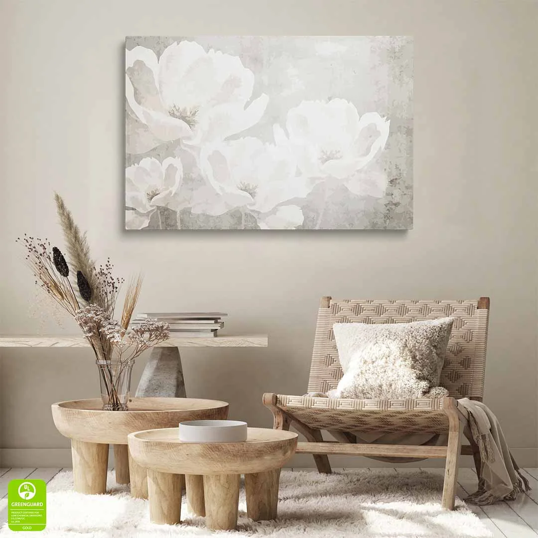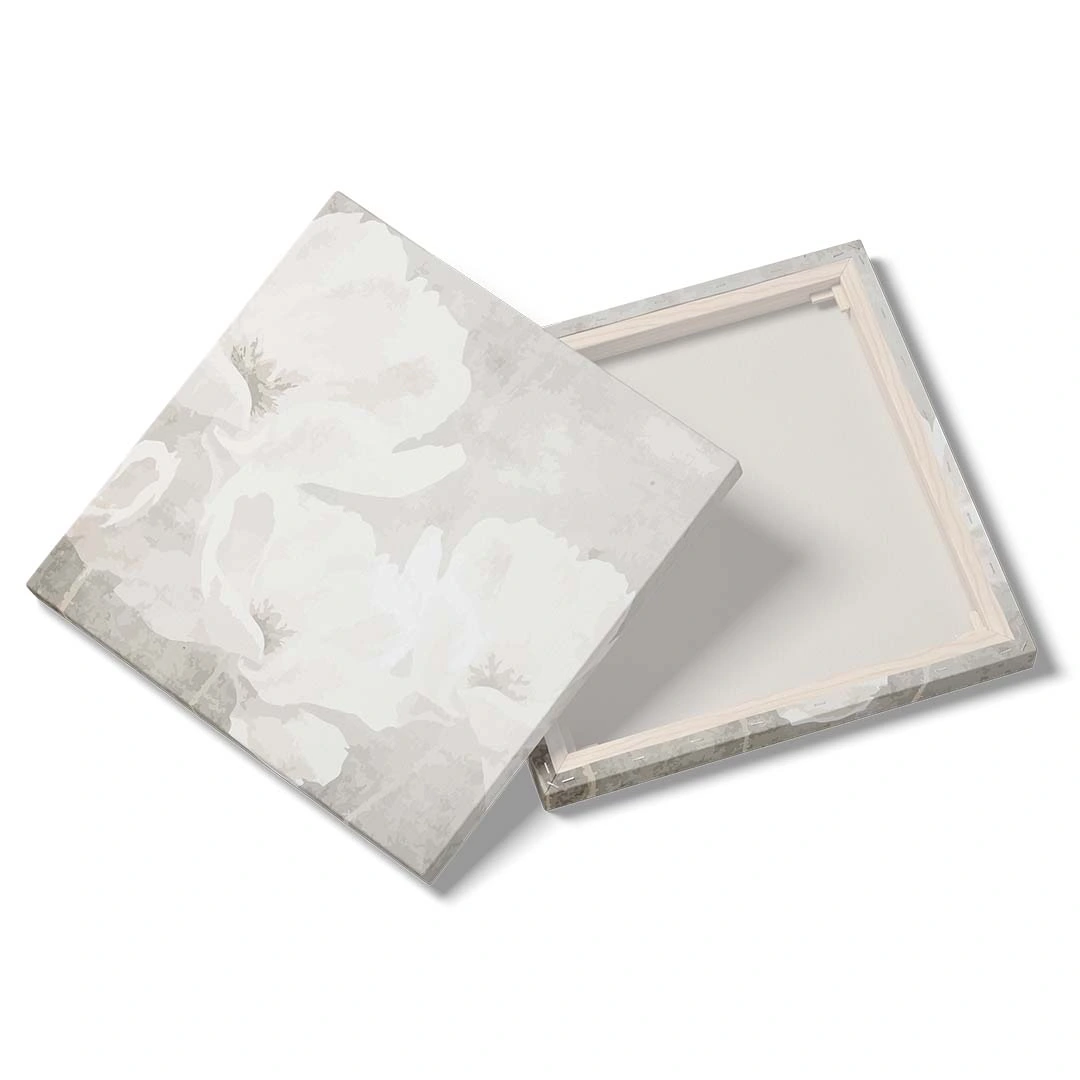 Obraz na płótnie - Z białymi kwiatami na teksturowym, szarobeżowym tle
